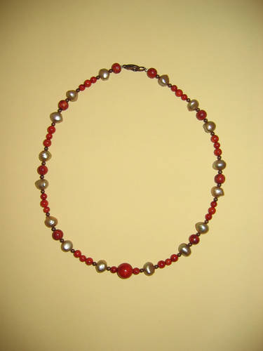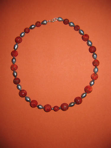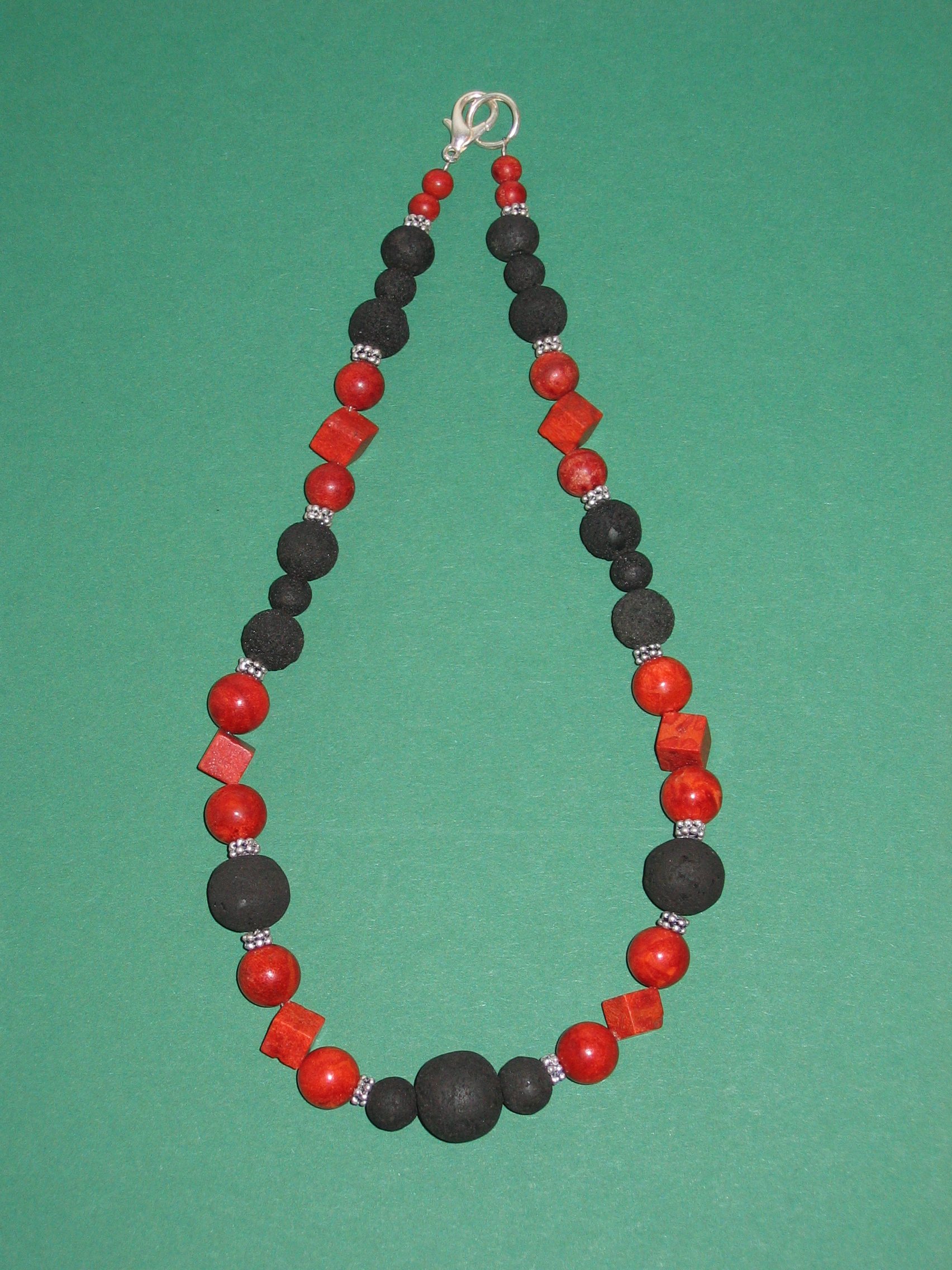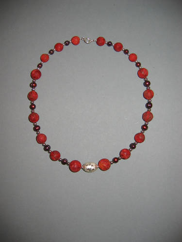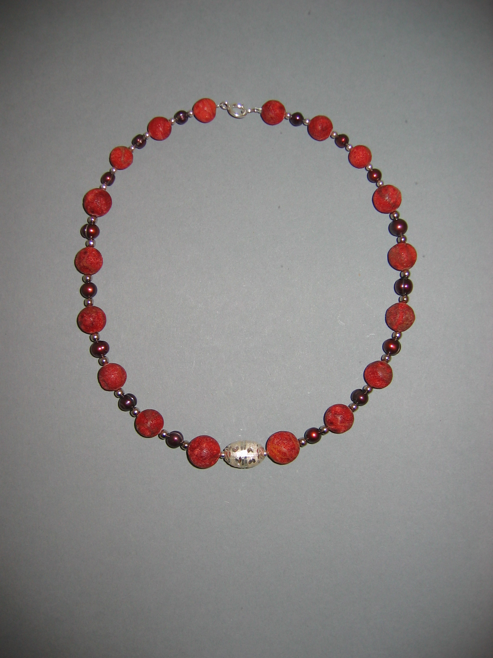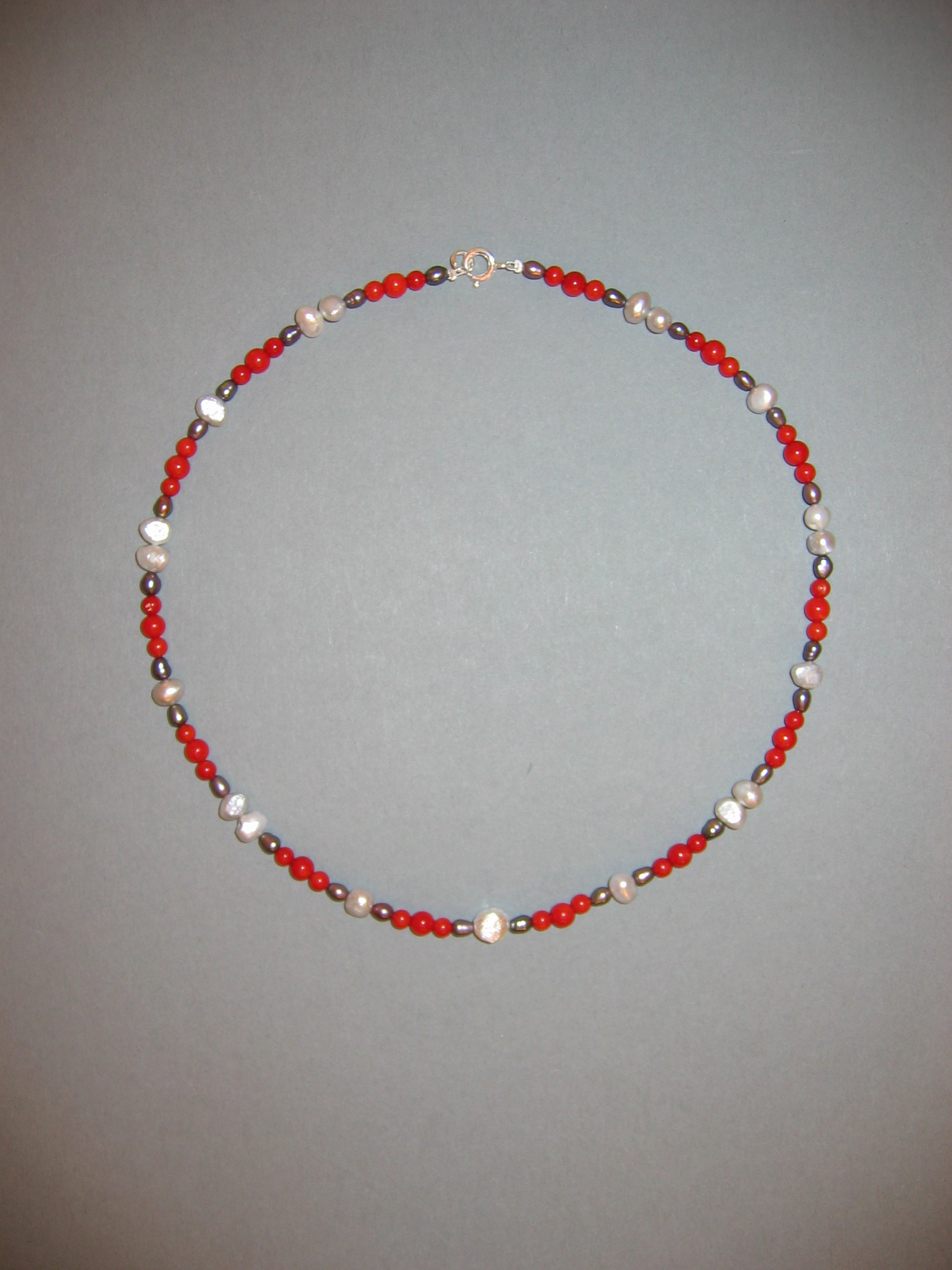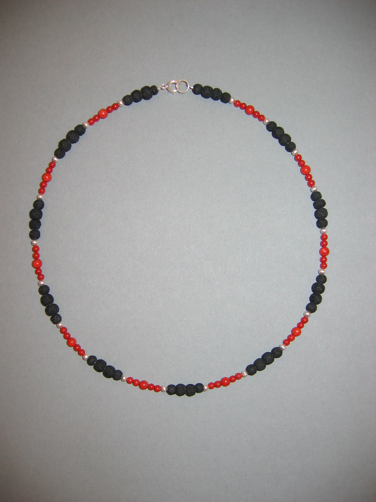 Koralle, Lava, Silber, Süßwasserperlen | |