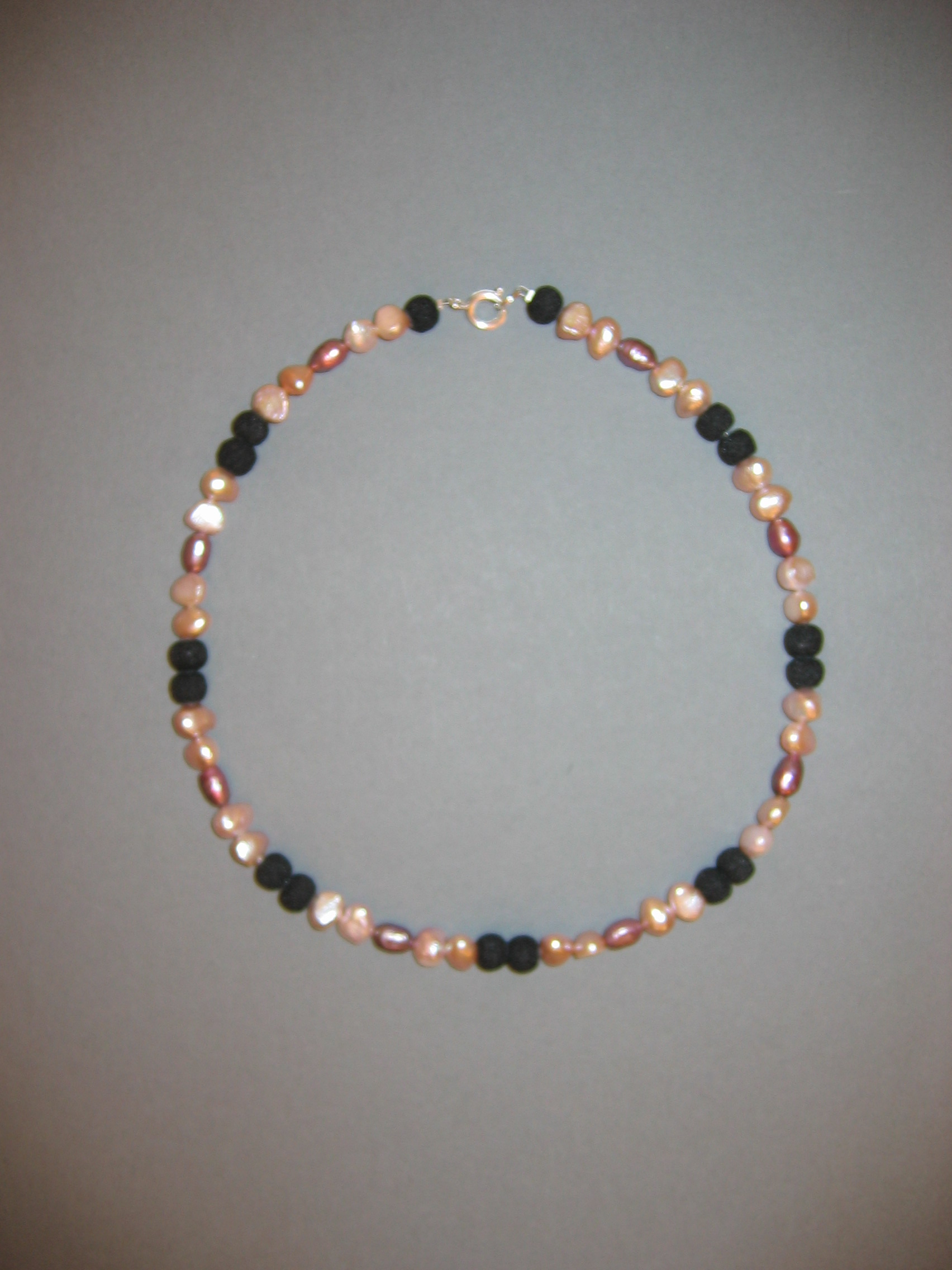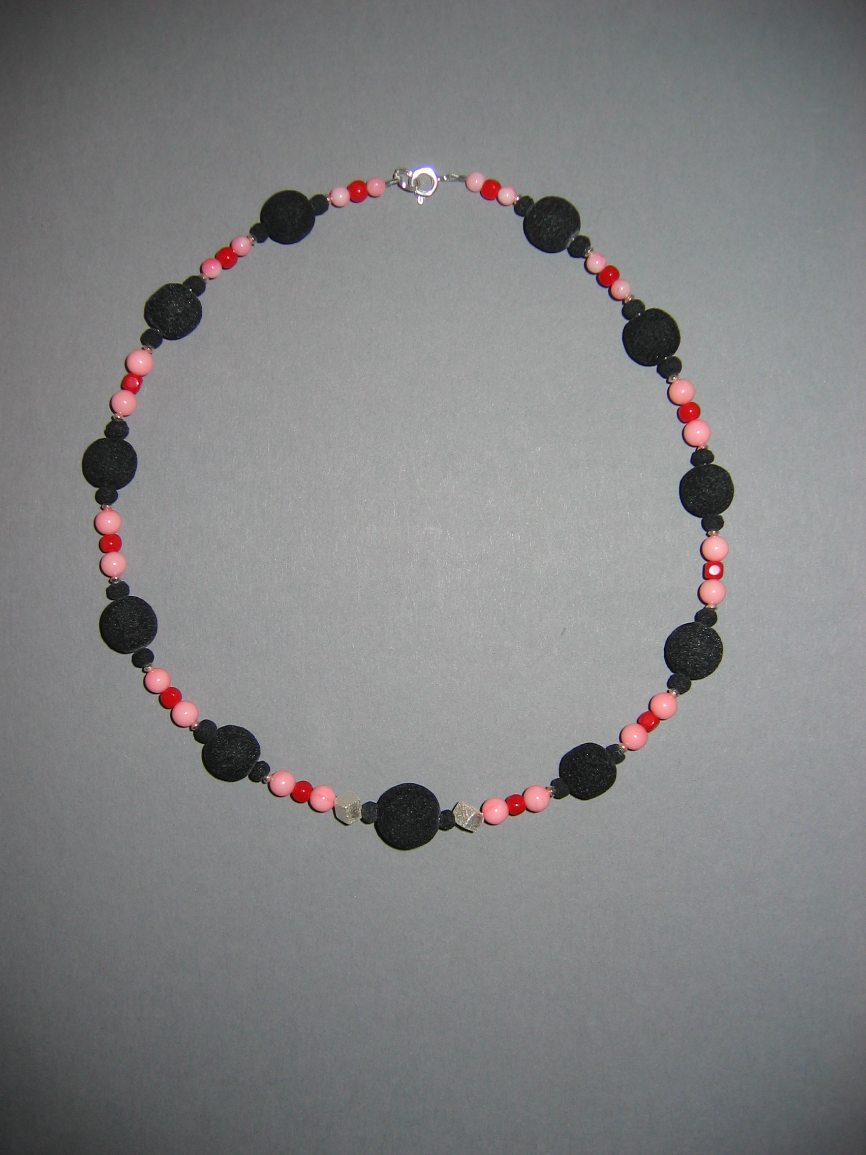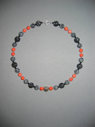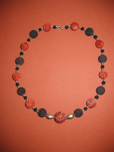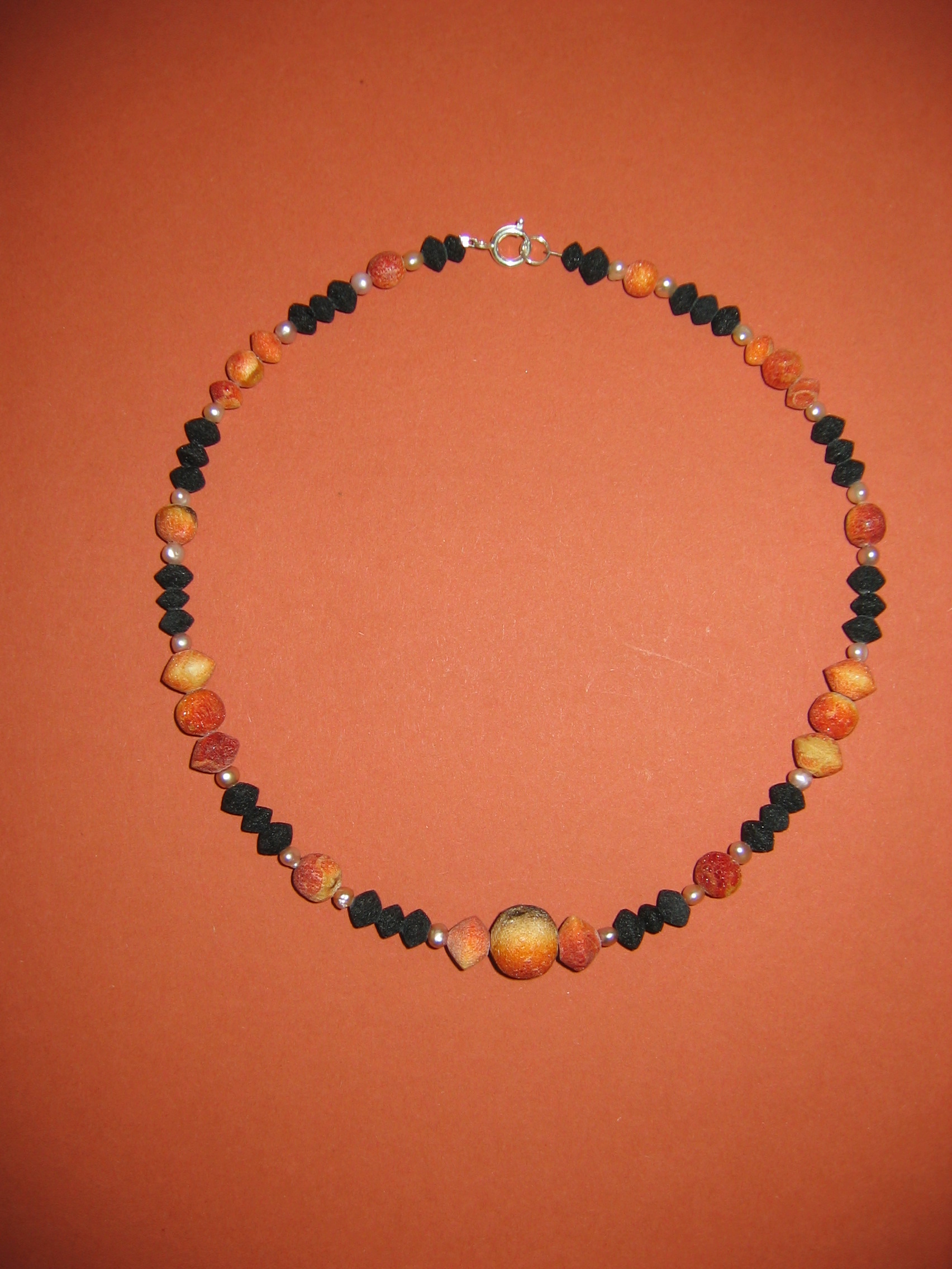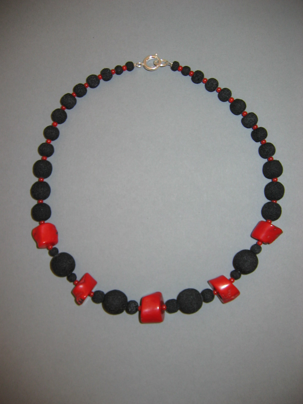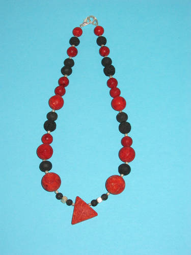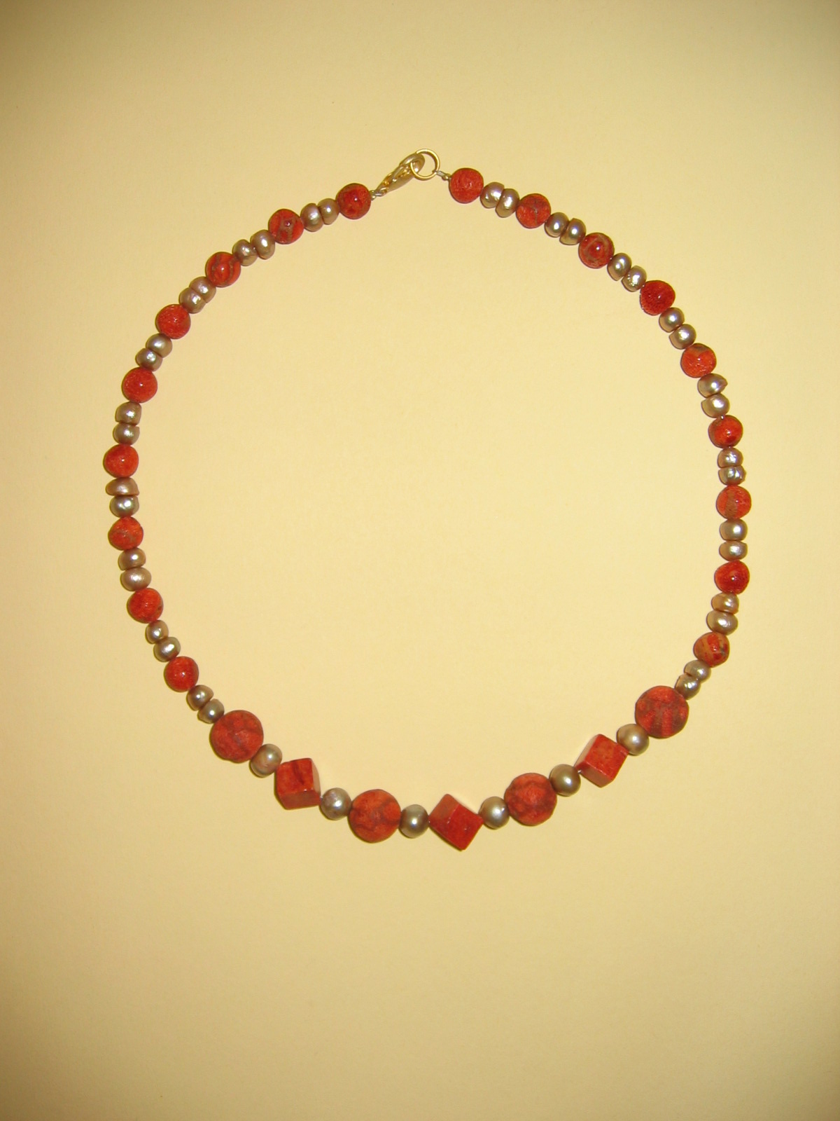 Koralle, Lava, Silber, Süßwasserperlen | |