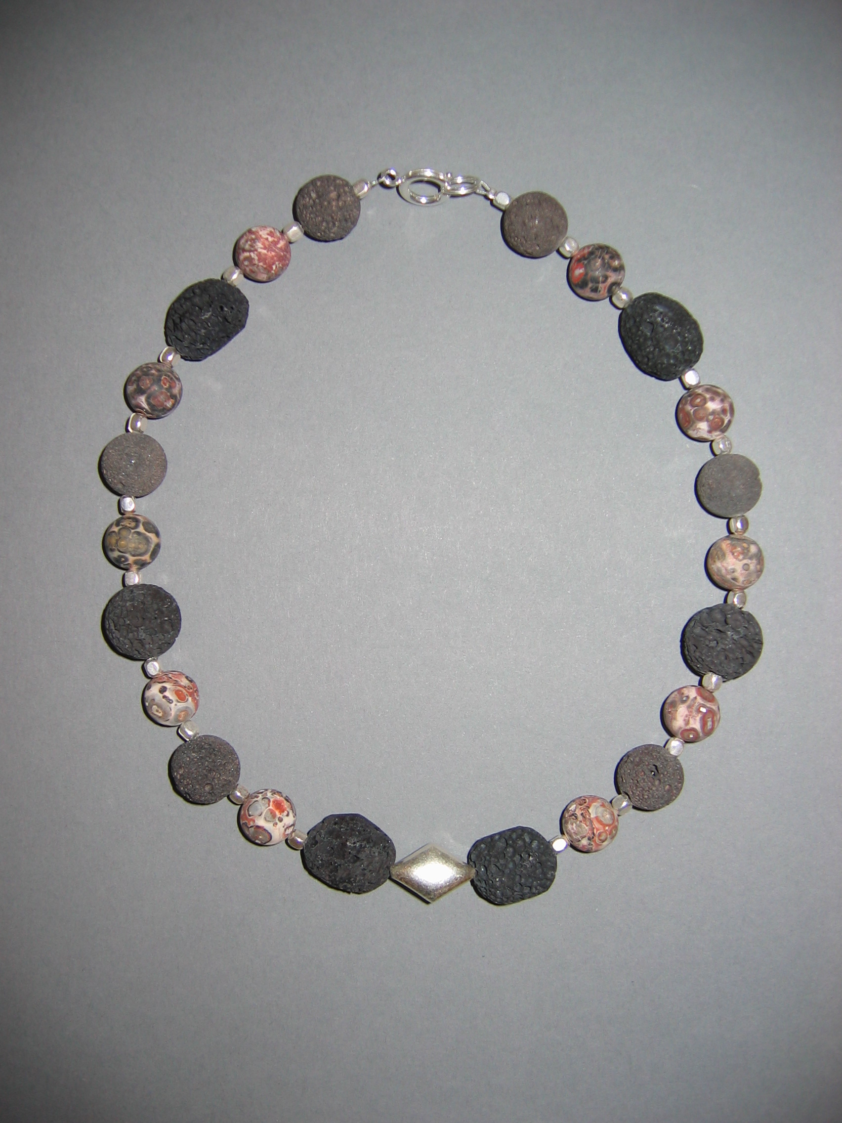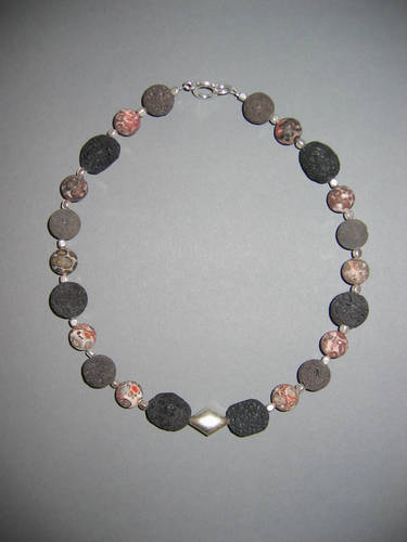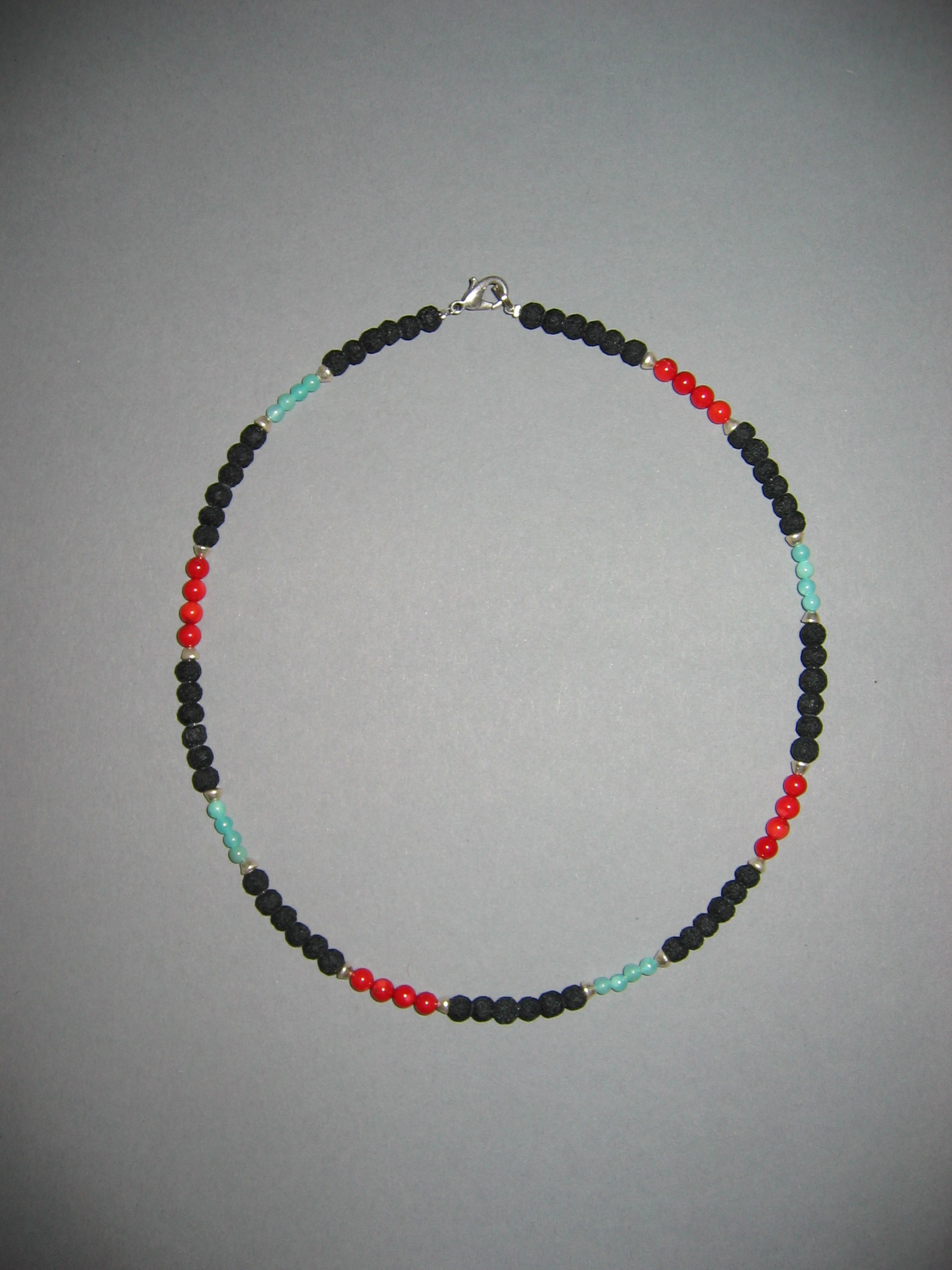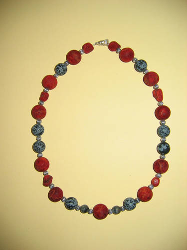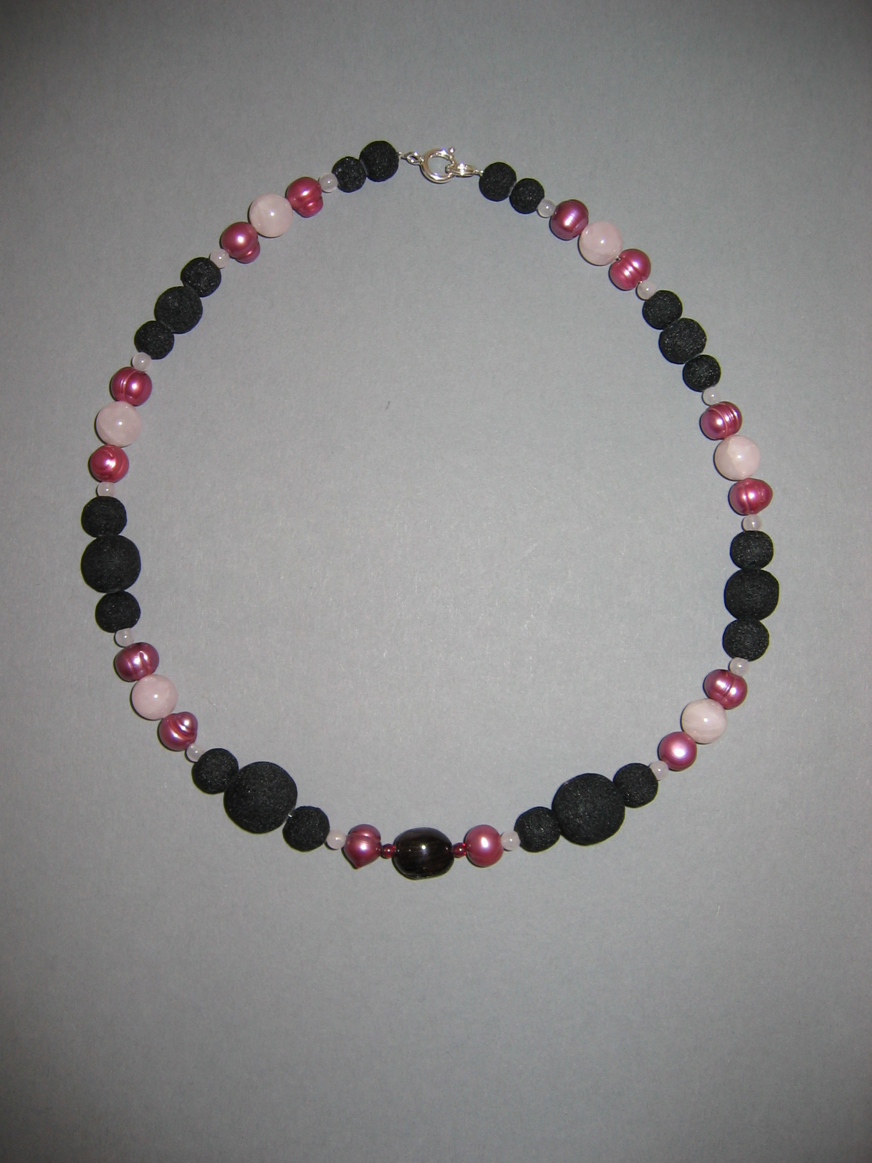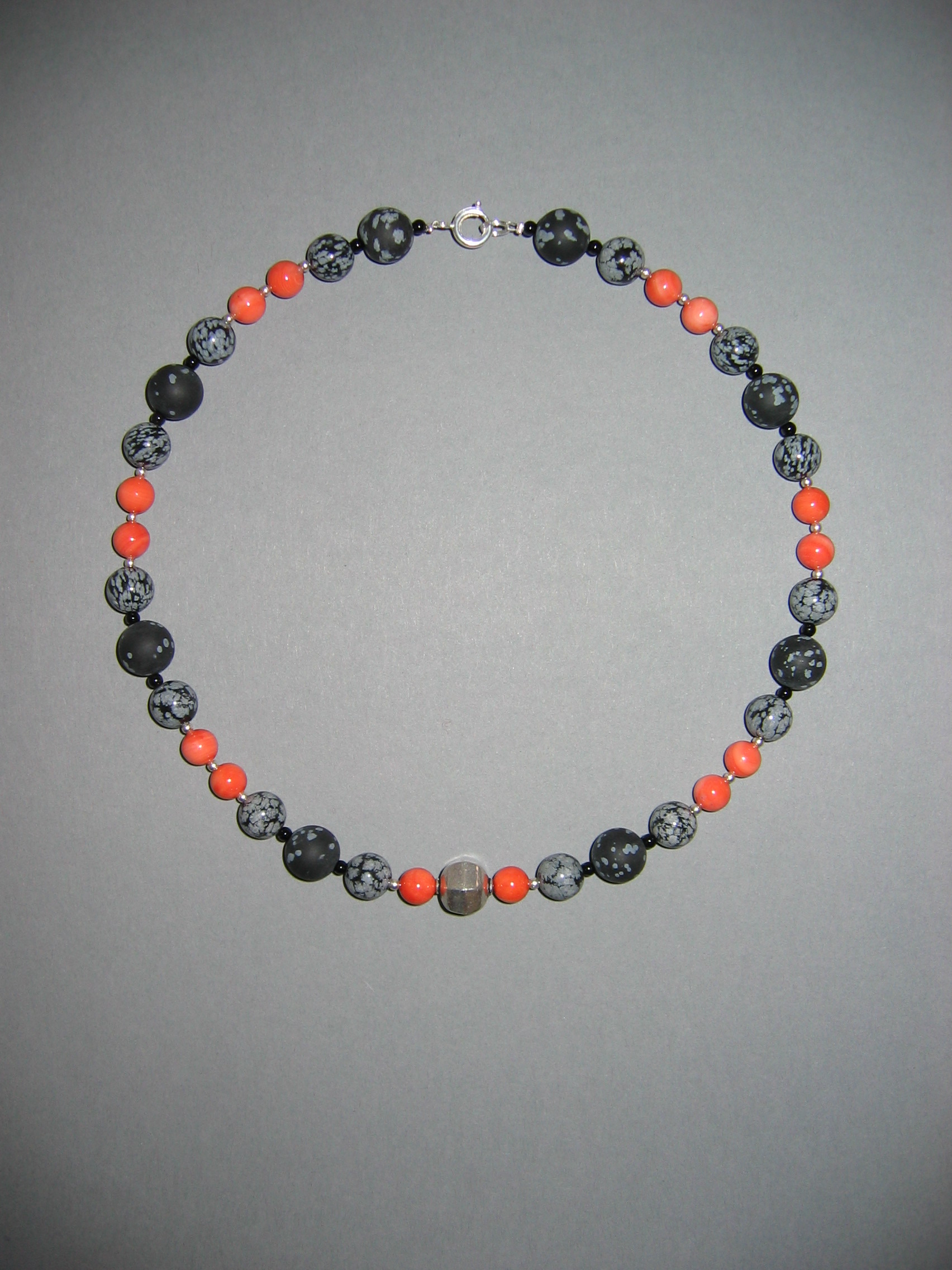 Koralle, Lava, Silber, Süßwasserperlen | |