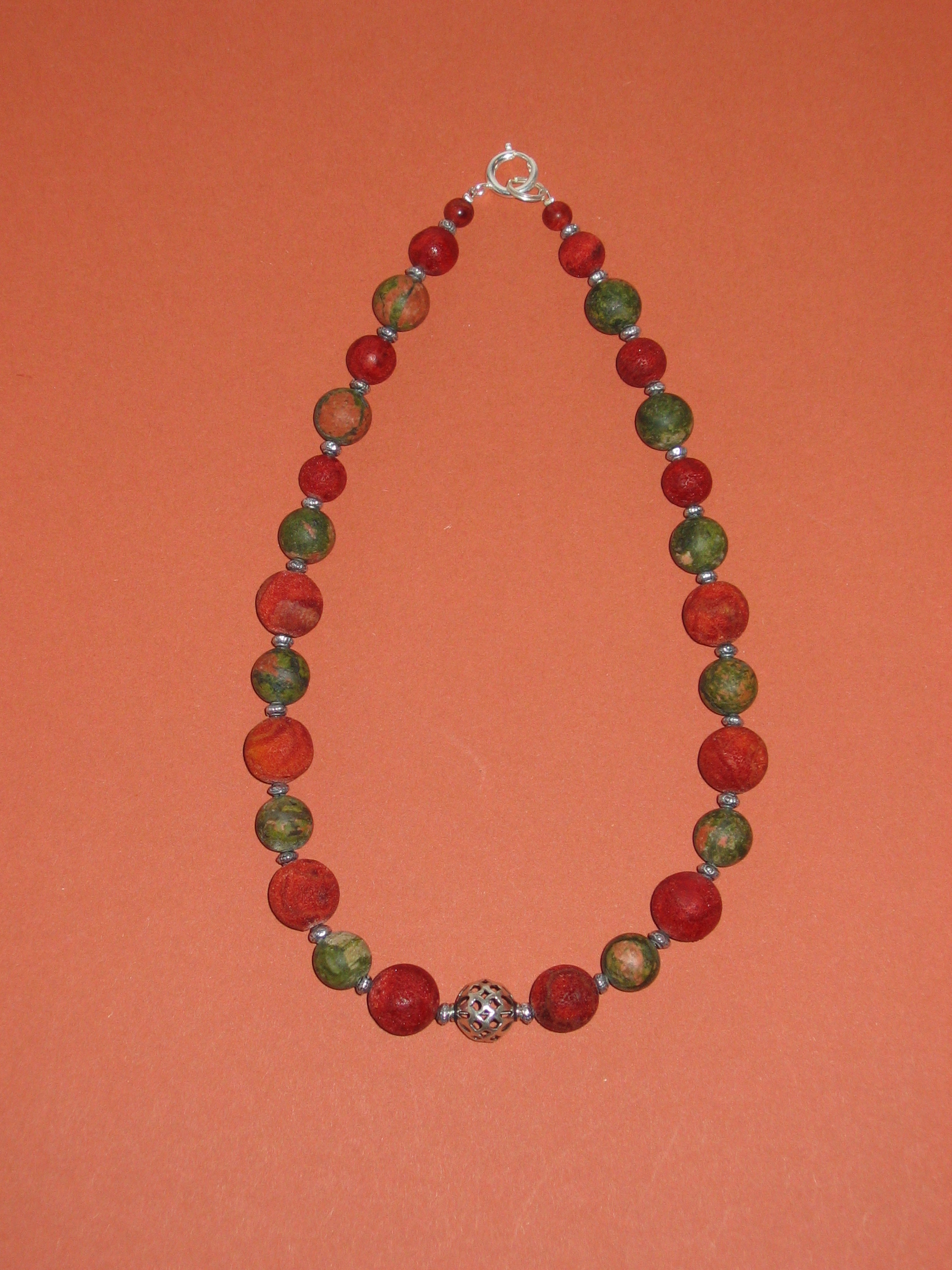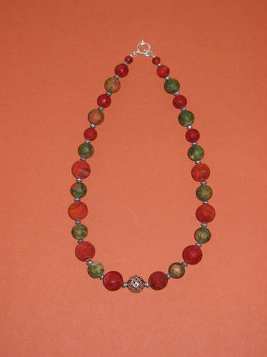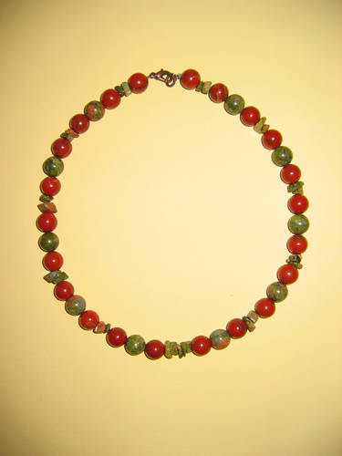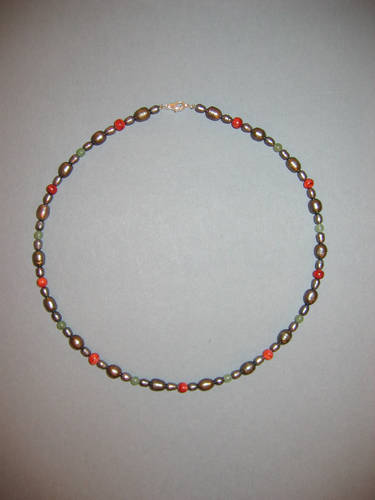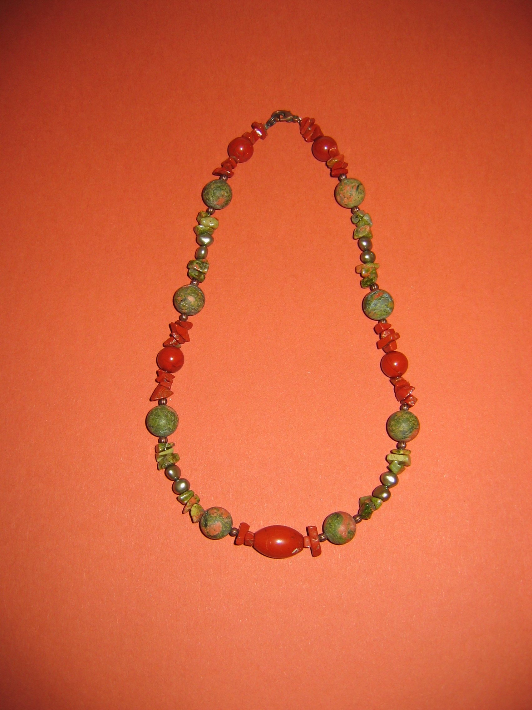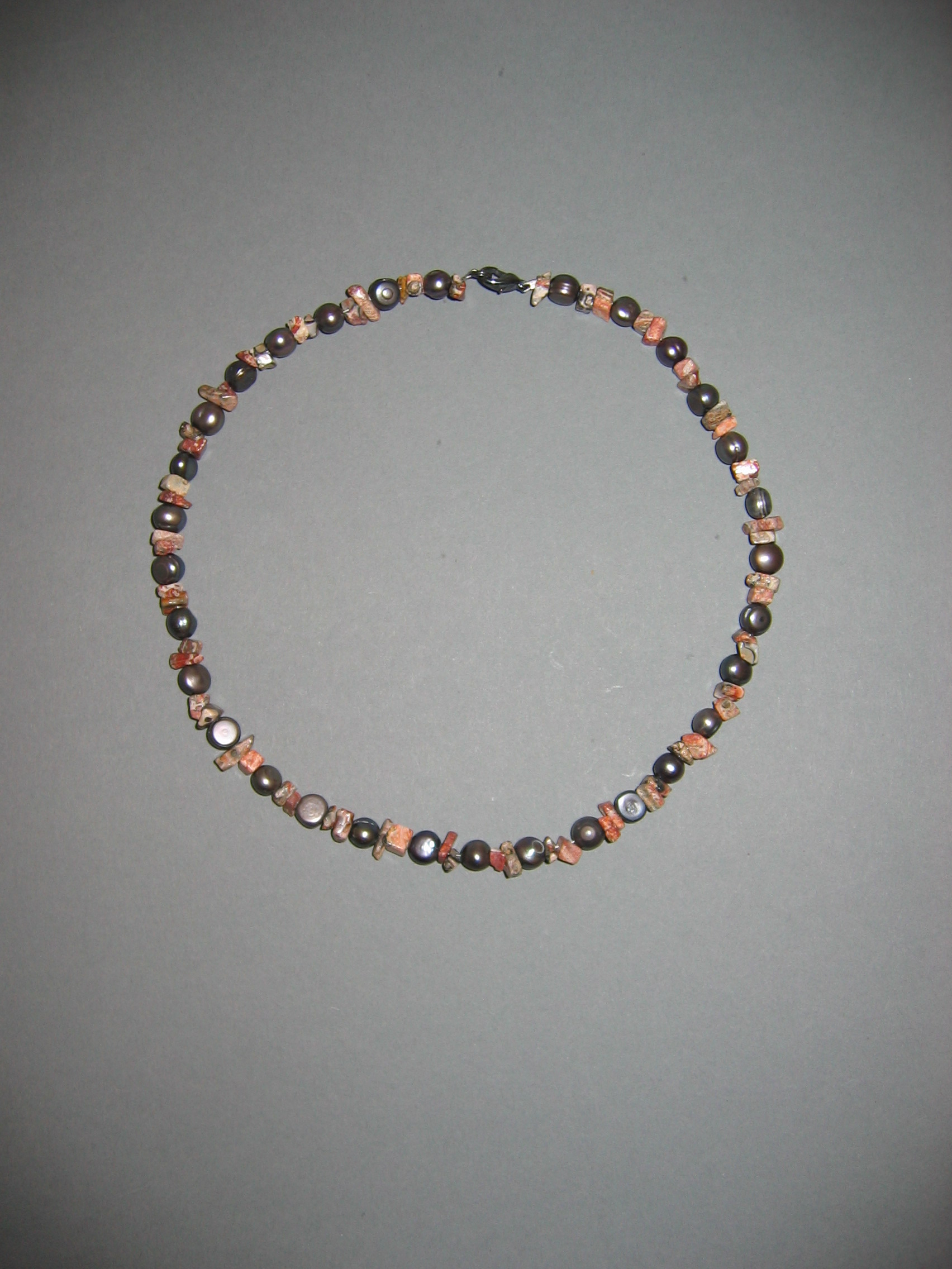 Unakit, Jaspis rot , Süßwasserperlen | |