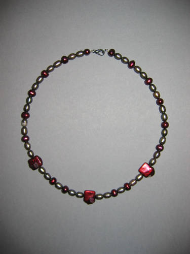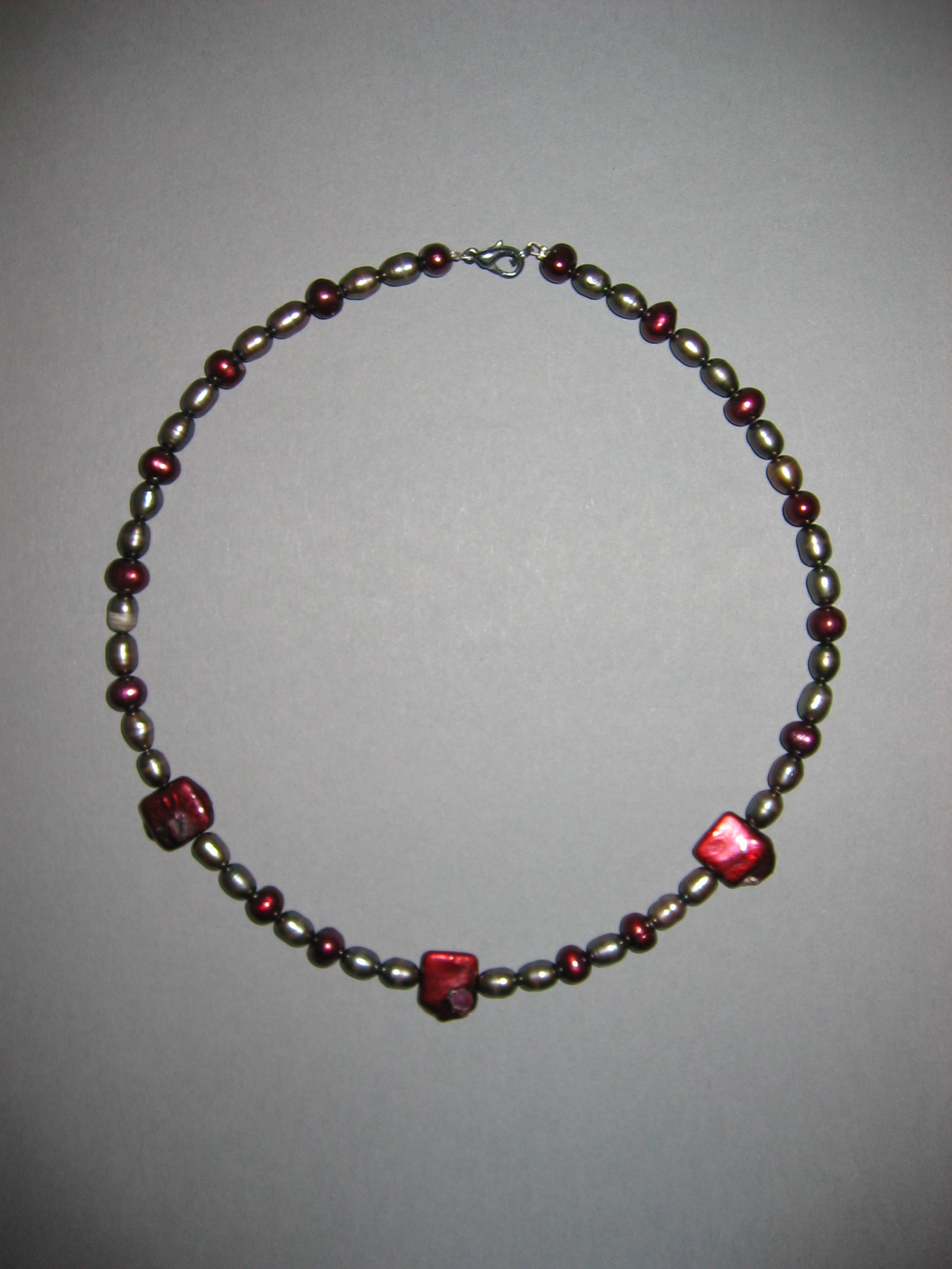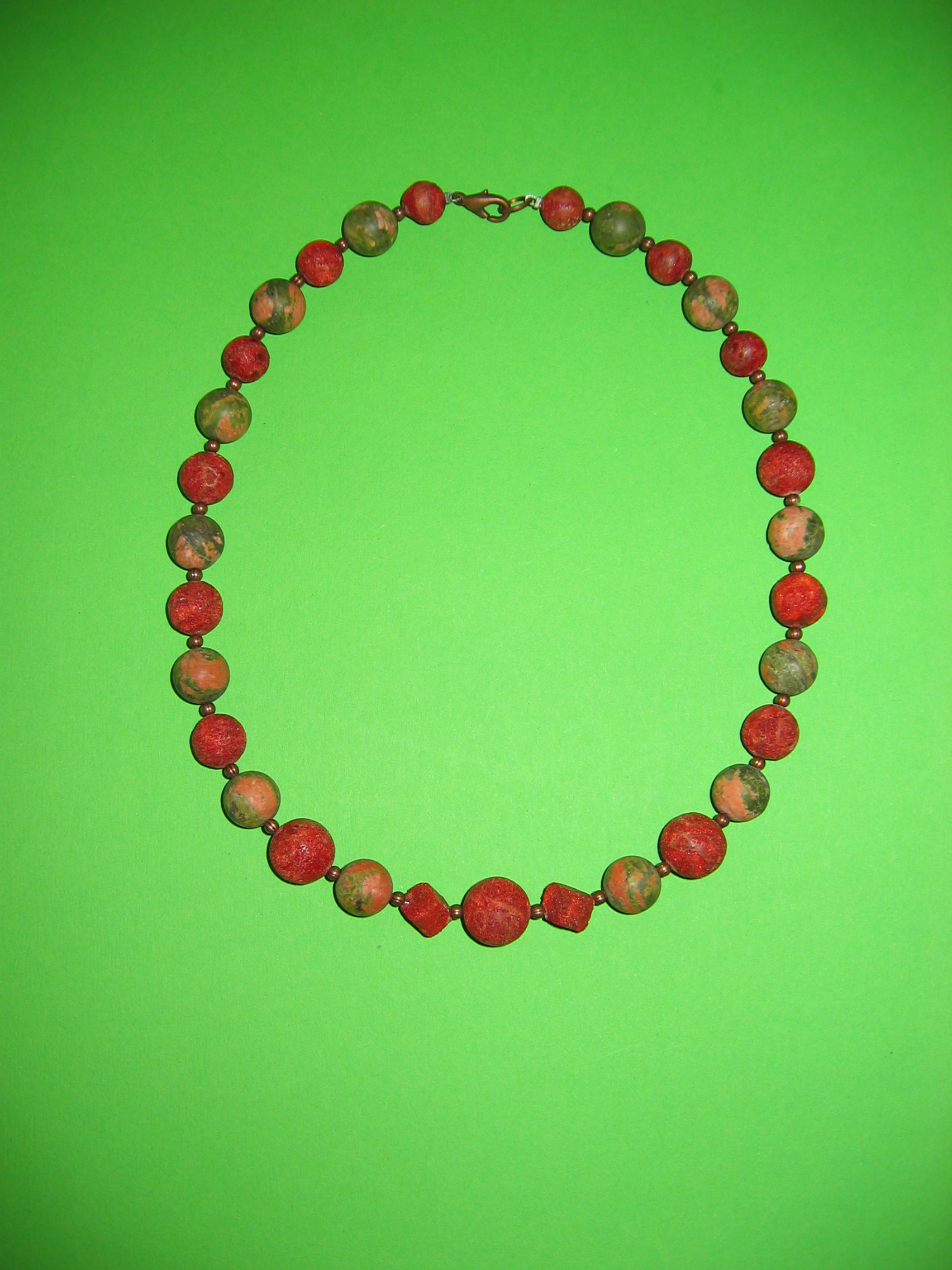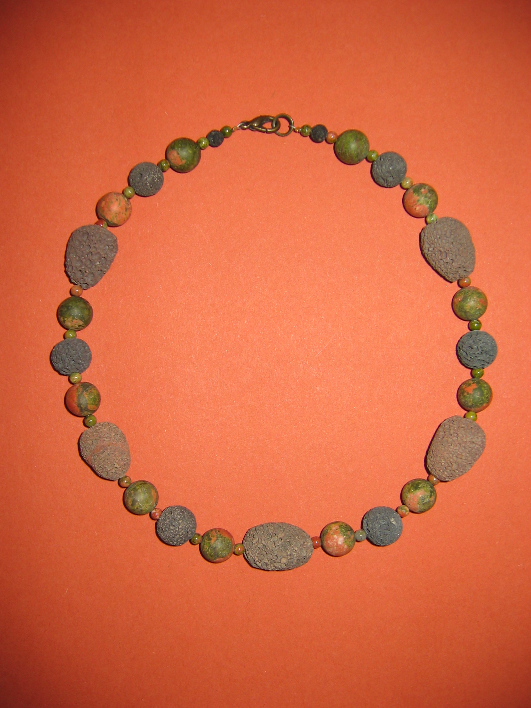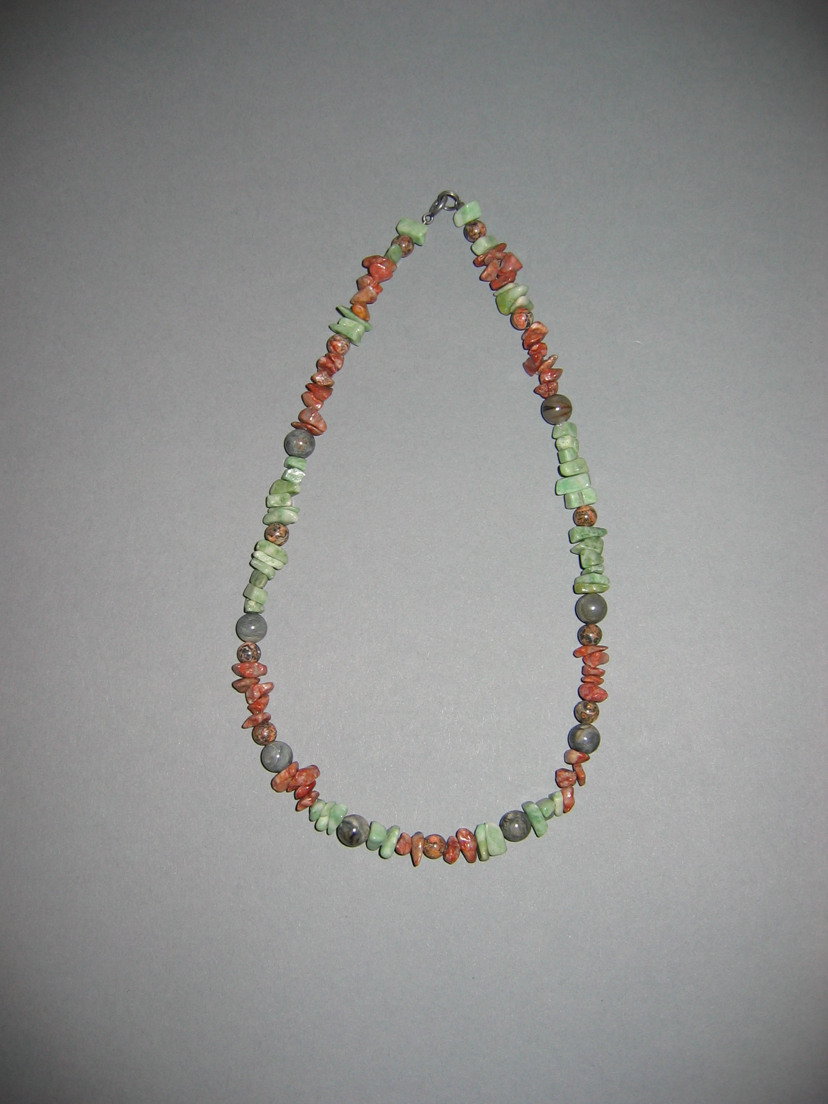 Unakit, Jaspis rot , Süßwasserperlen | |