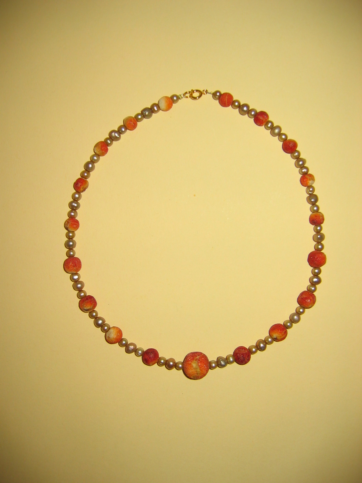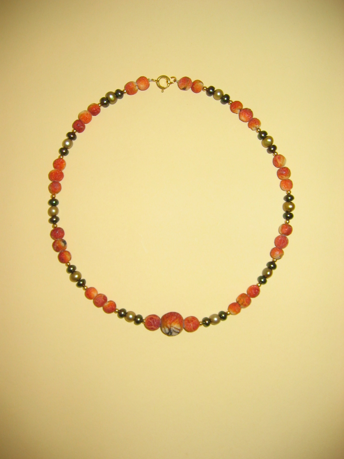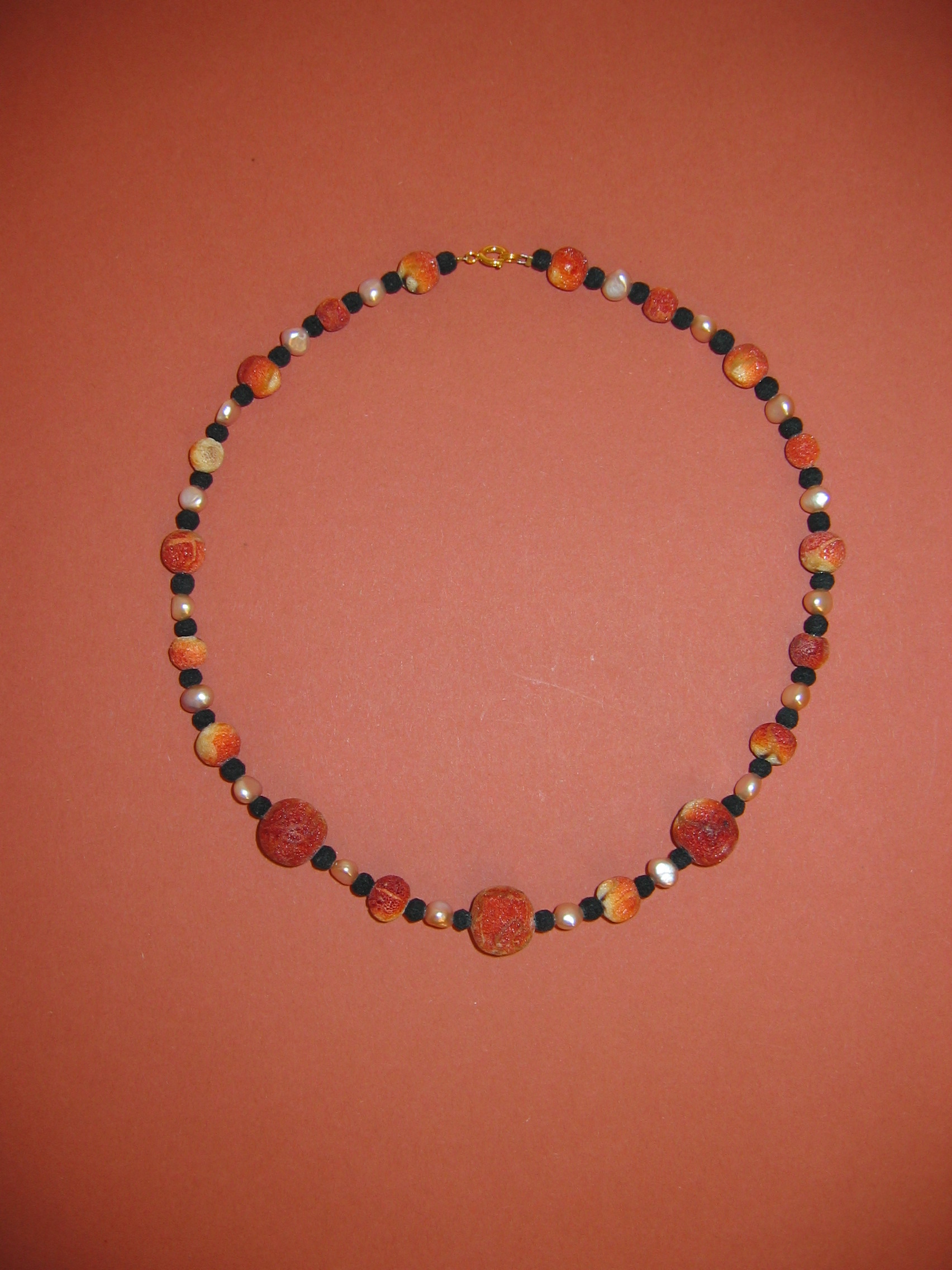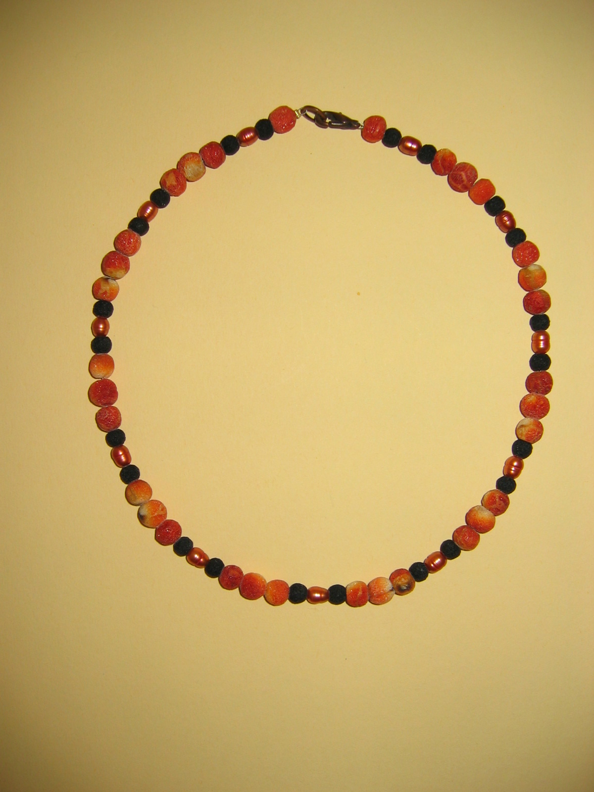 Schaumkoralle rot matt, Lava, Süßwasserperlen | |