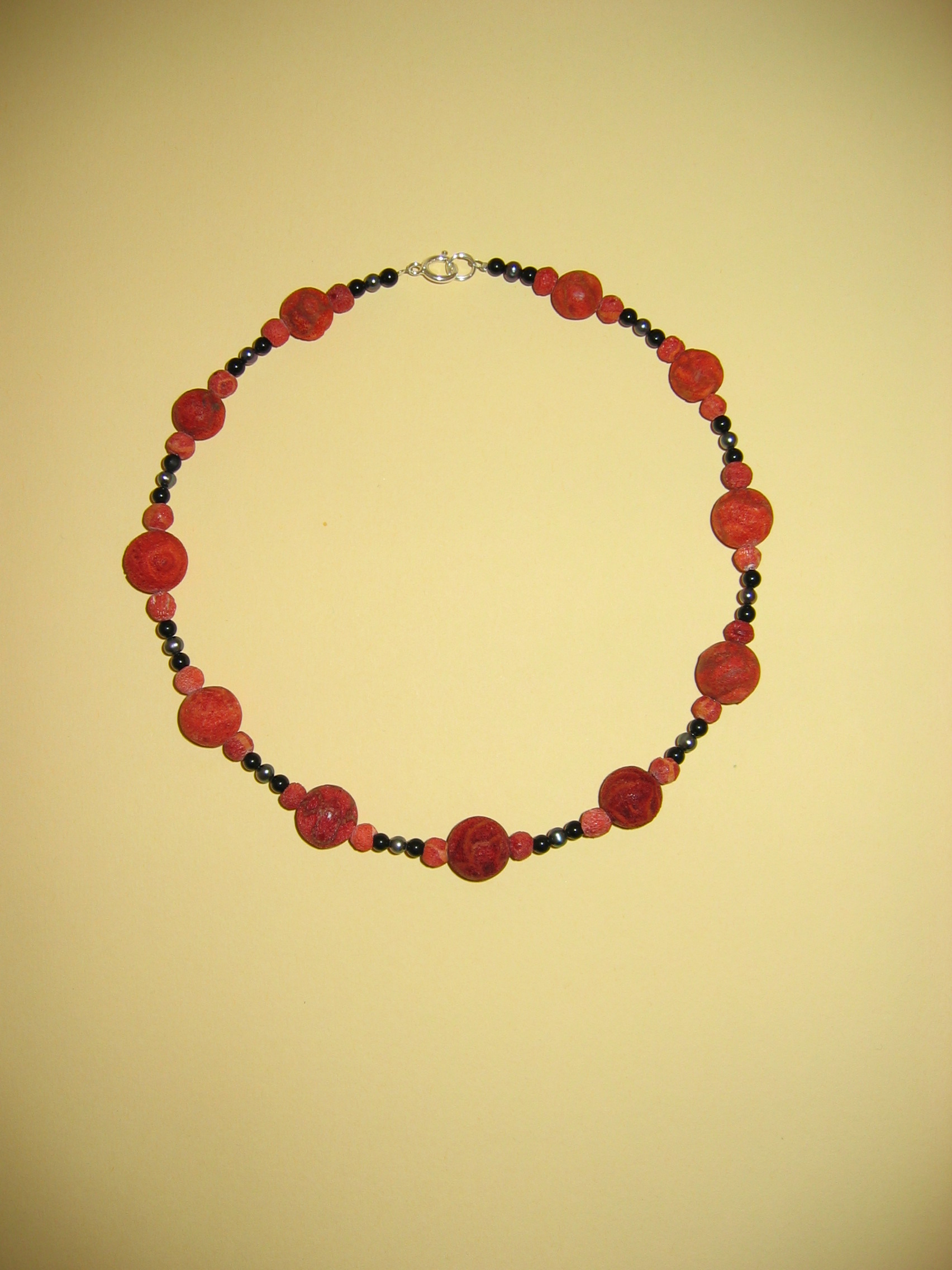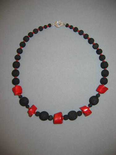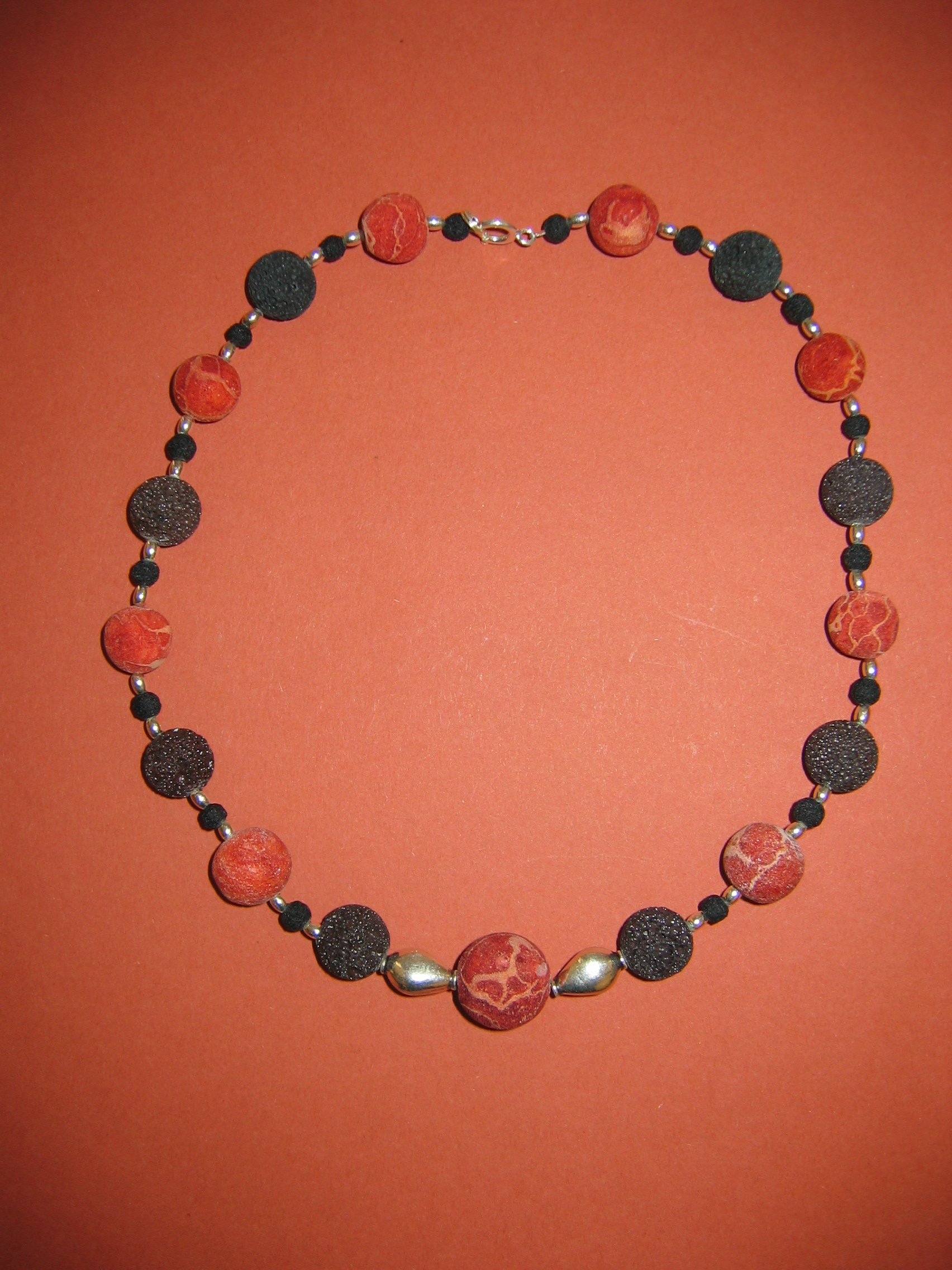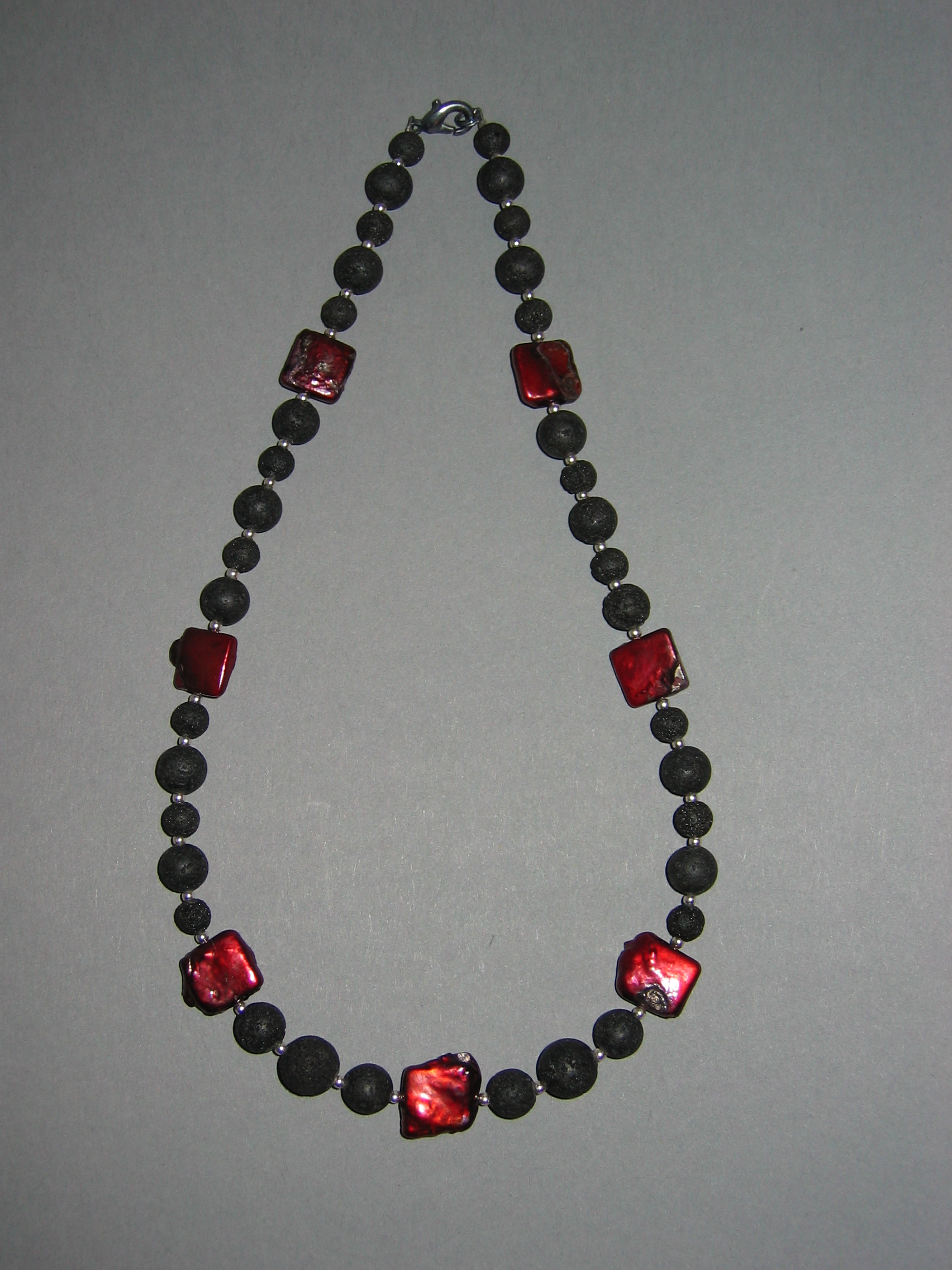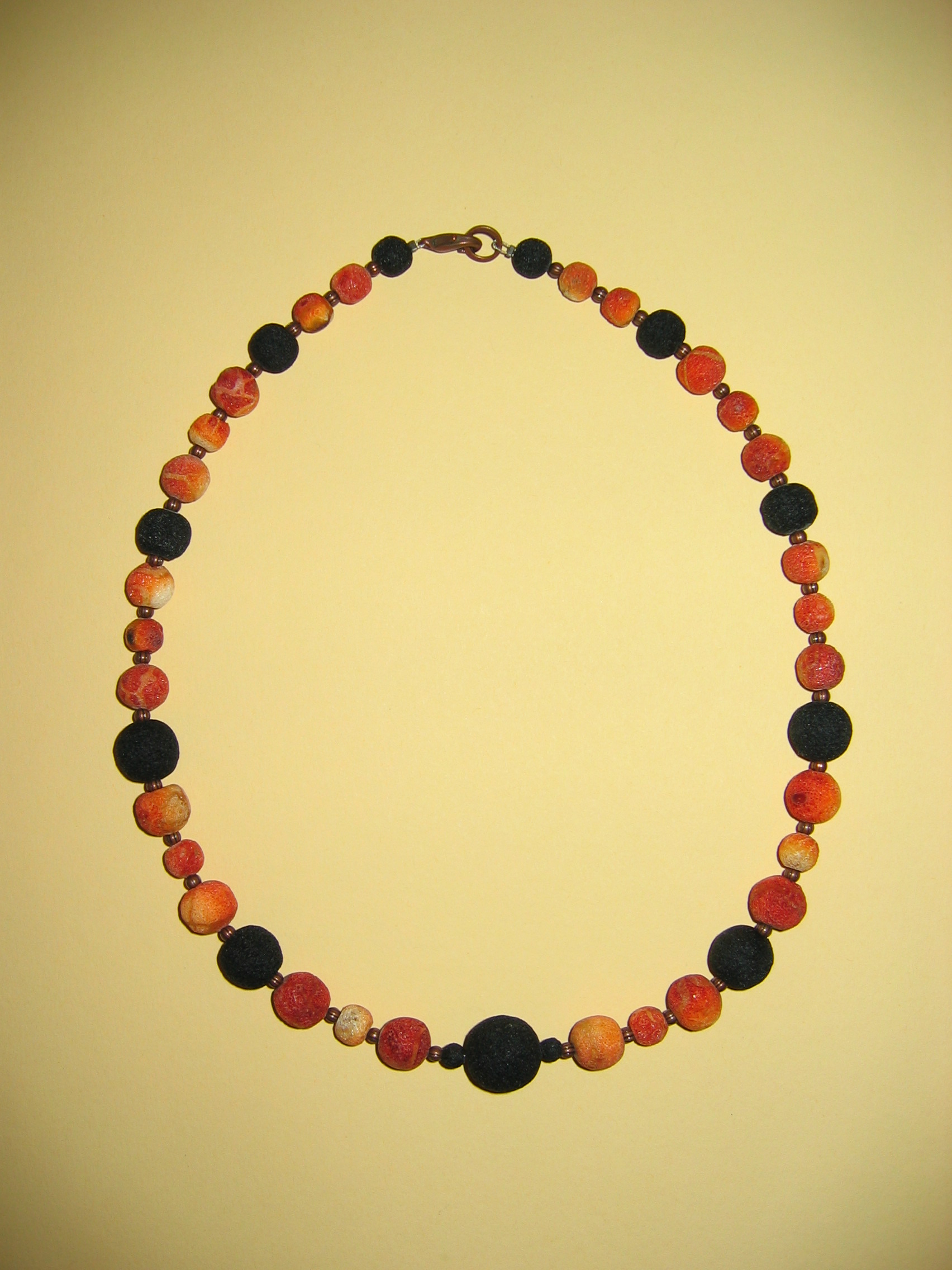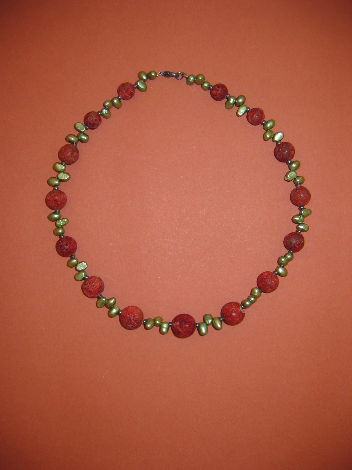 Schaumkoralle rot matt, Lava, Süßwasserperlen | |