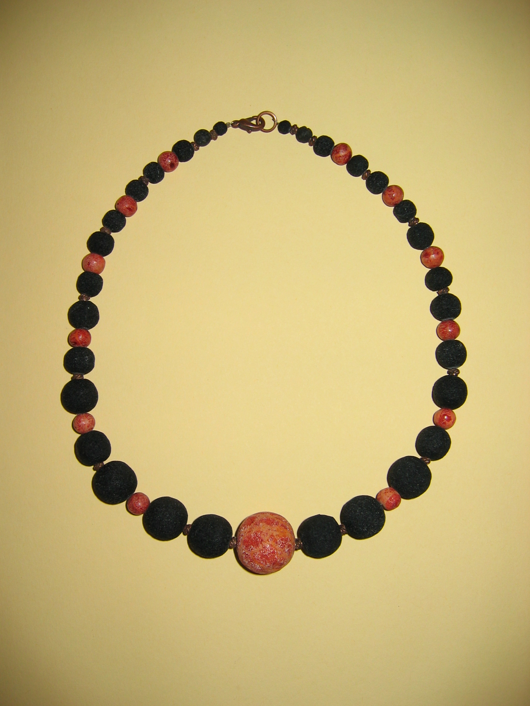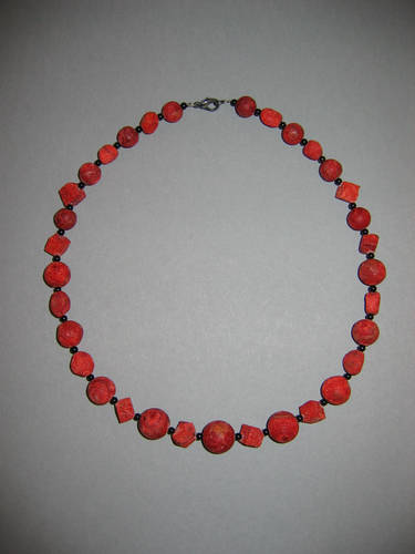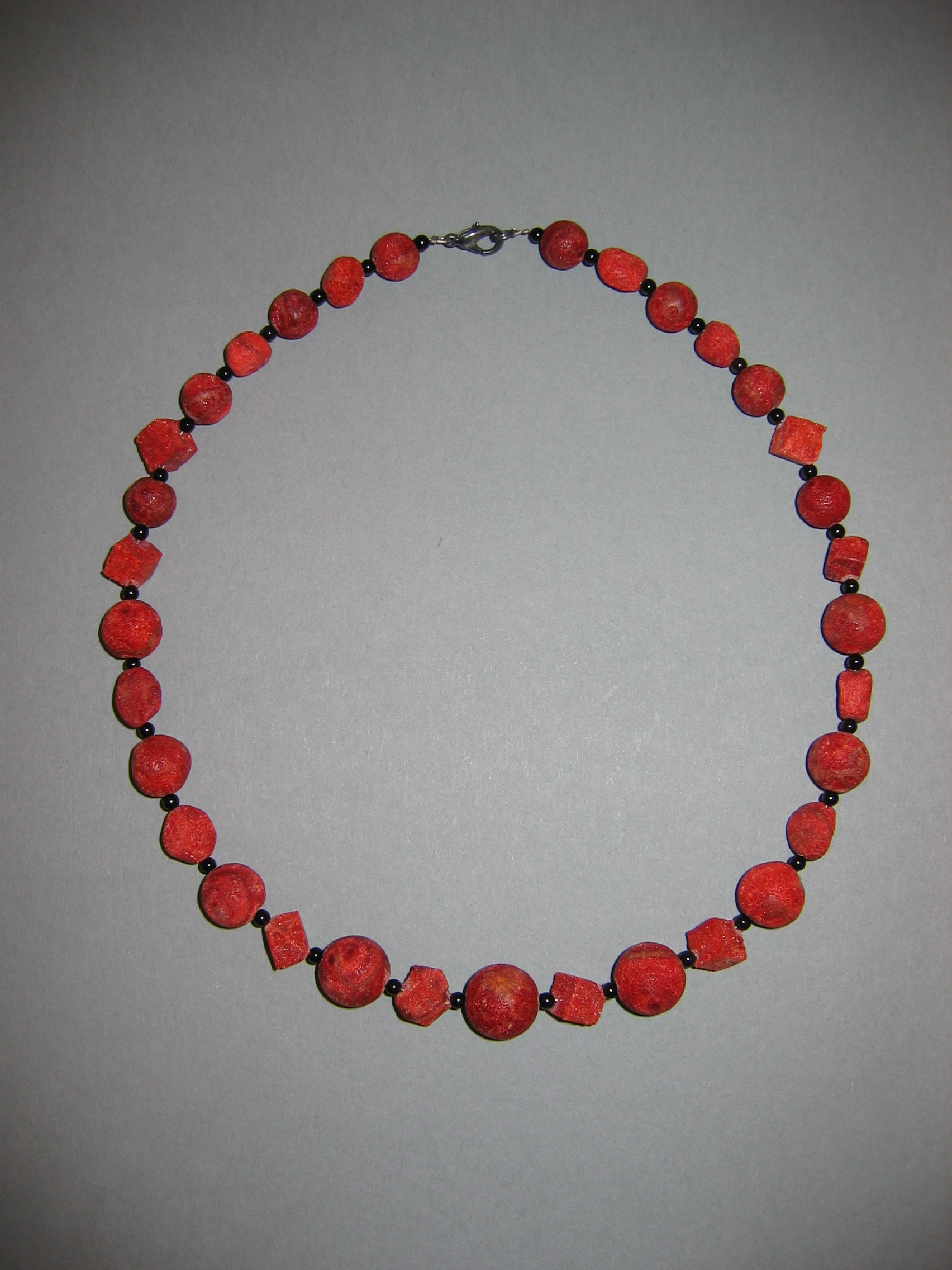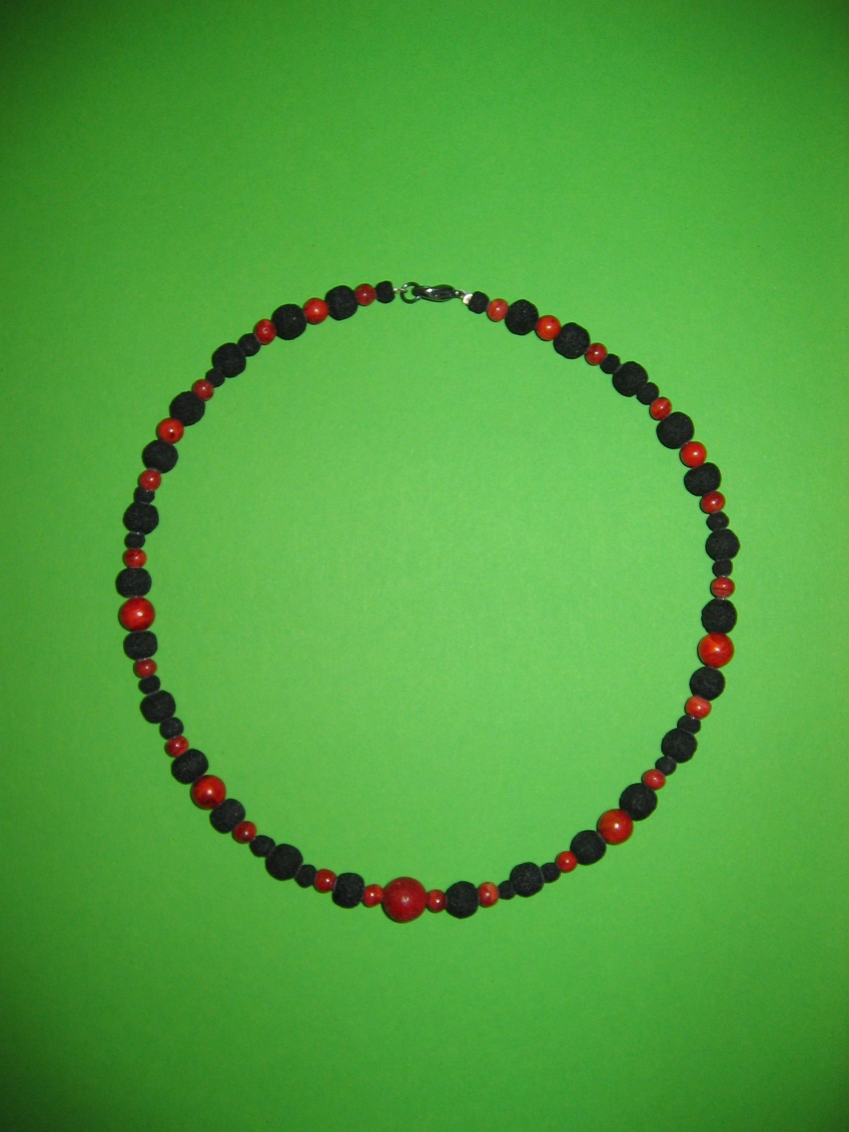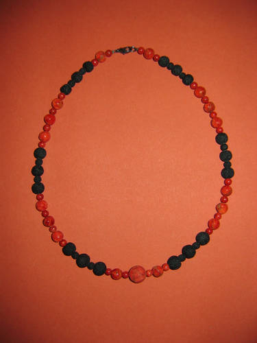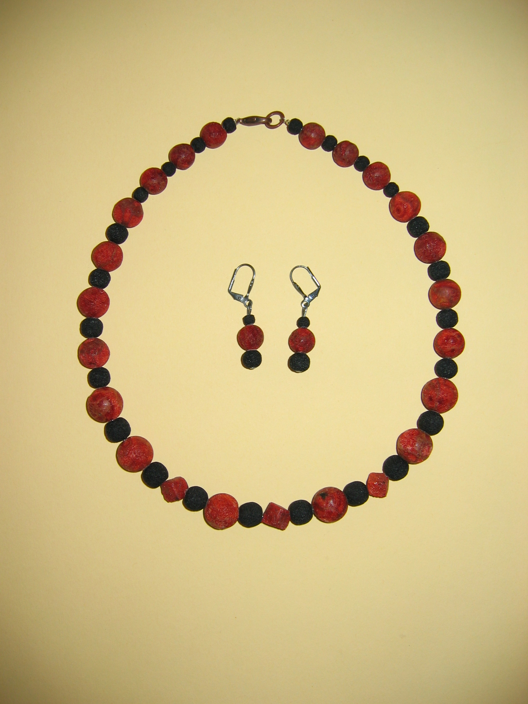 Schaumkoralle rot matt, Lava, Süßwasserperlen | |