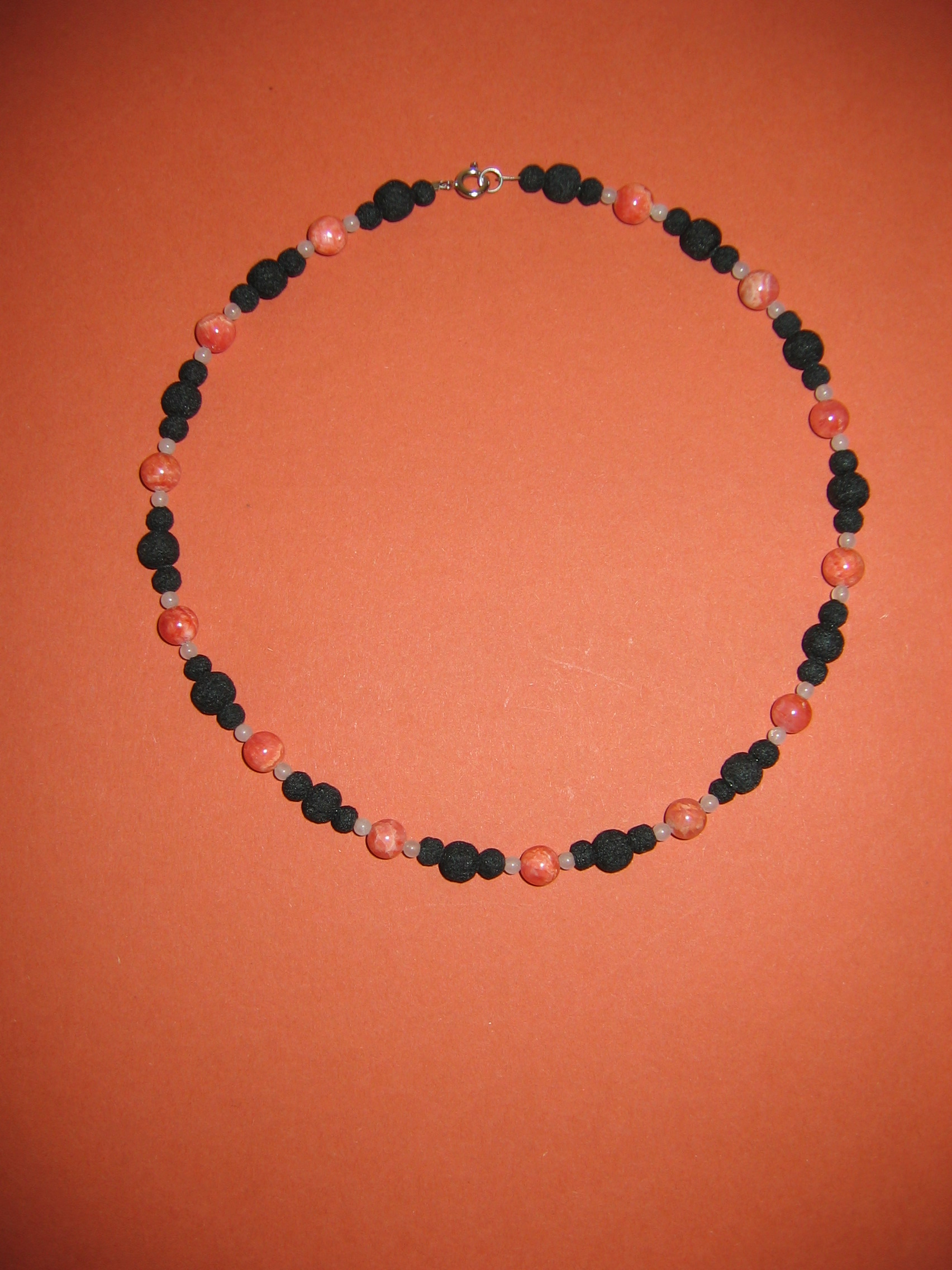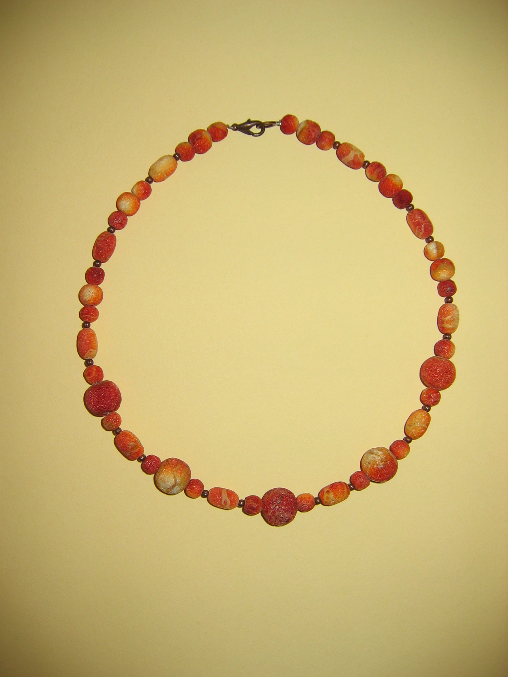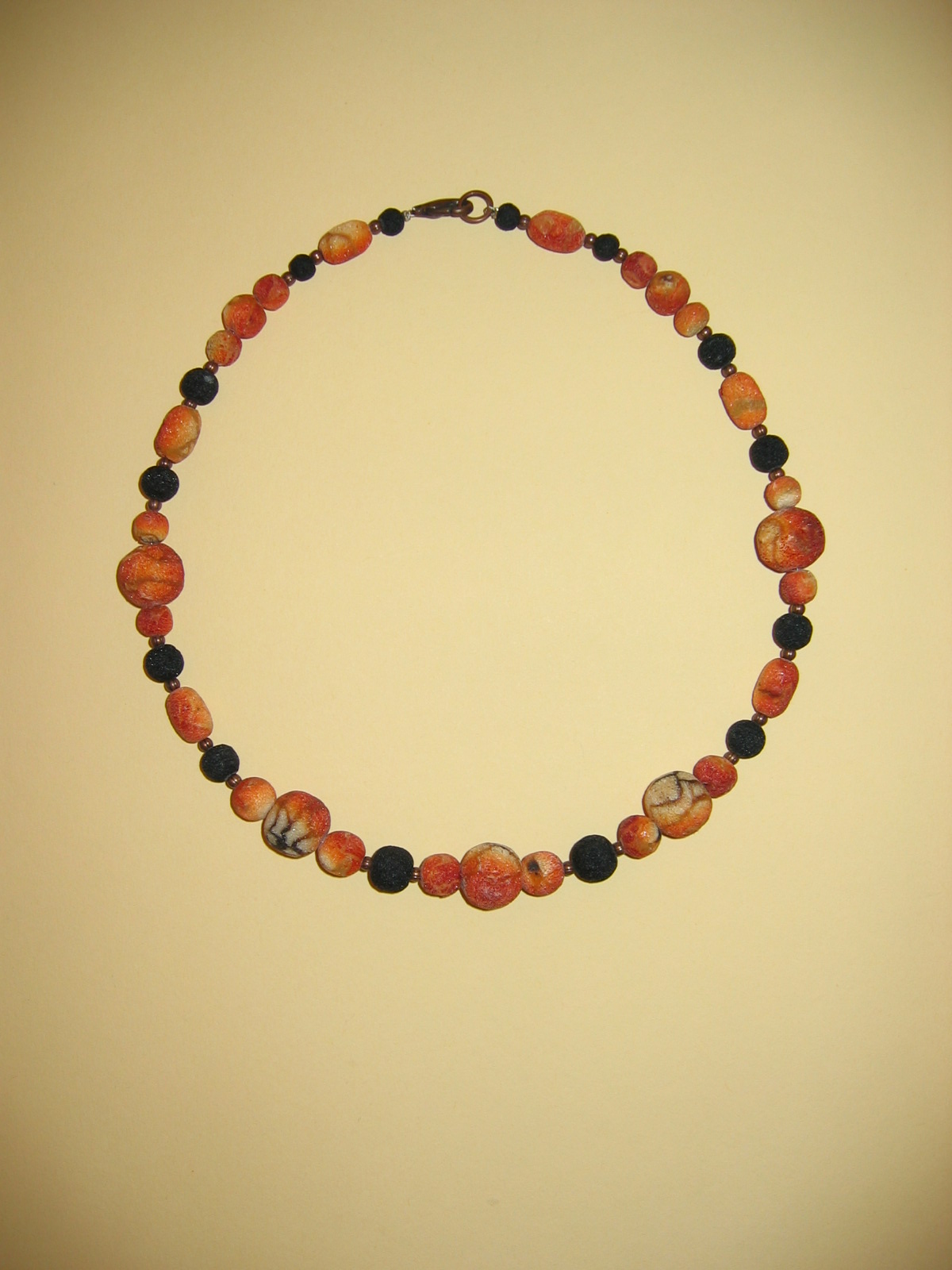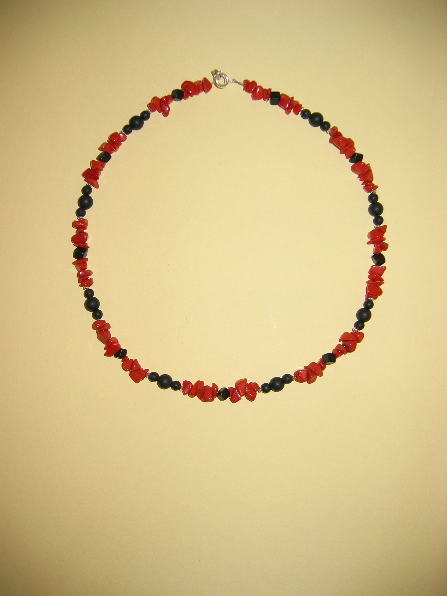 Schaumkoralle rot matt, Lava, Süßwasserperlen | |
