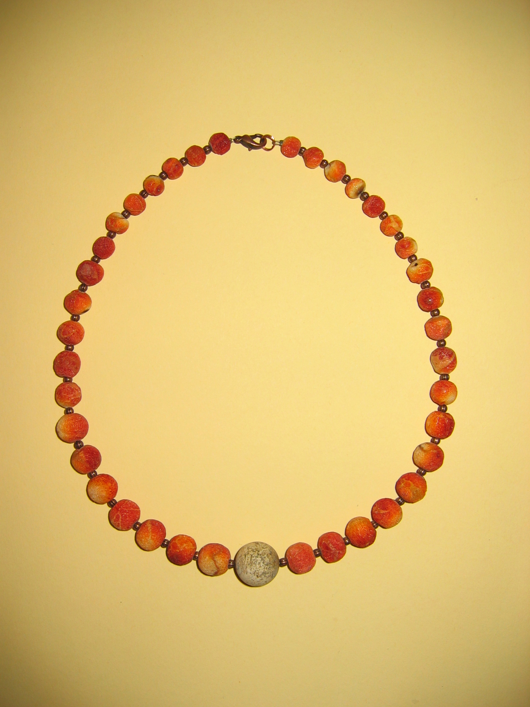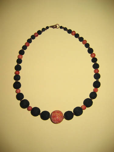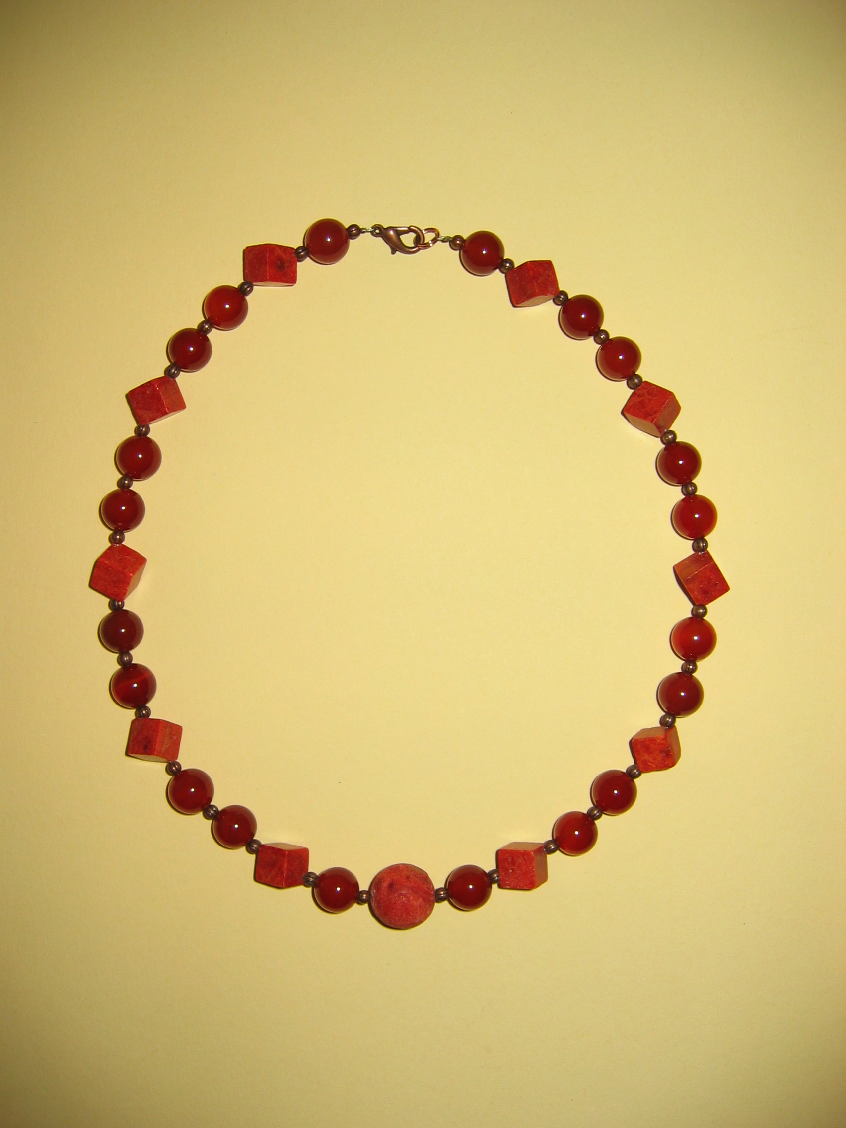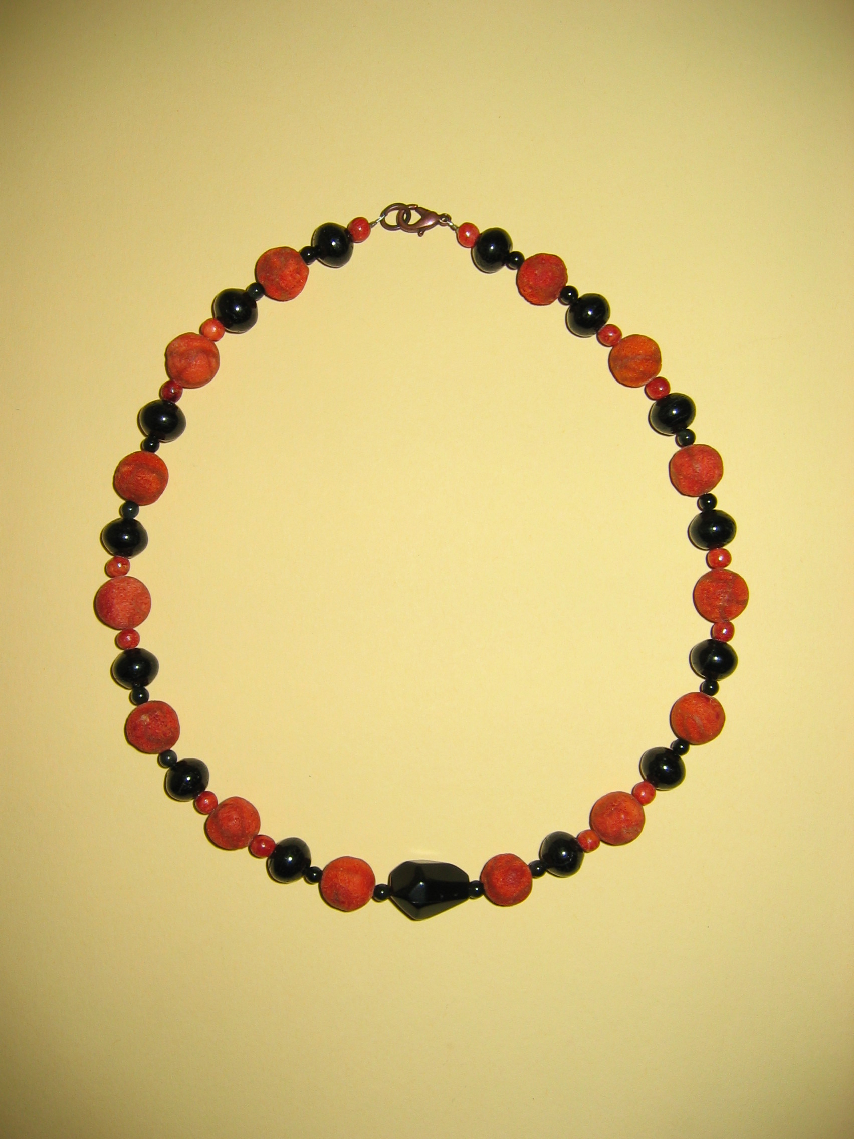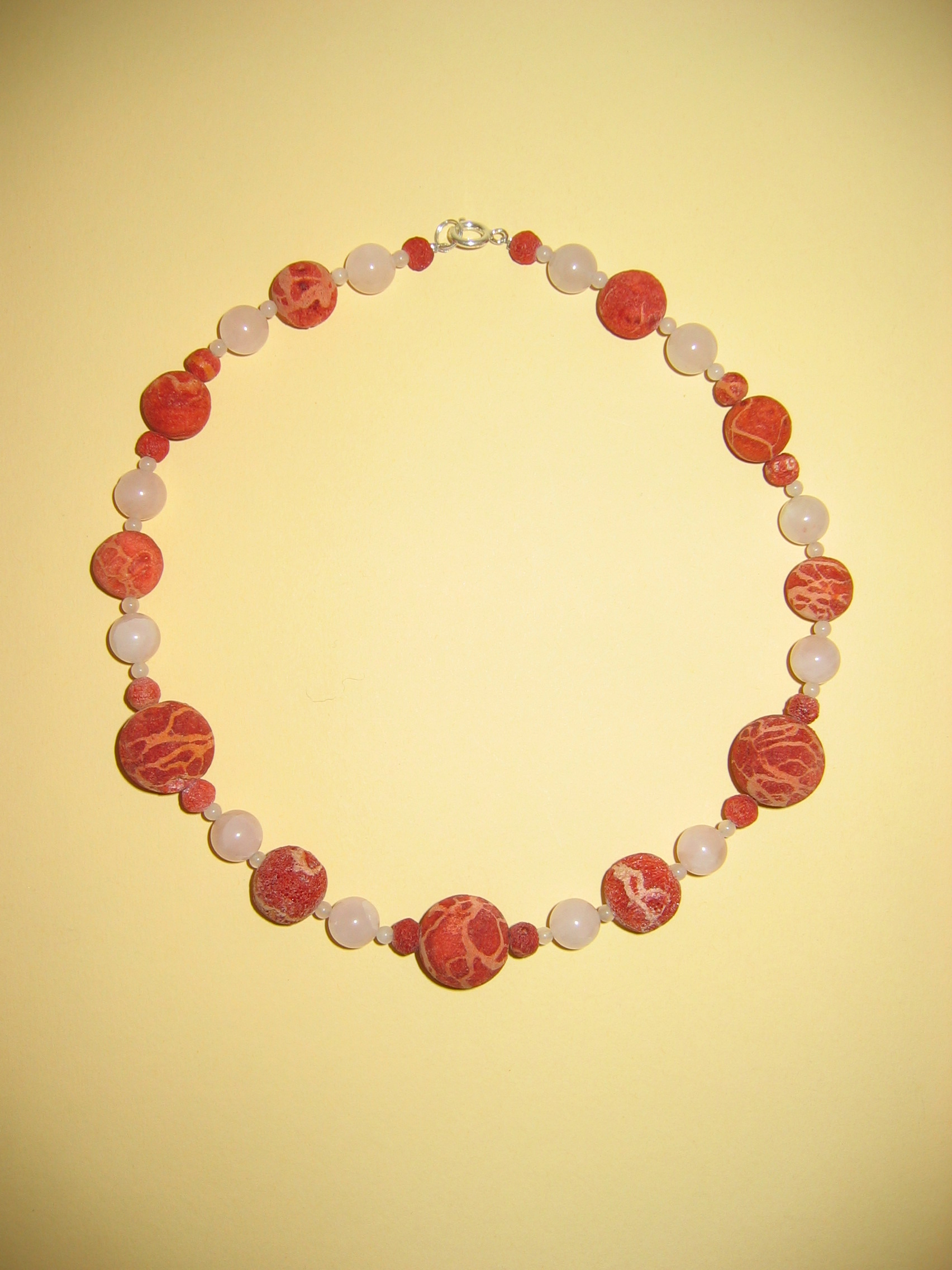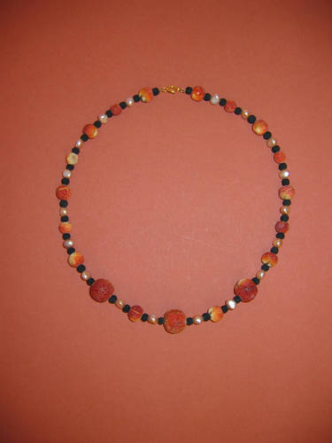 Schaumkoralle rot matt, Lava, Süßwasserperlen | |