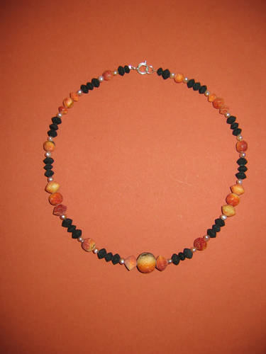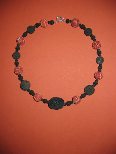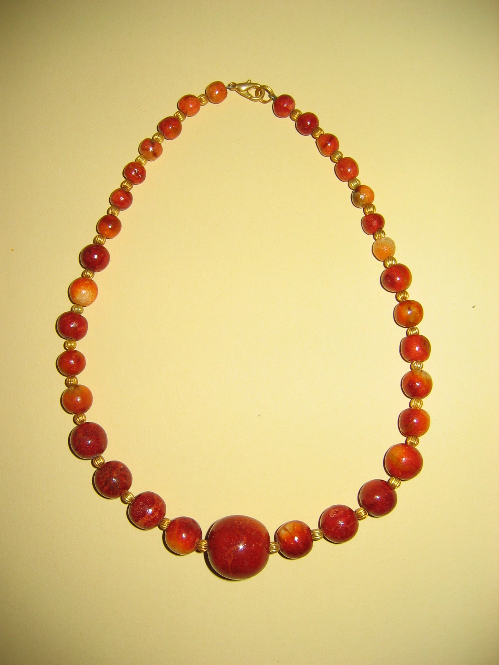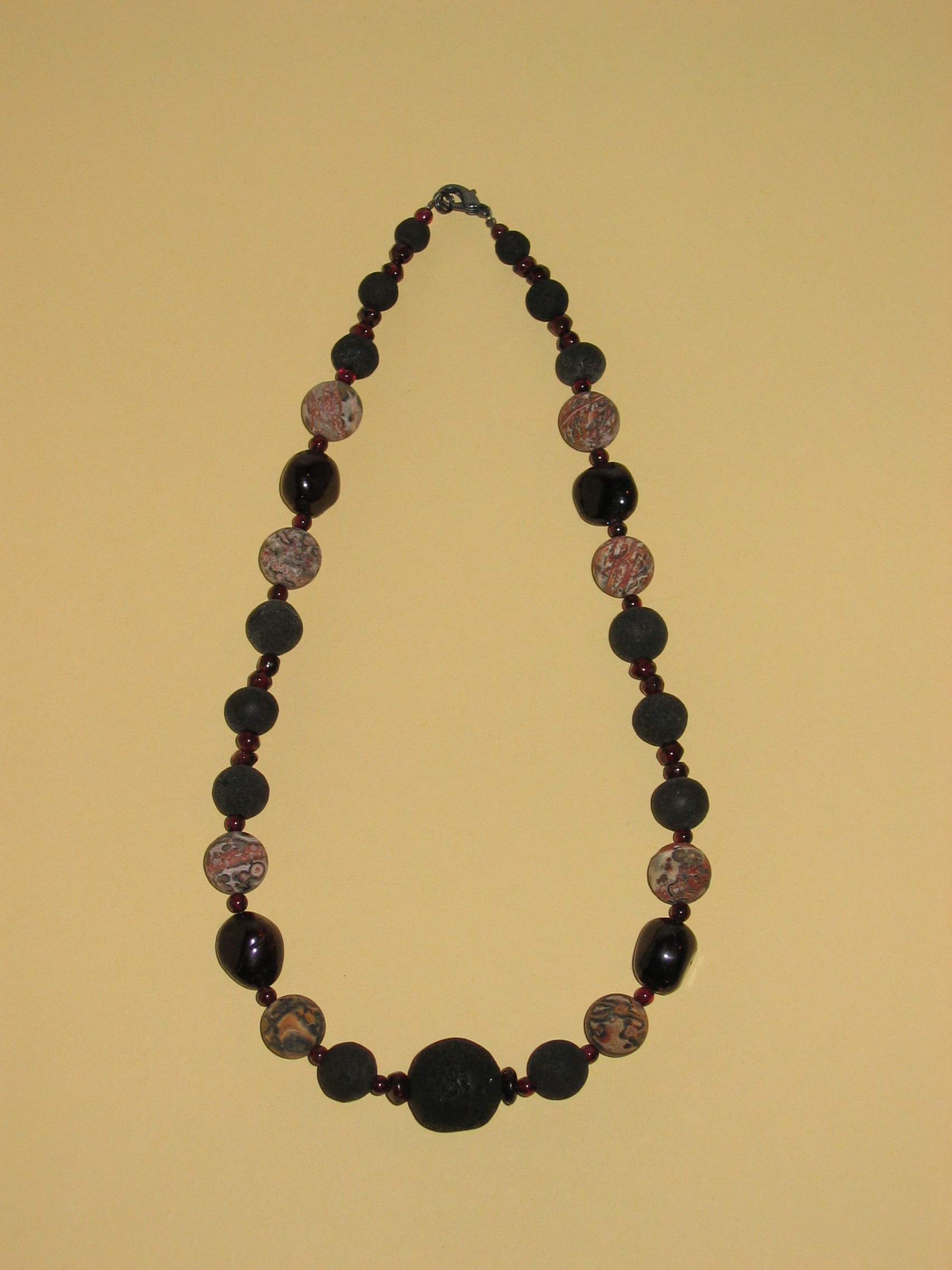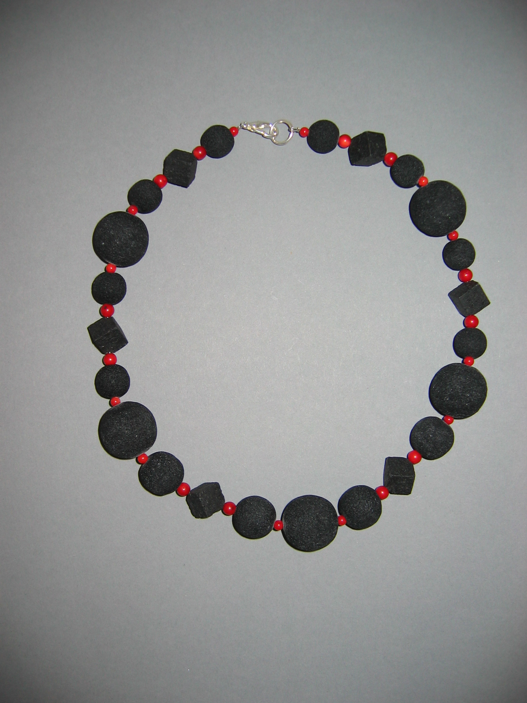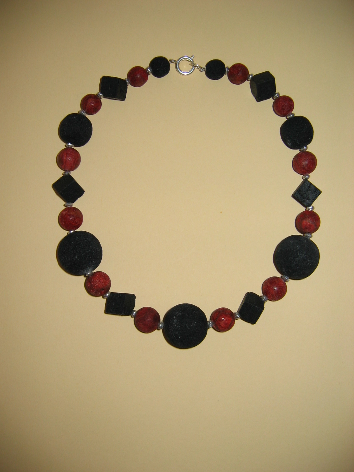 Schaumkoralle rot matt, Lava, Süßwasserperlen | |