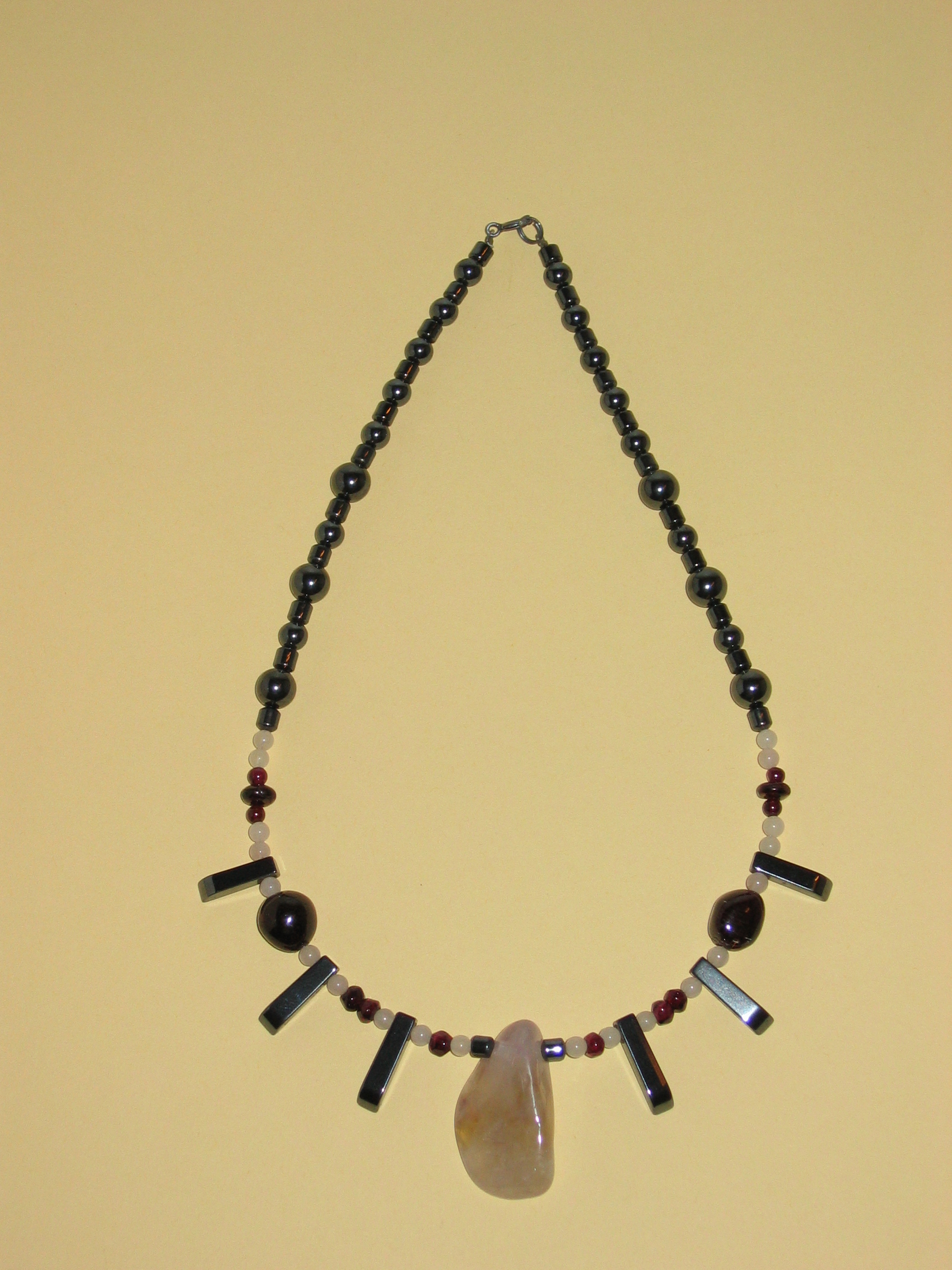 Granat, Rosenquarz, Rhodochrosit, Silber | |