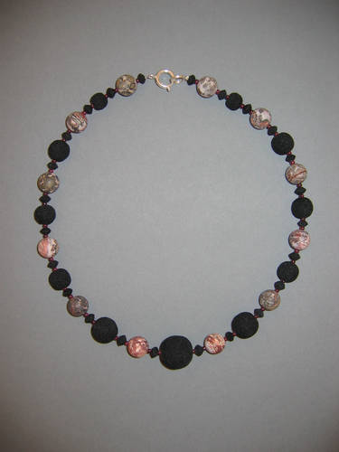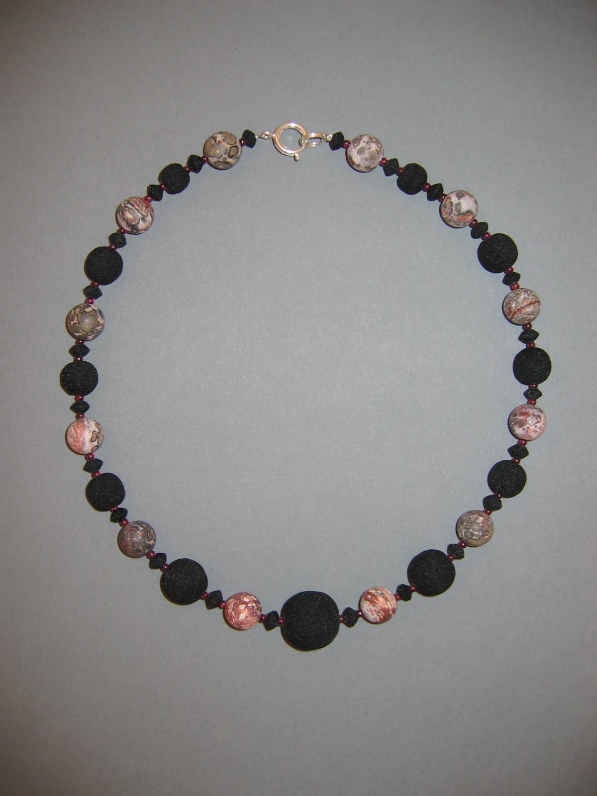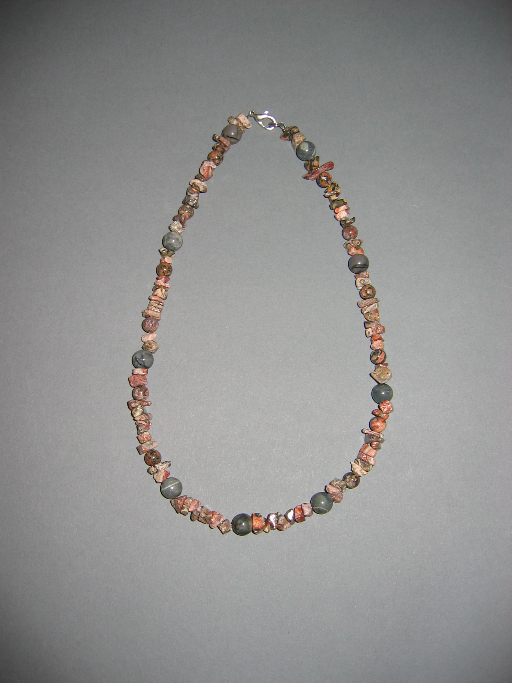 Leopardenjaspis, Rhodochrosit, Süßwasserperlen, Silber | |