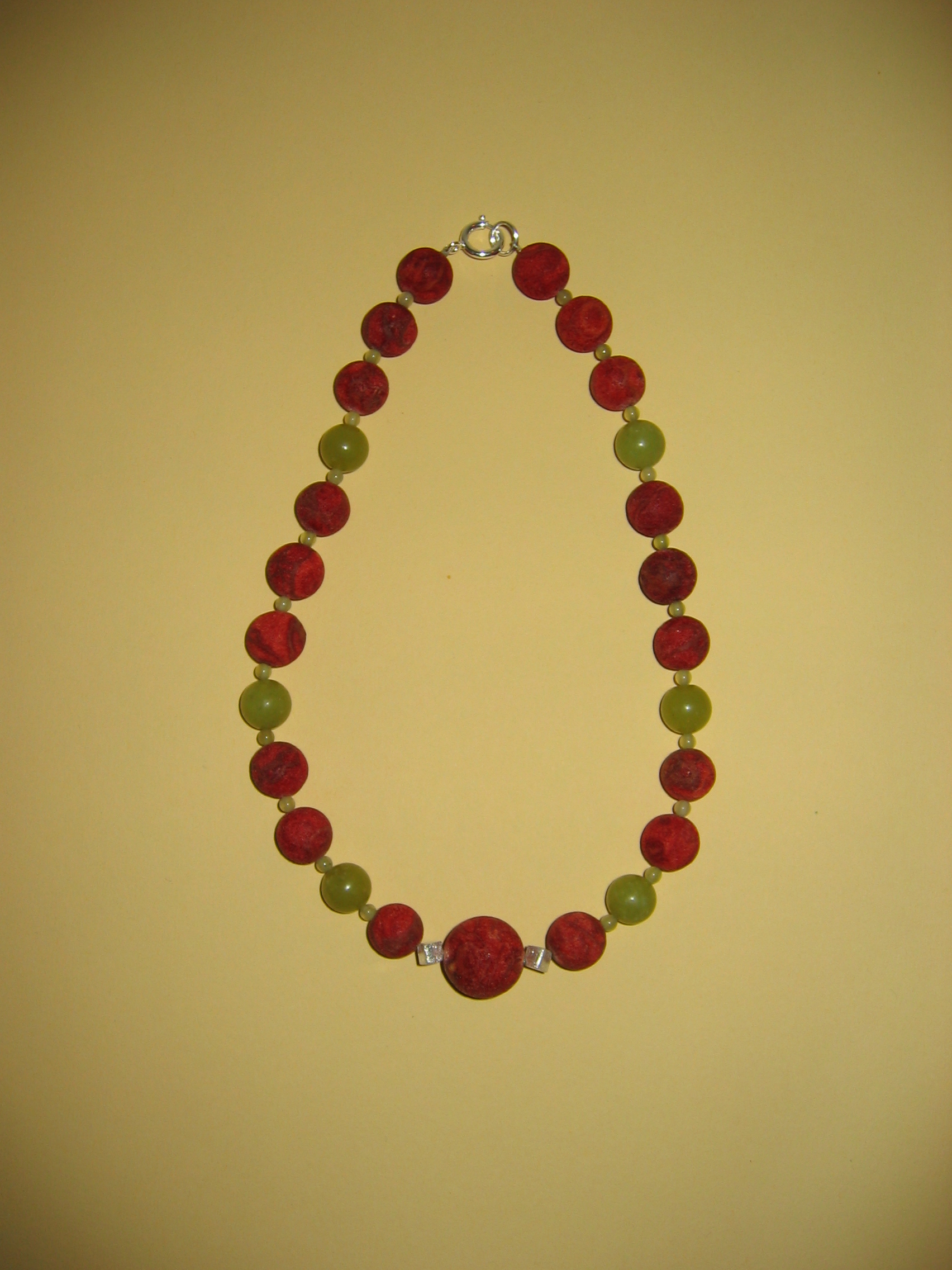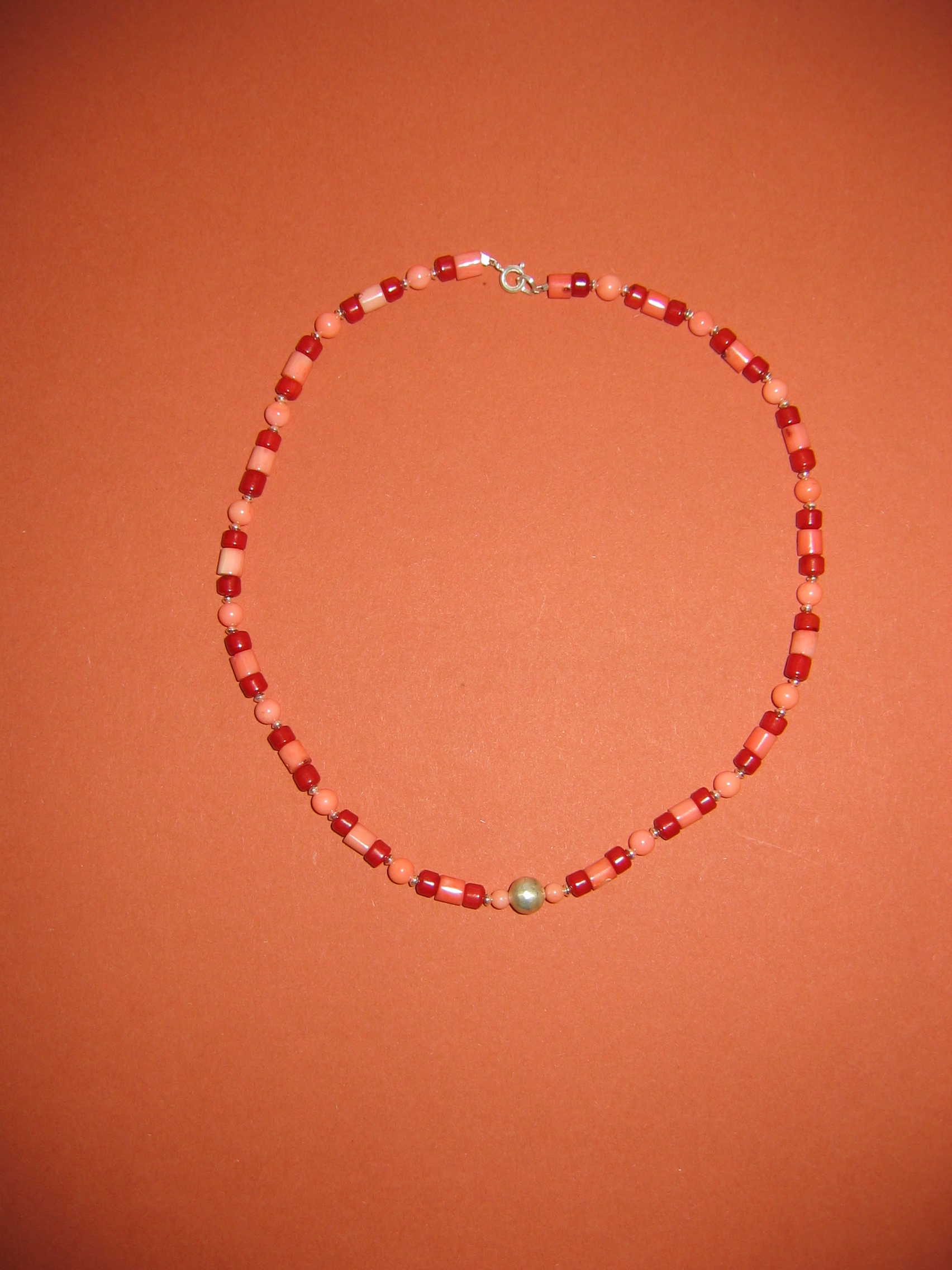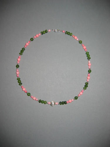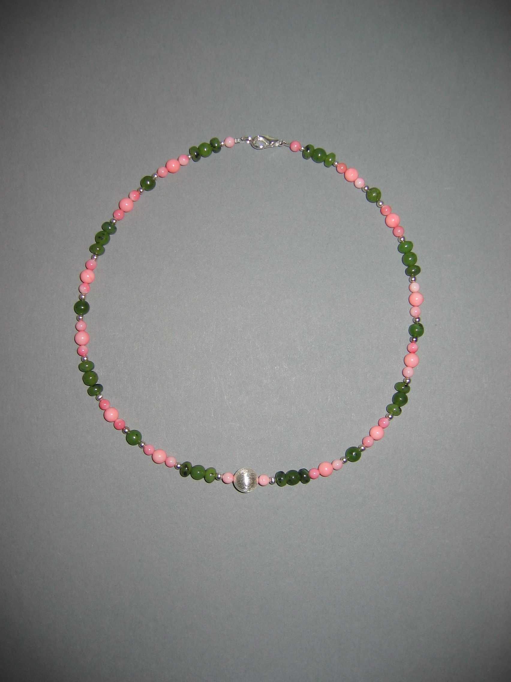 Schaumkoralle rot matt, Jade grün, Silberwürfel, Peridot | |