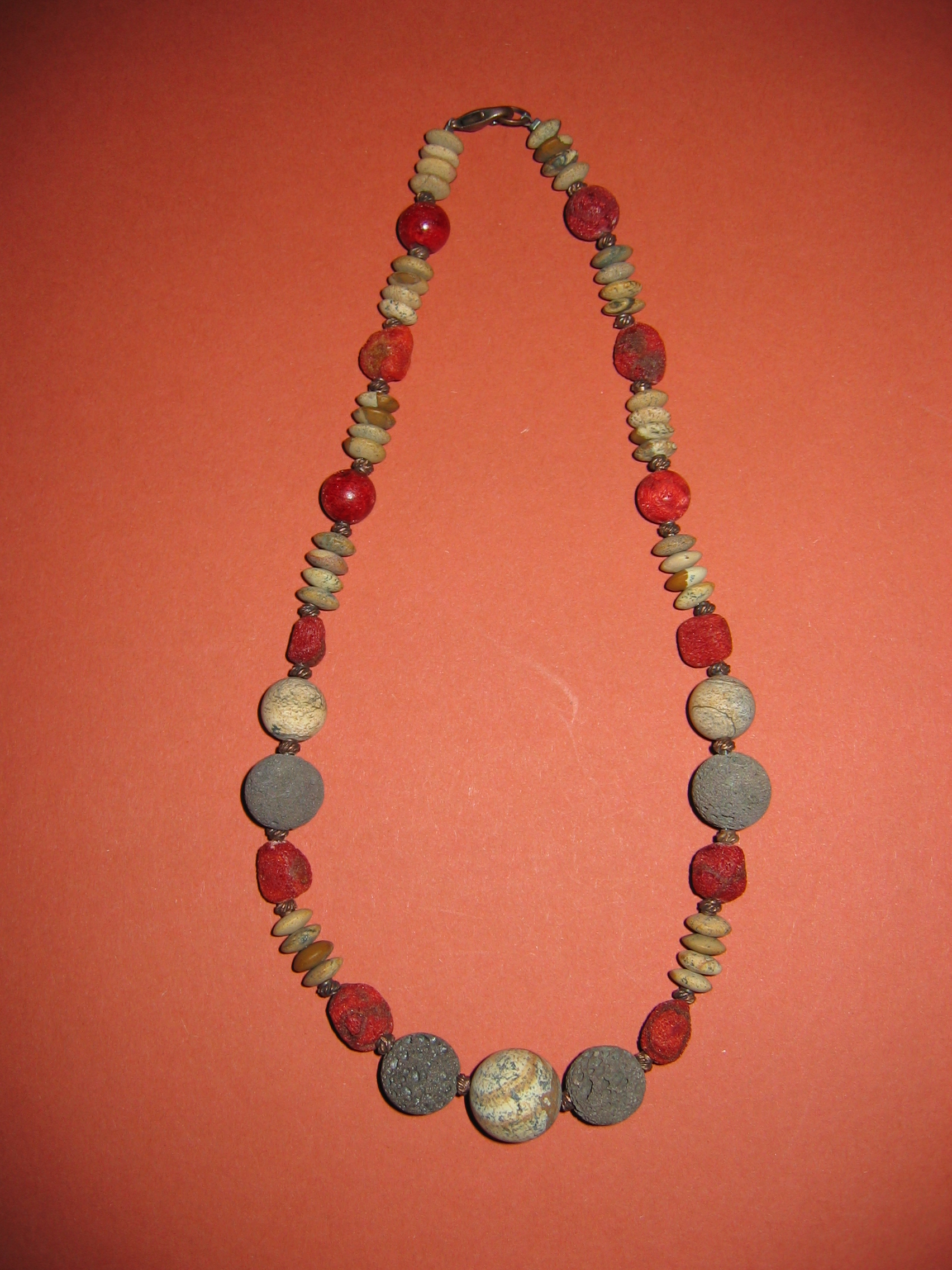 Hämatit, Perlmutt, Muschelkoralle, Jaspis rot, Lapislazuli, Jade gelb, Baumachat | |