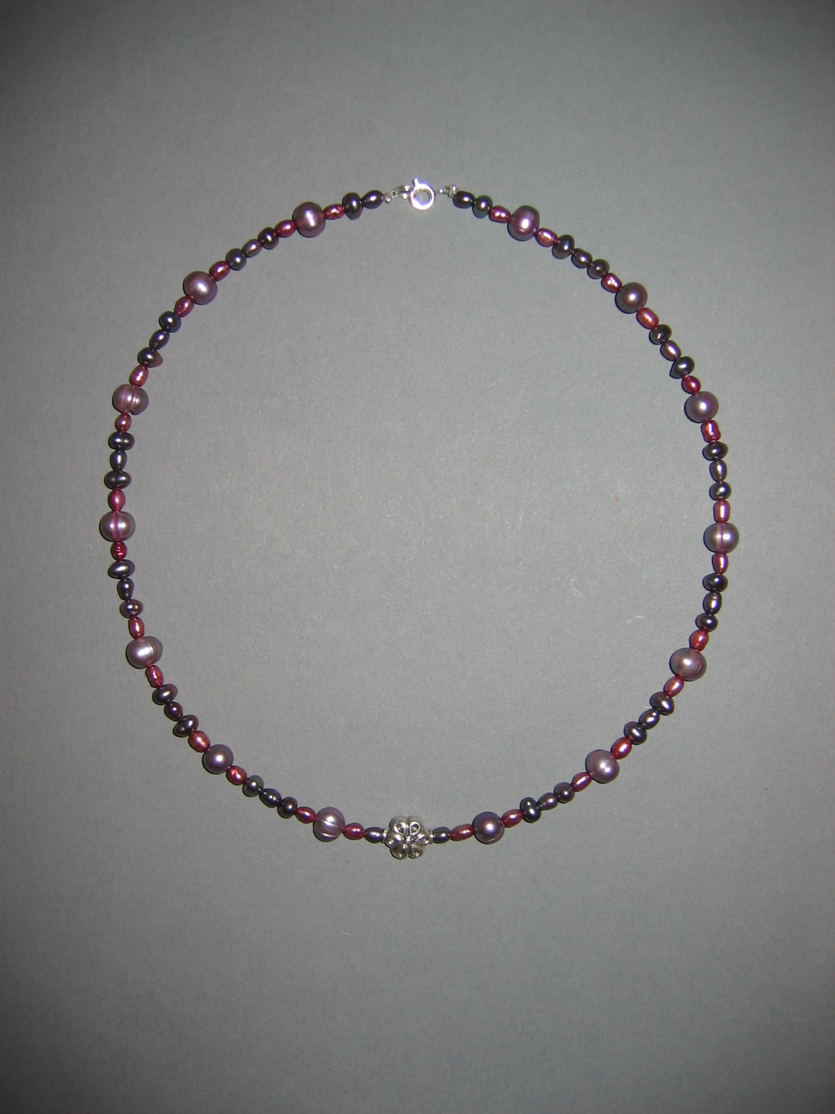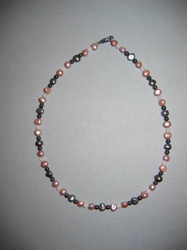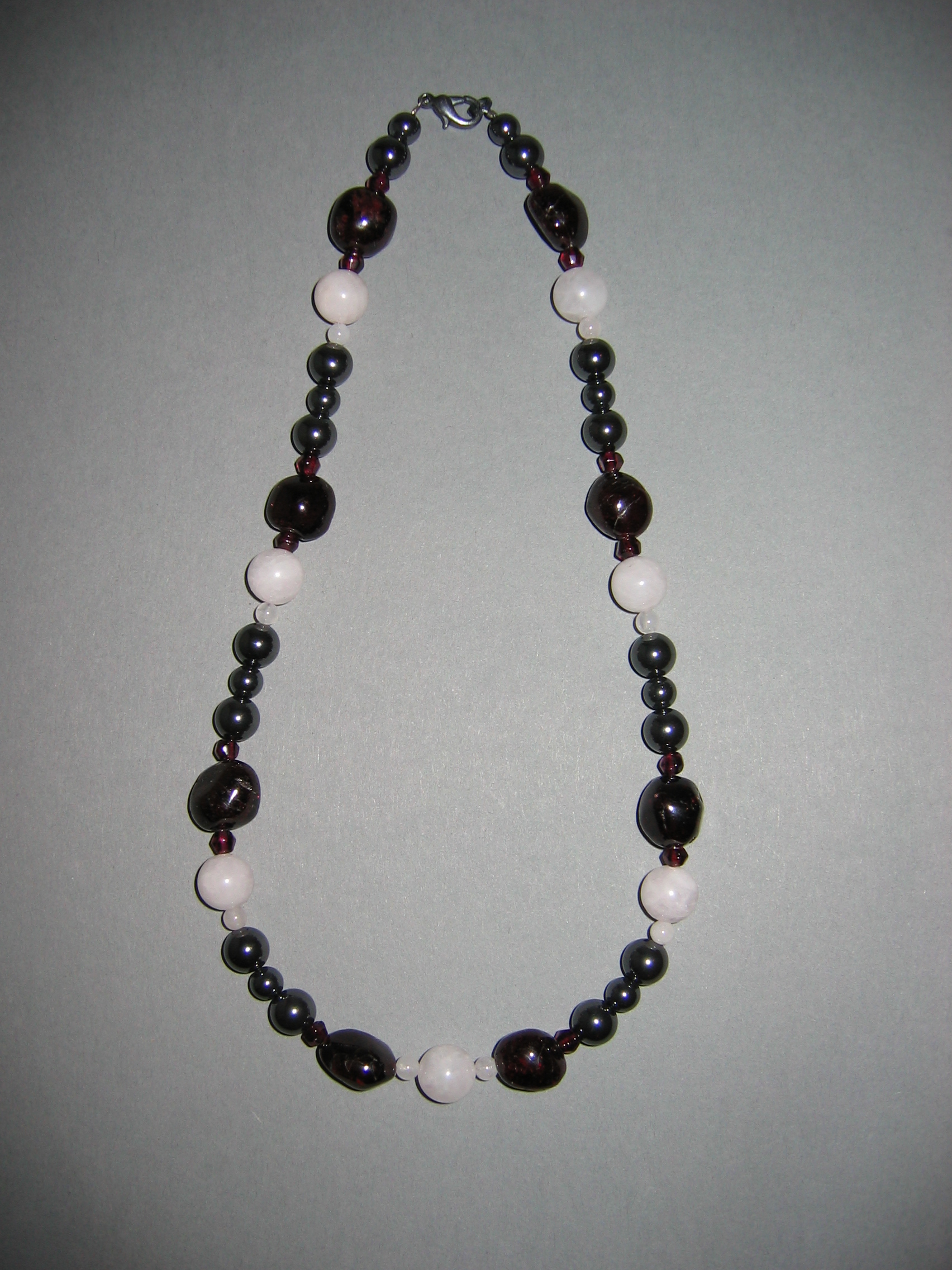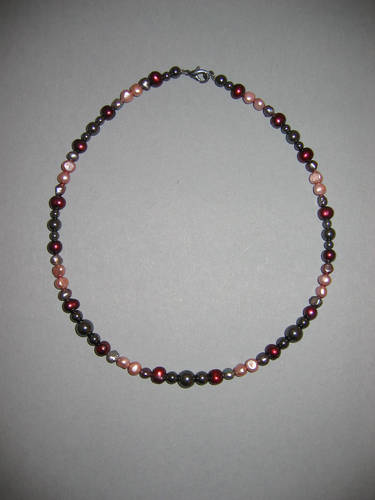 Süßwasserperlen, Granat, Rosenquarz, Hämatit, Metallblume | |
