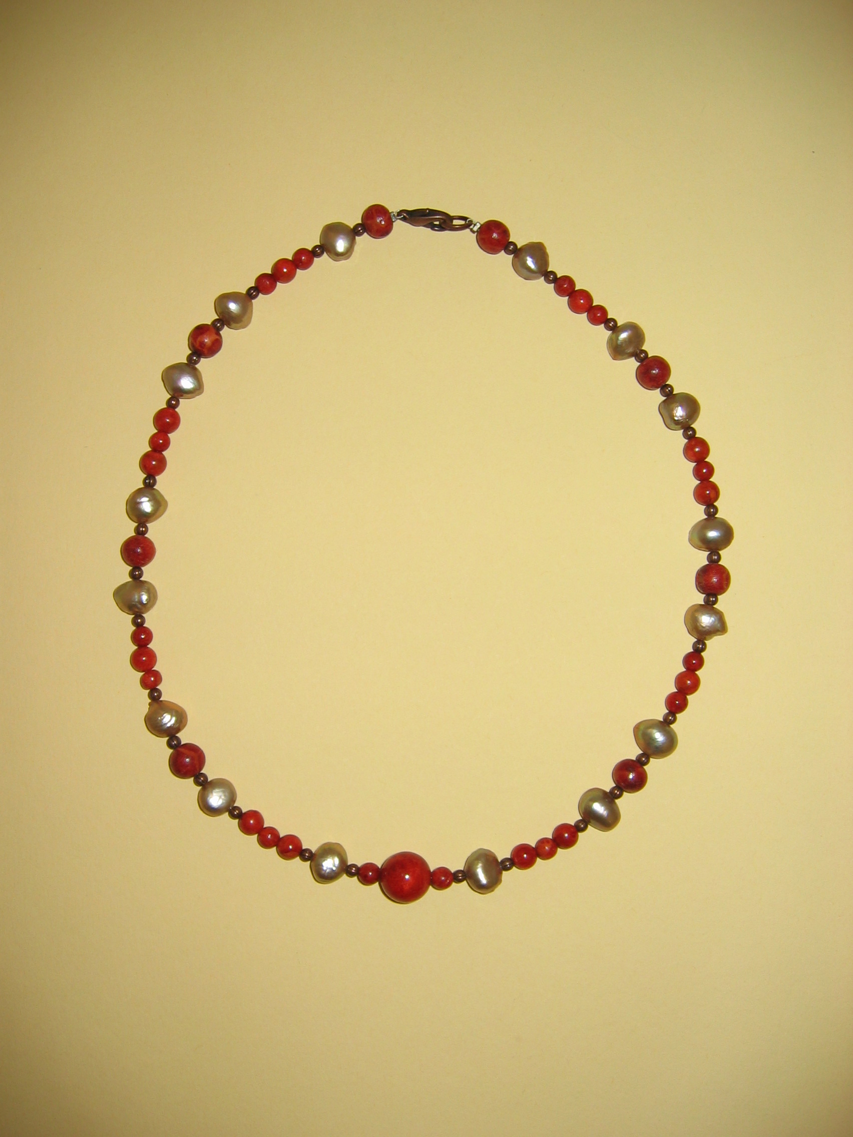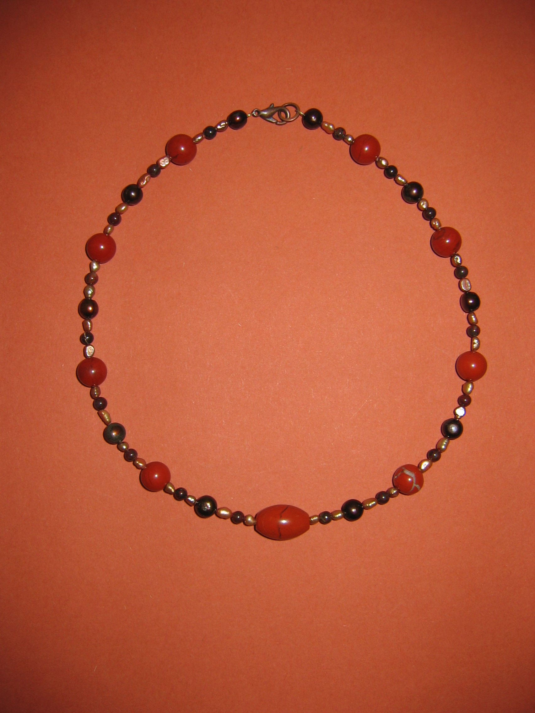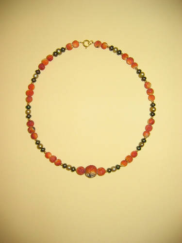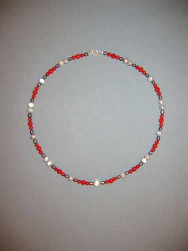 Schaumkoralle rot, Hämatit, Süßwasserperlen | |
