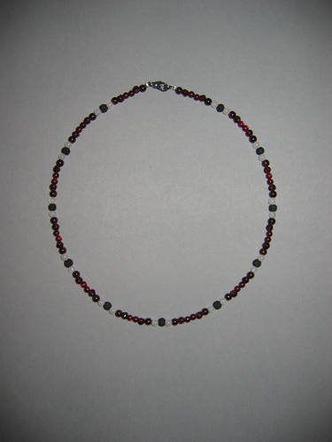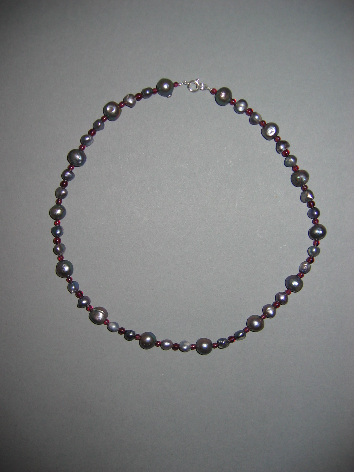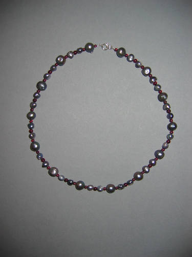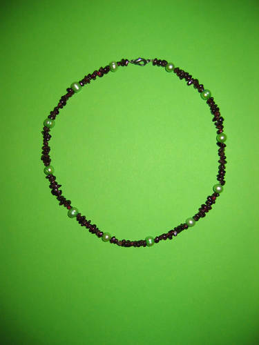 Süßwasserperlen, Aventurin grün, Granat, Silber | |
