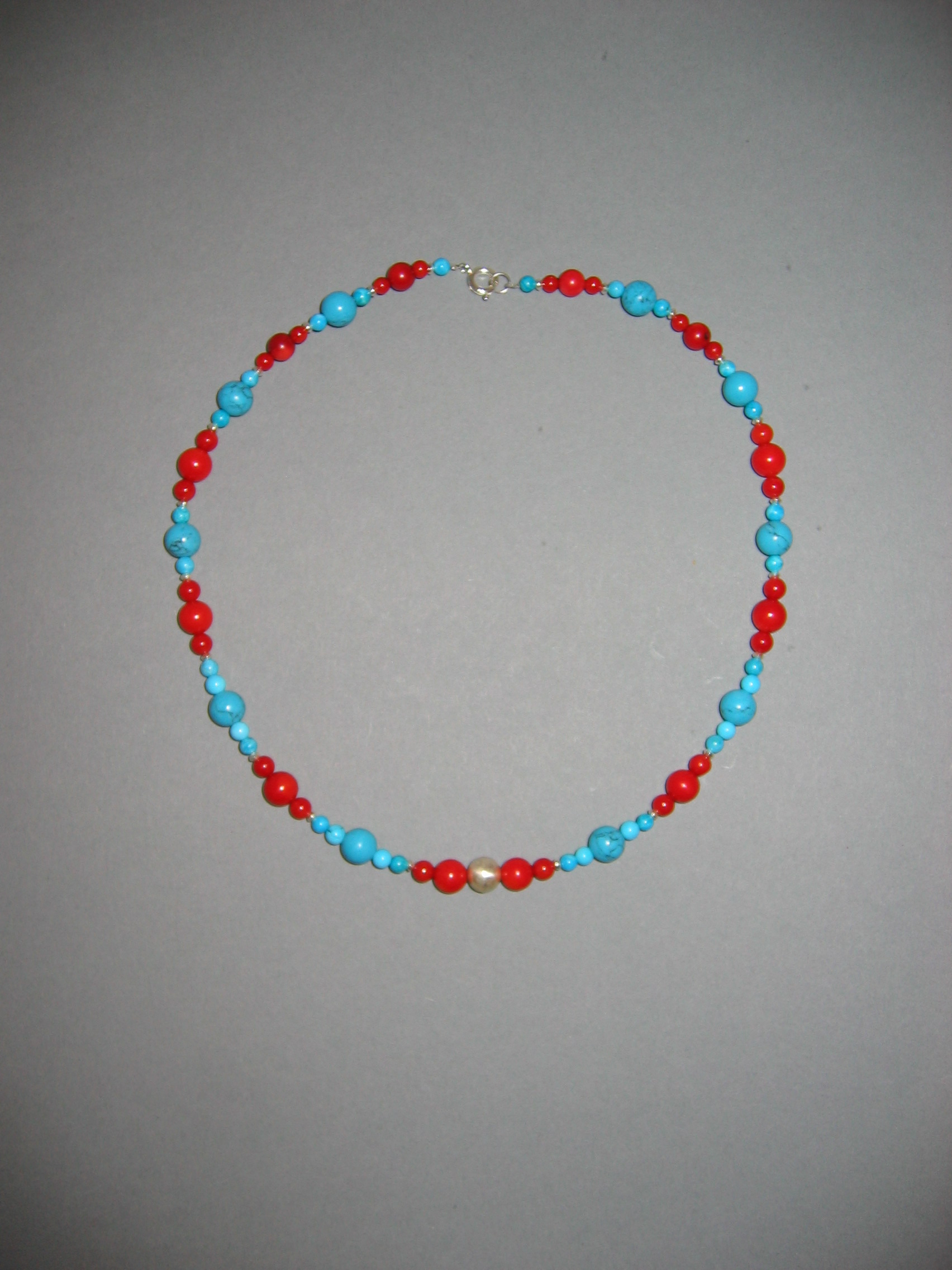 Schaumkoralle rot, Schaumkoralle blau matt, Lapislazuli, Silber | |