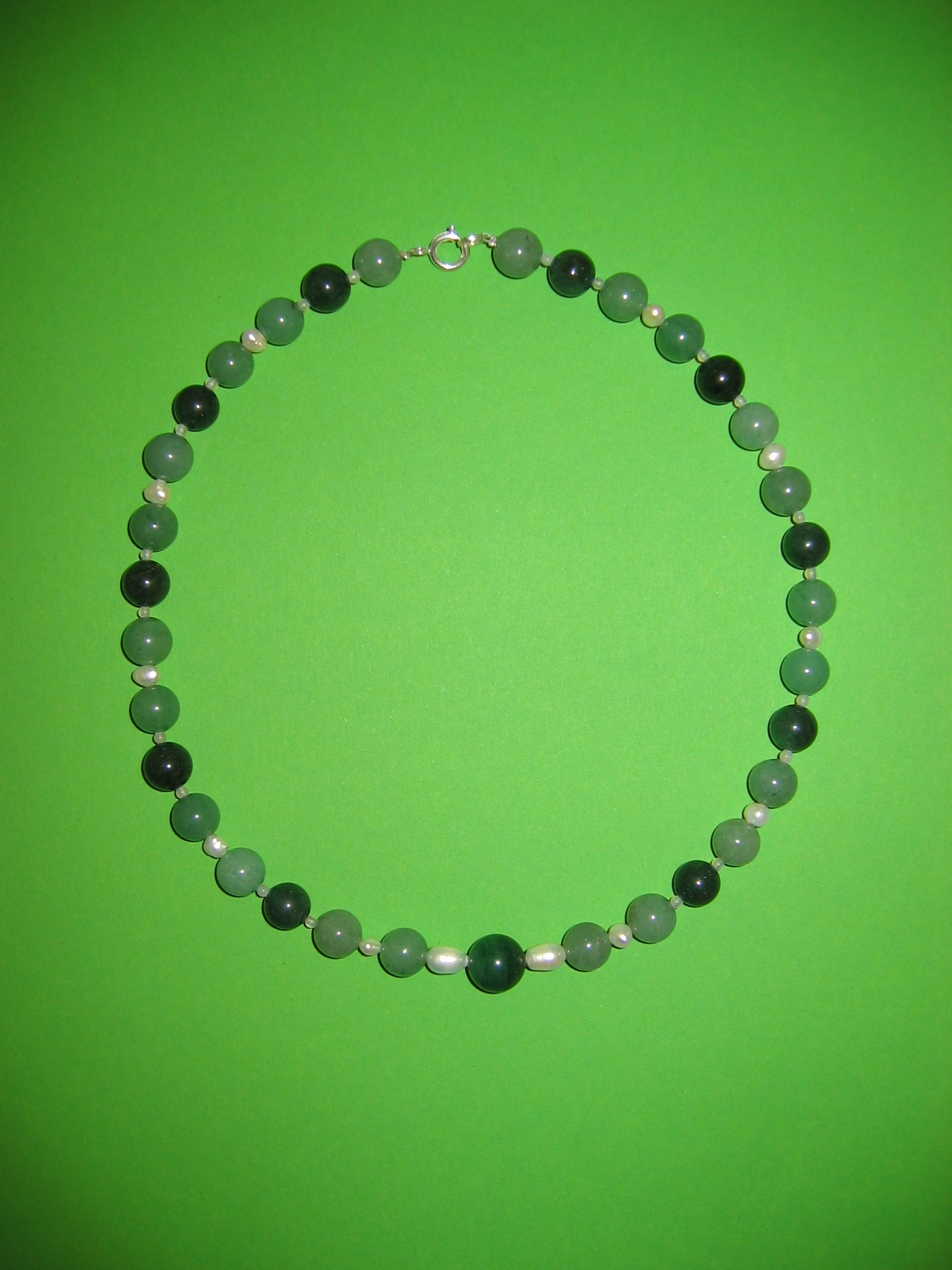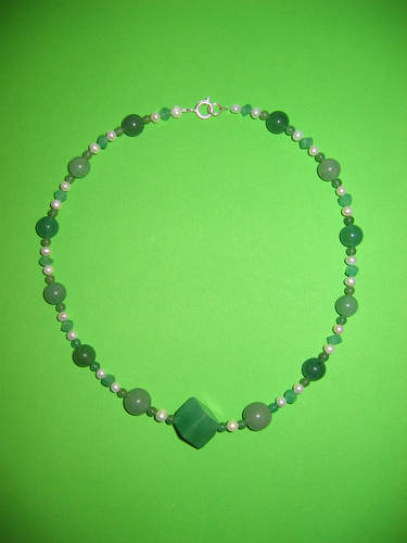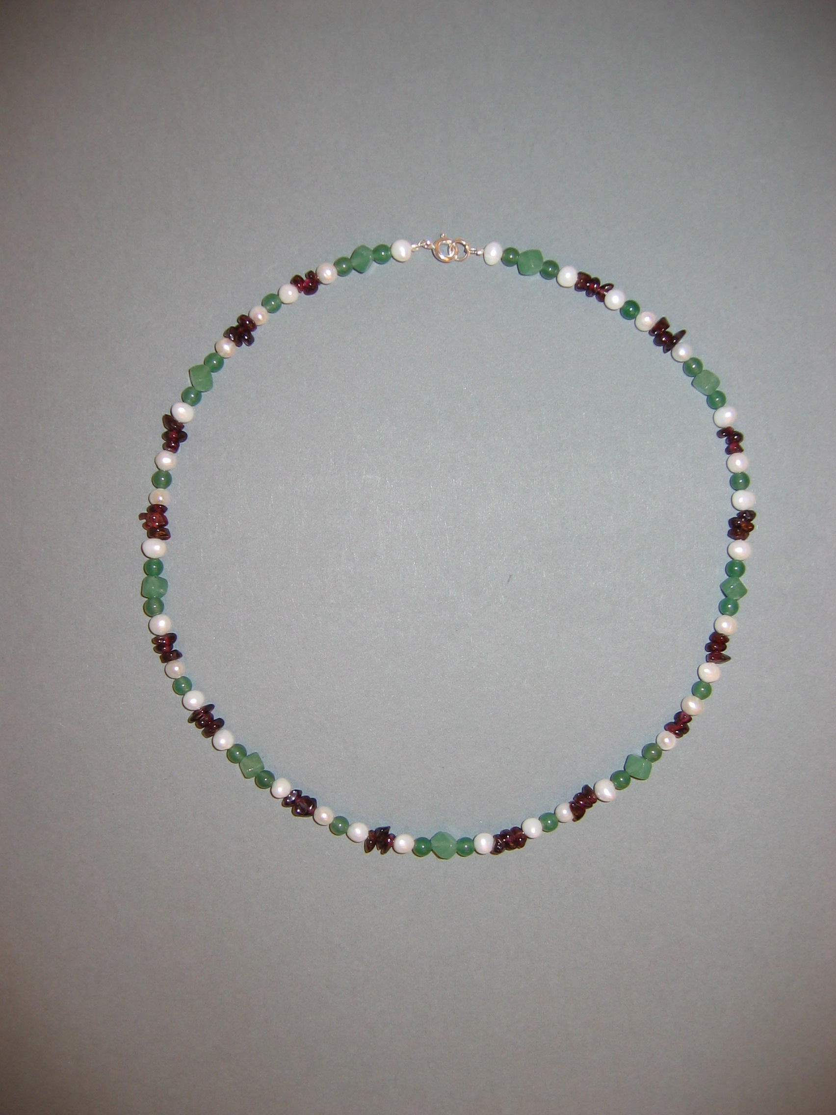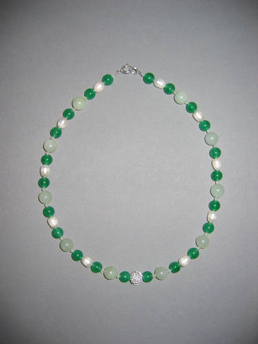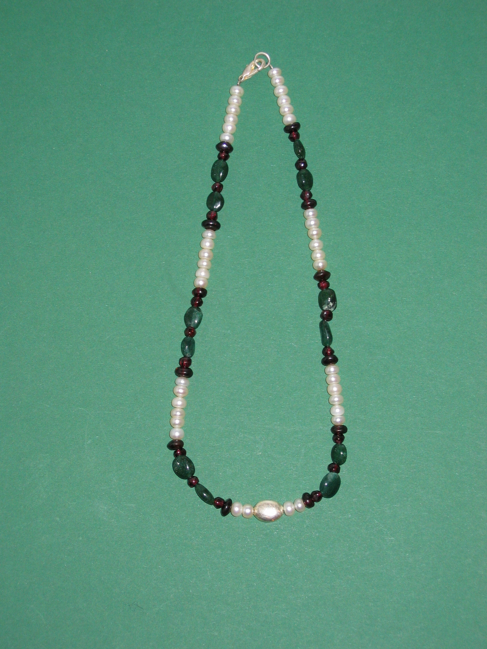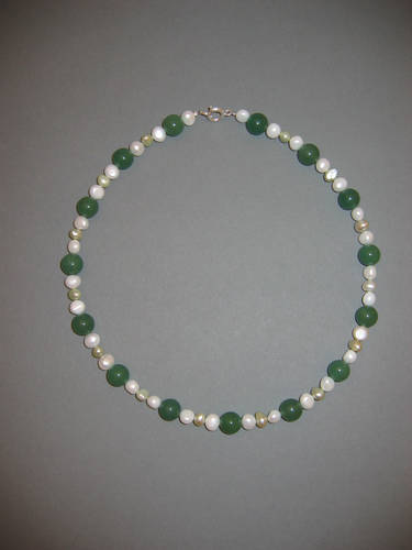 Süßwasserperlen, Aventurin grün, Granat, Silber | |