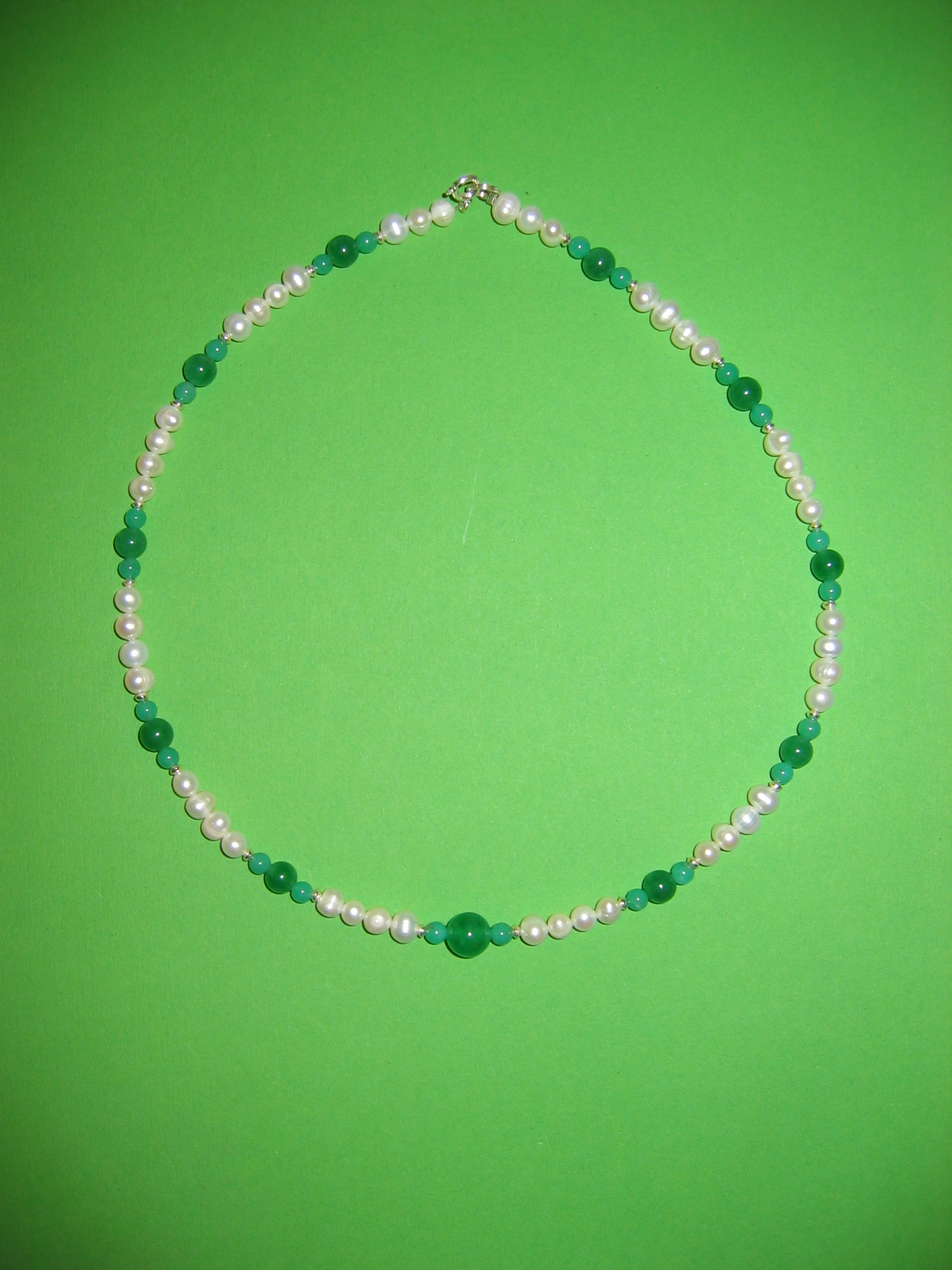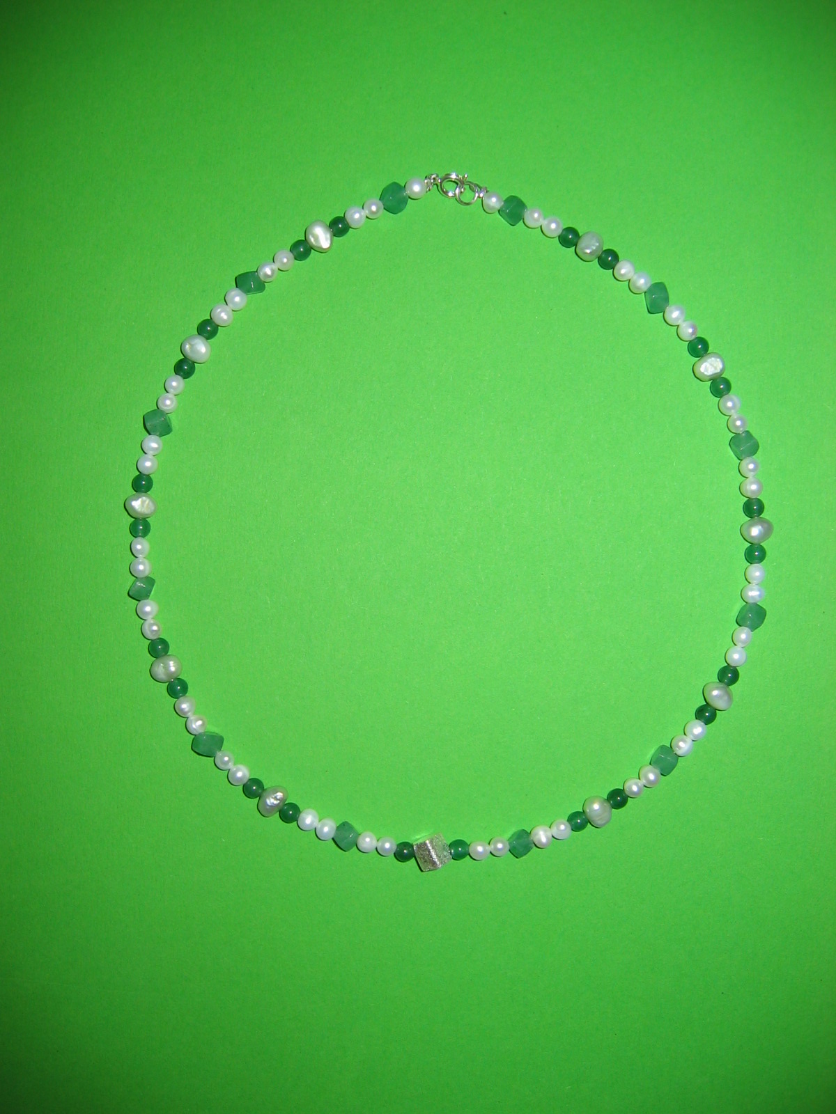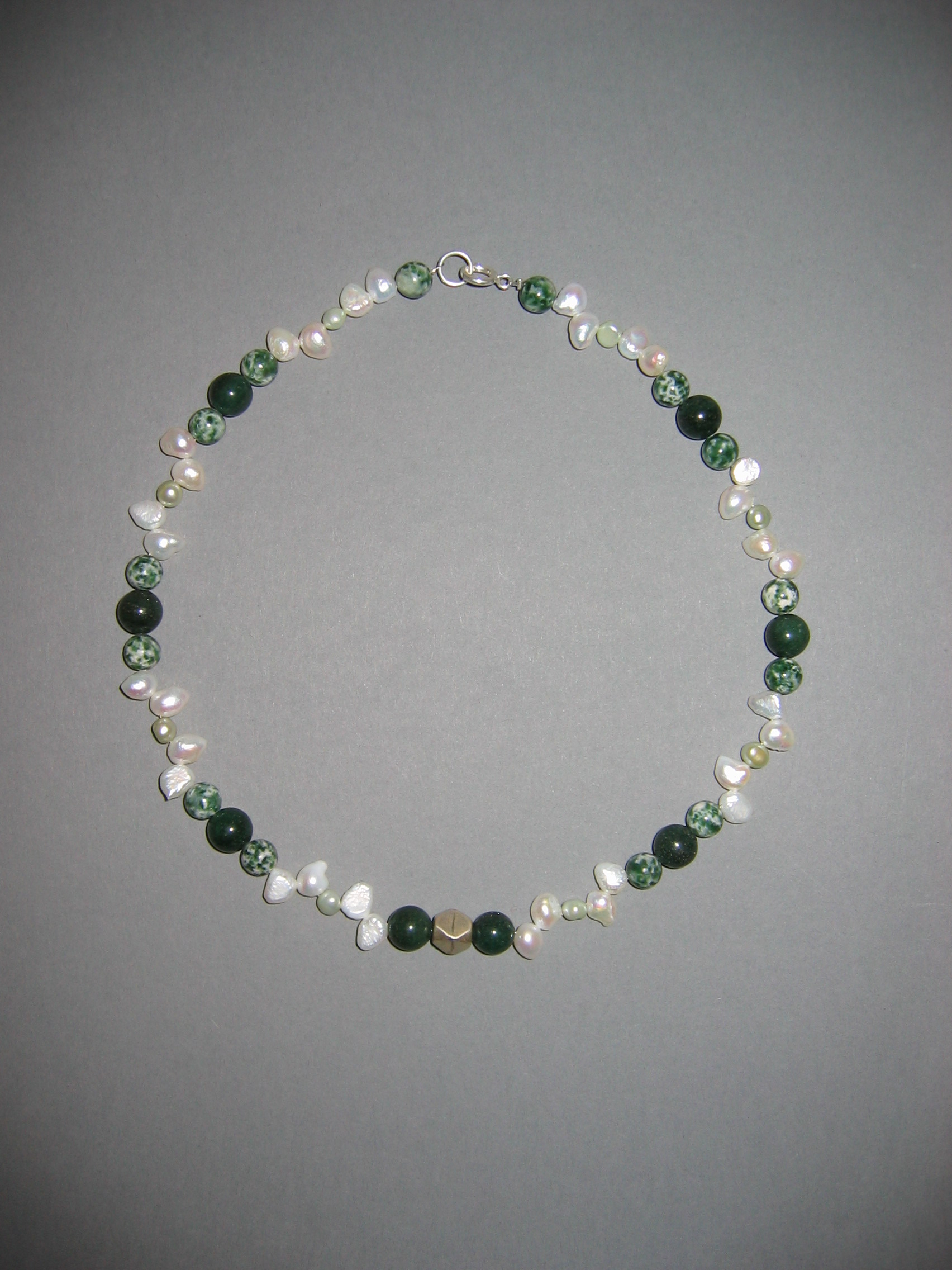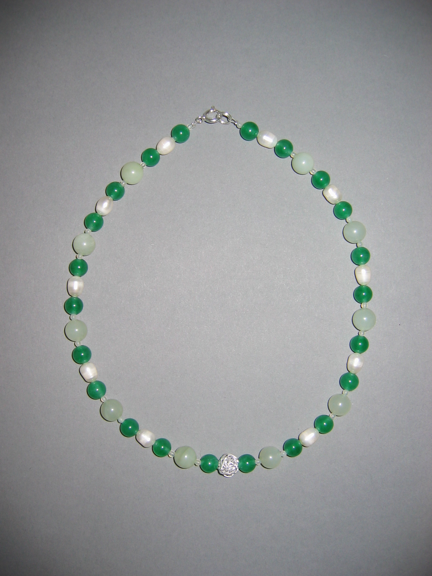 Süßwasserperlen, Aventurin grün, Granat, Silber | |