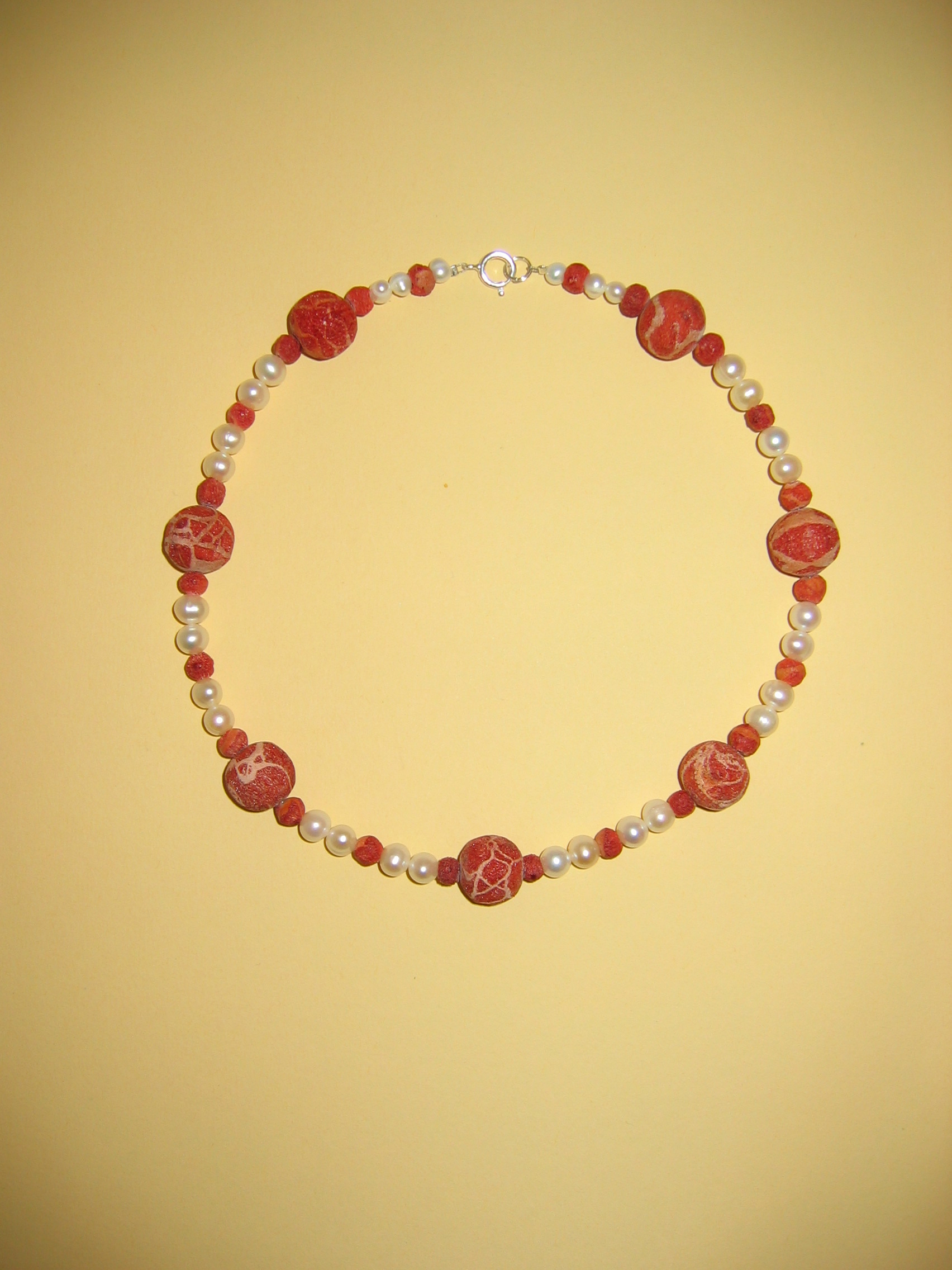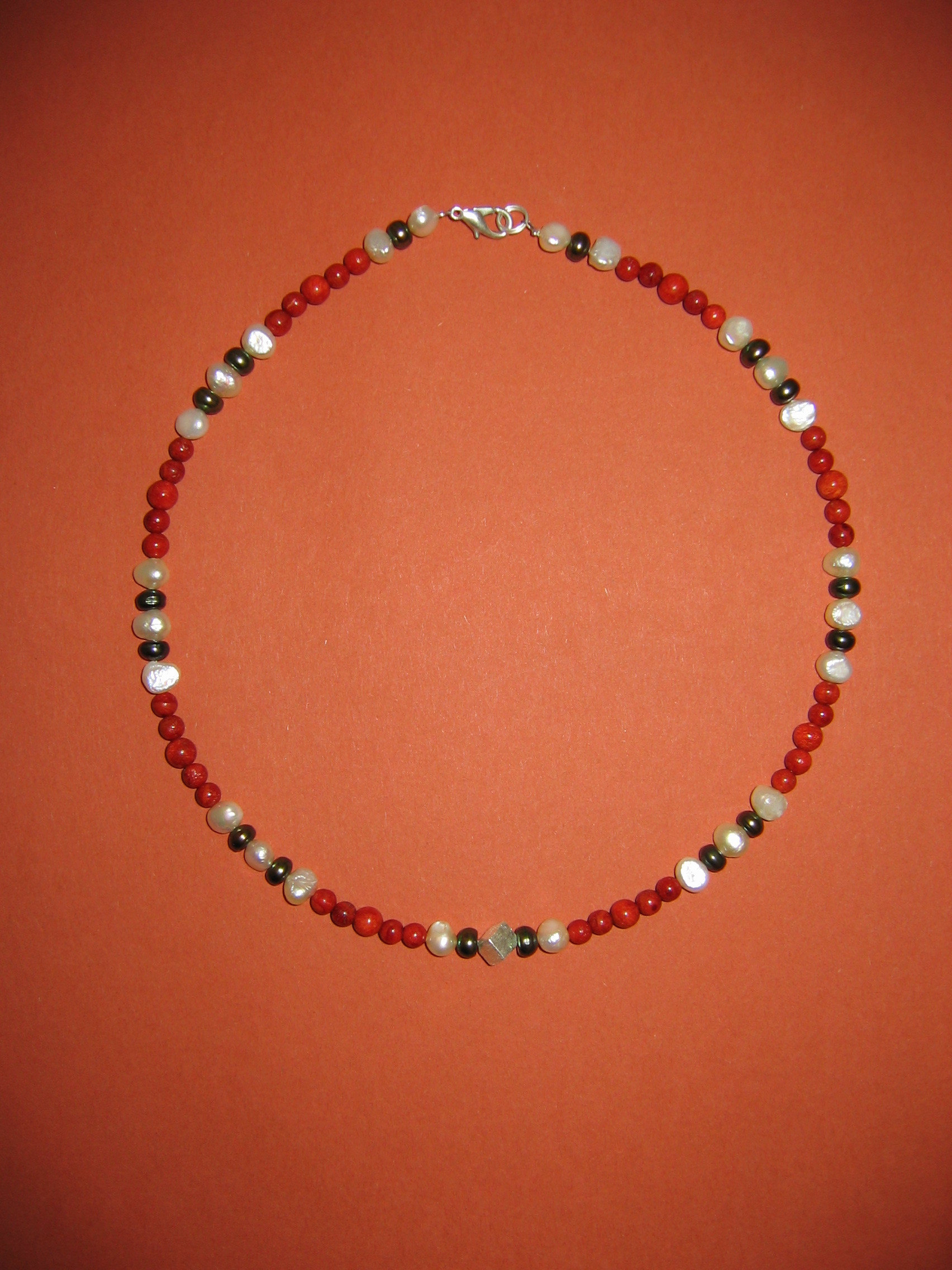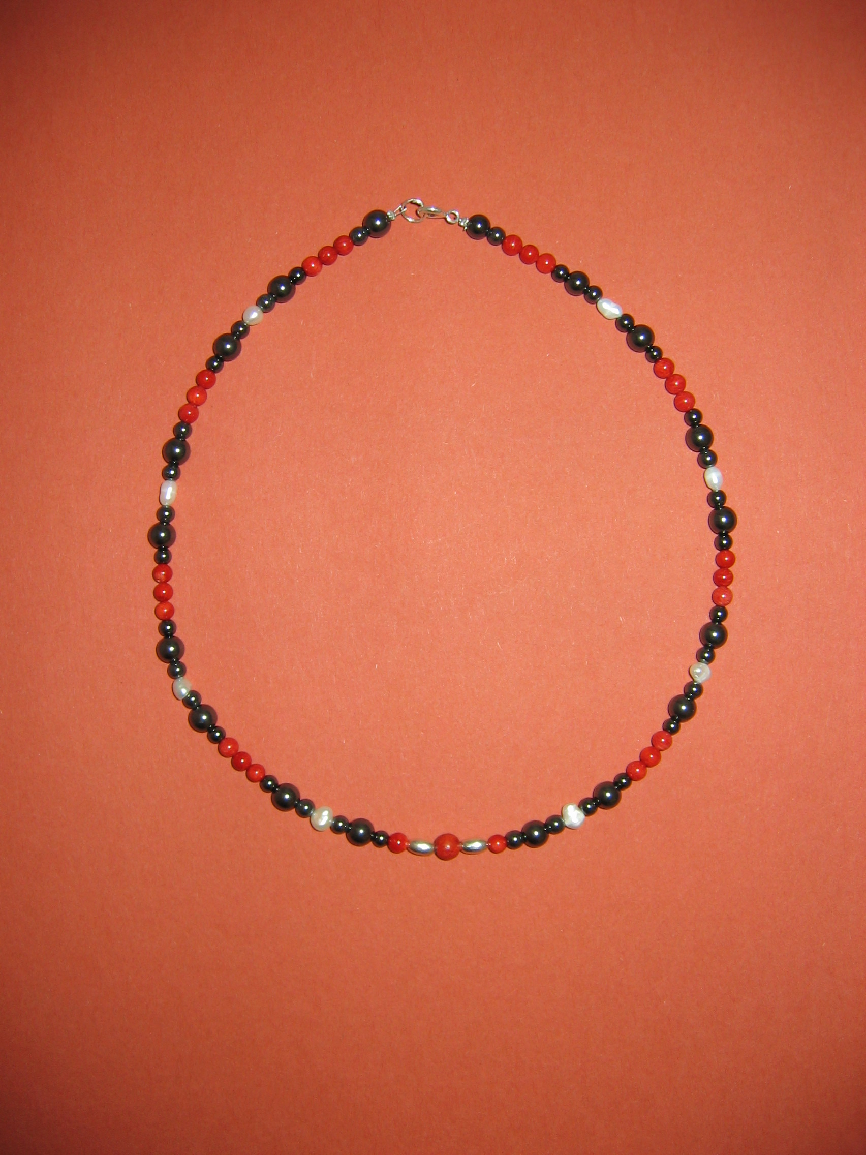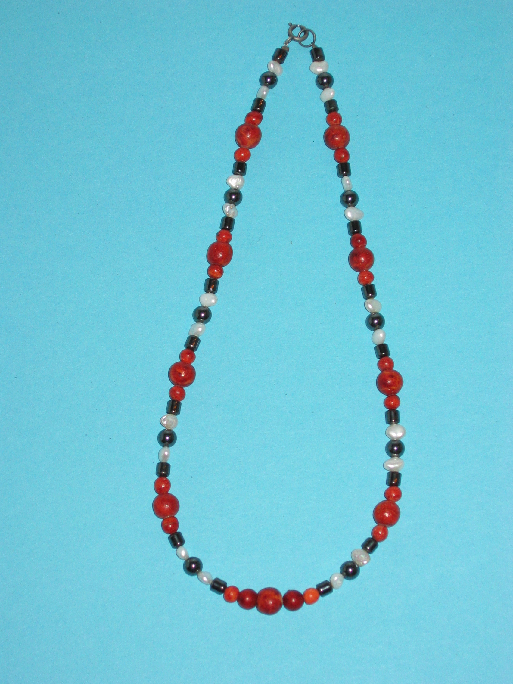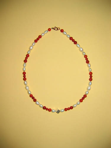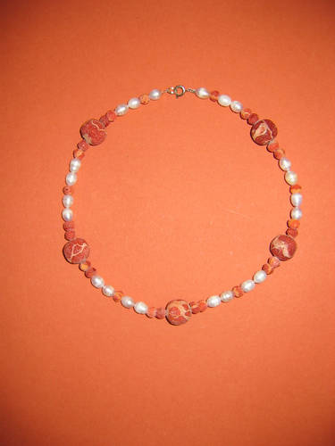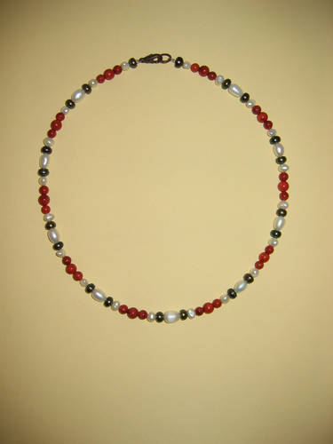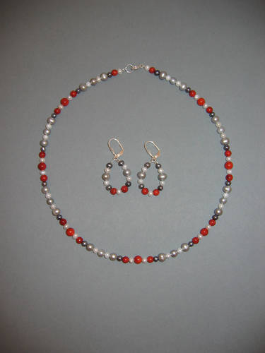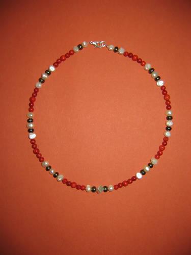 Schaumkoralle rot, Hämatit, Süßwasserperlen | |
