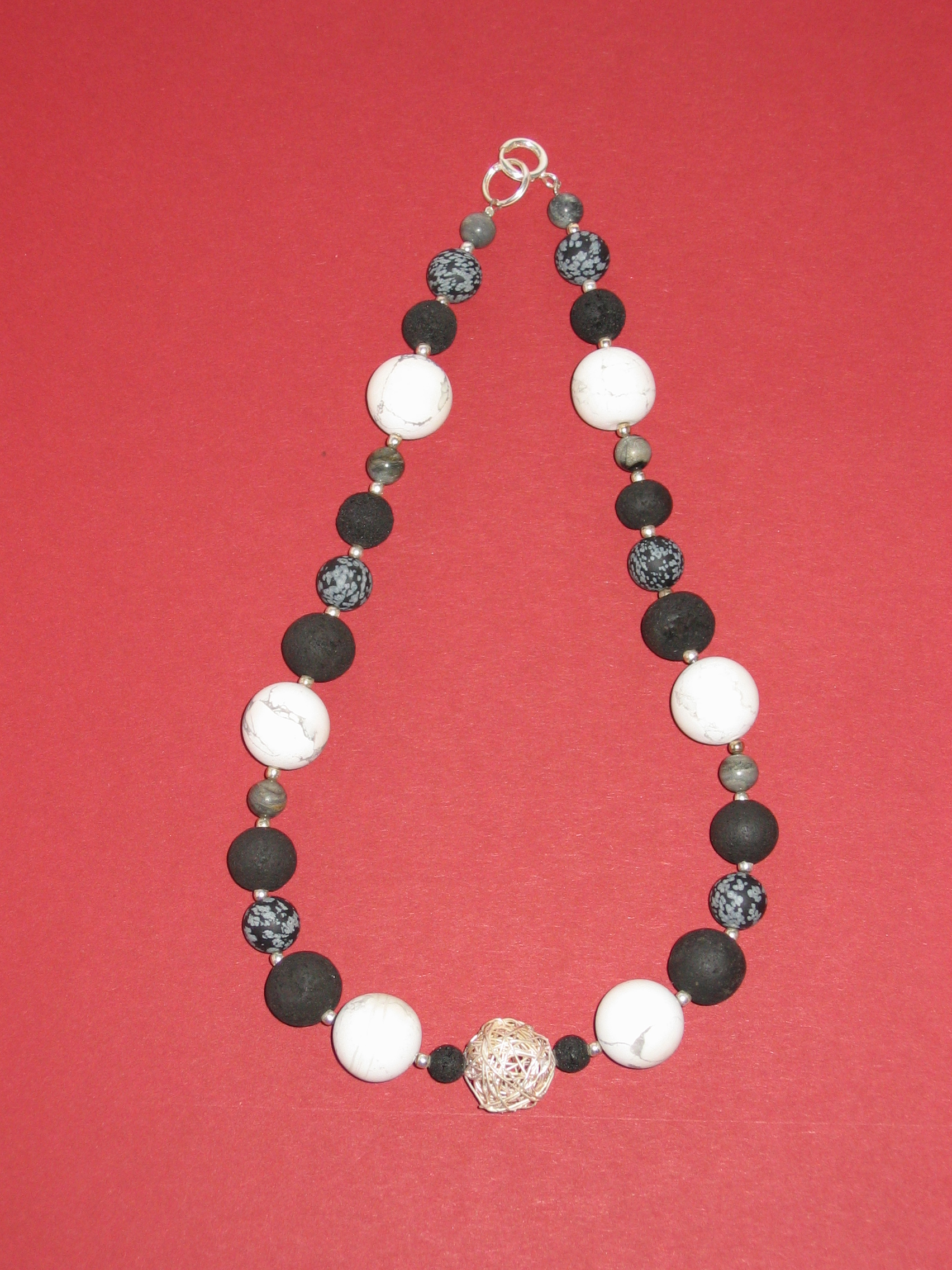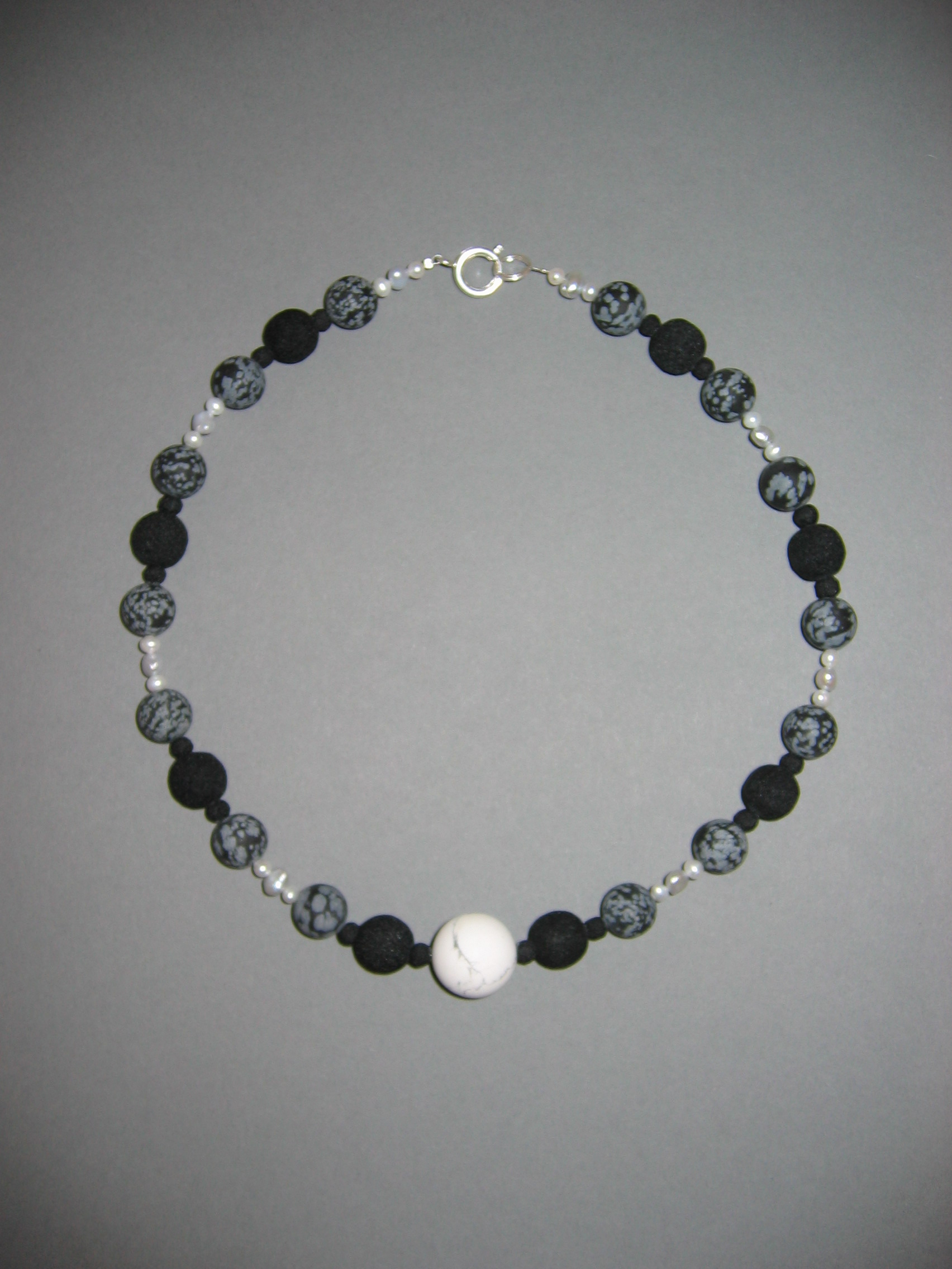 Howlith matt, Lava, Schneeflockenobsidian, Picassojaspis, Silber | |