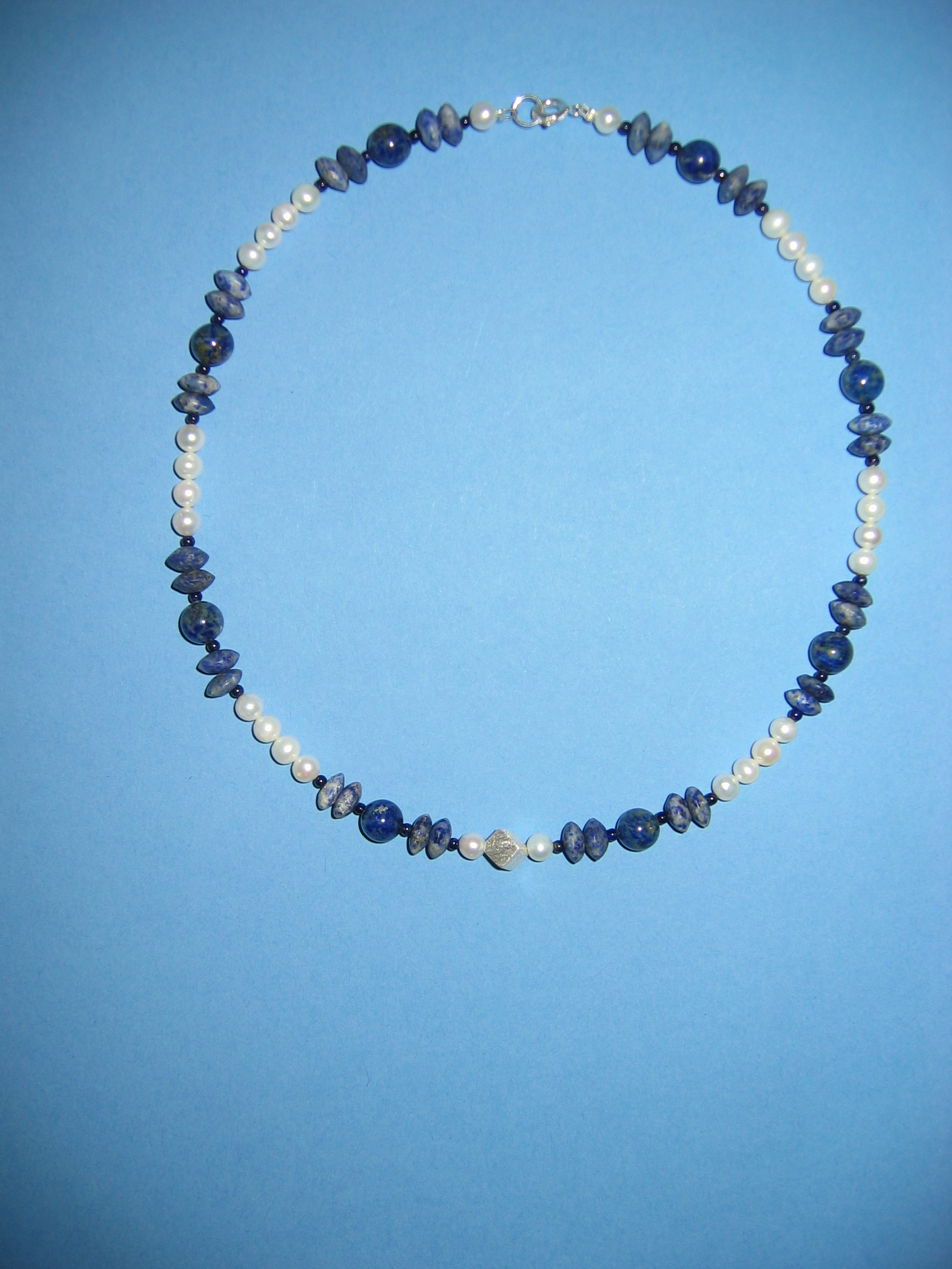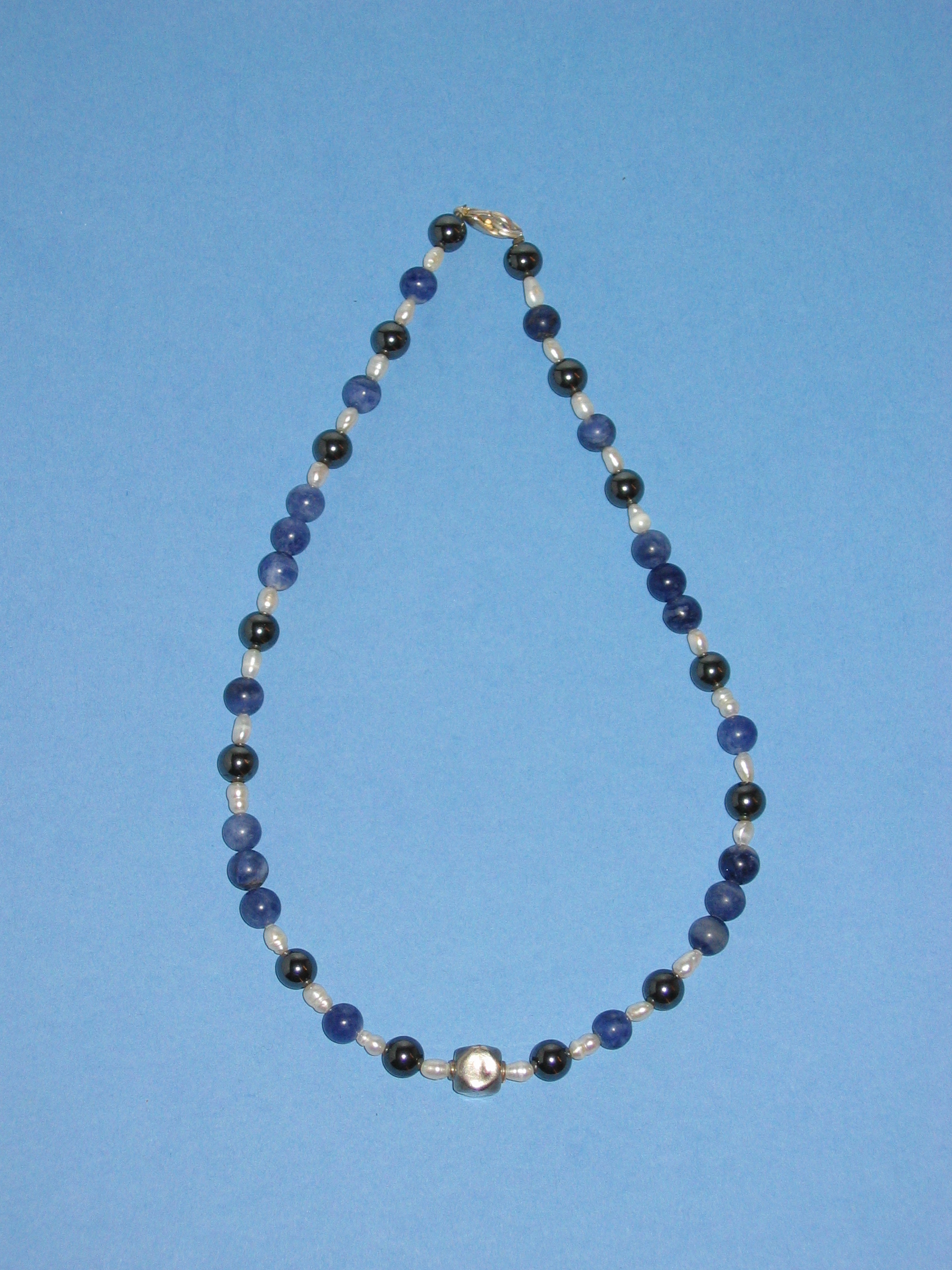 Süßwasserperlen, Hämatit, Silber, Sodalith | |