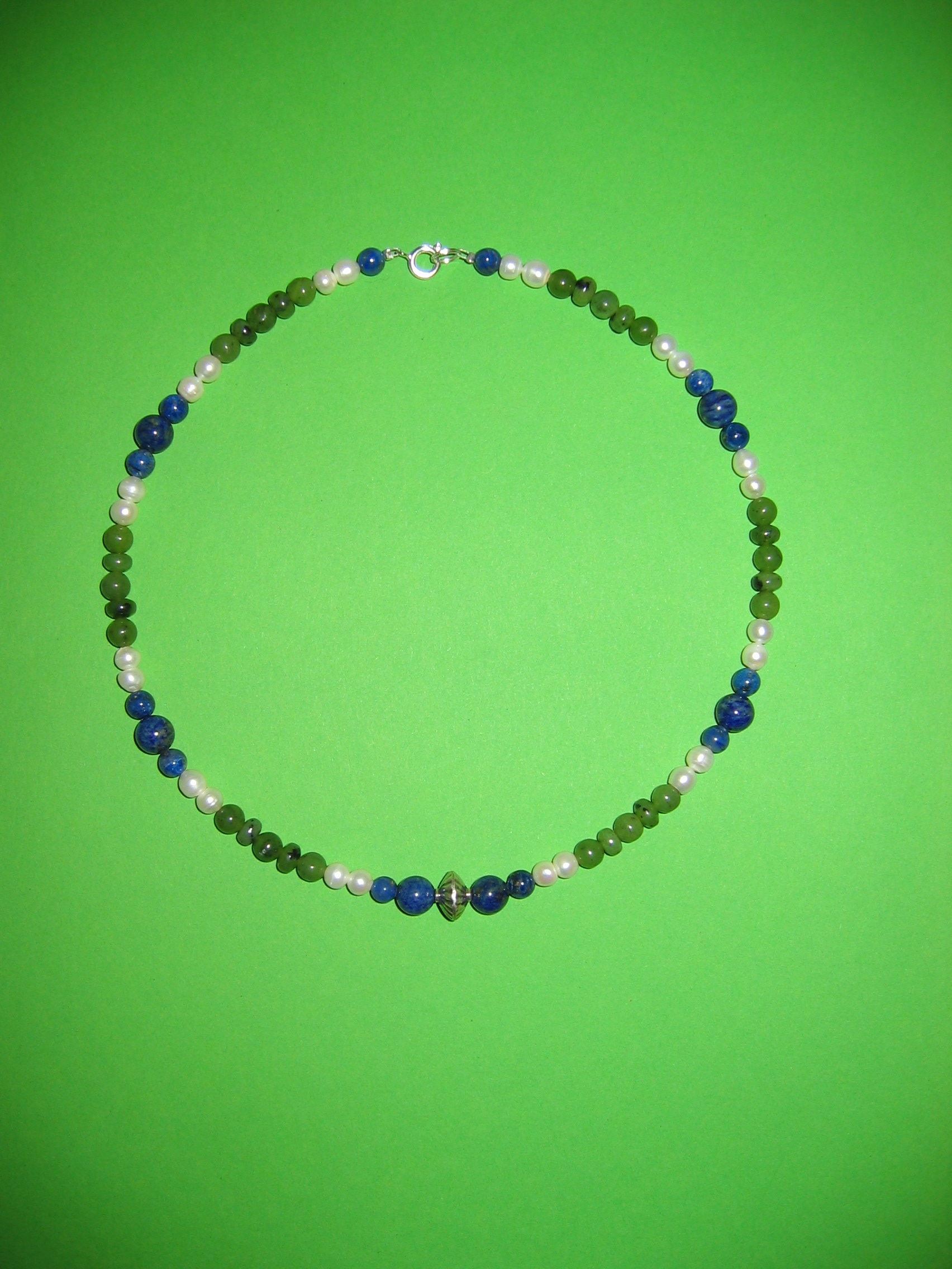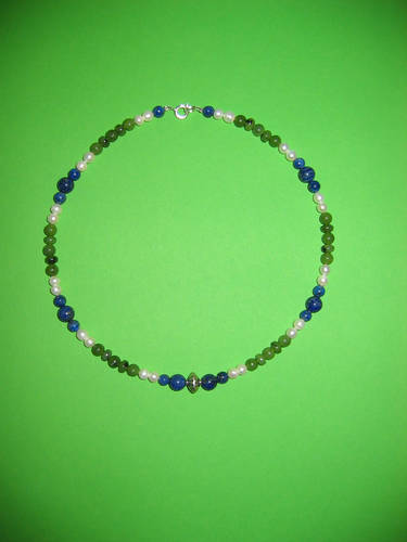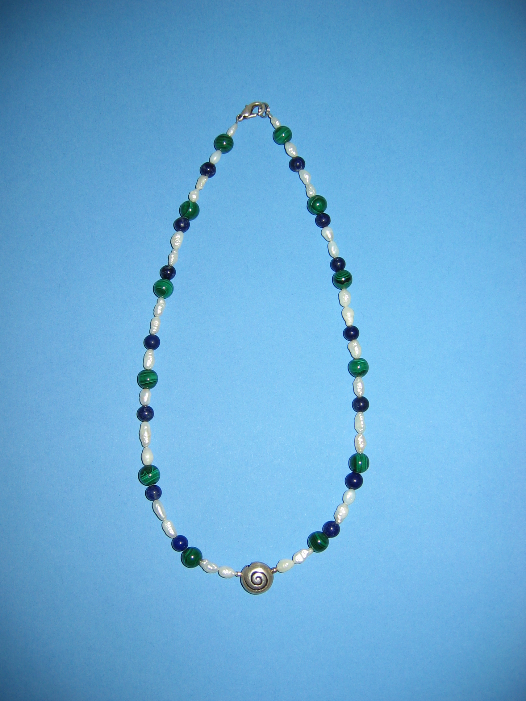 Süßwasserperlen, Lapislazuli, Malachit, Silber | |