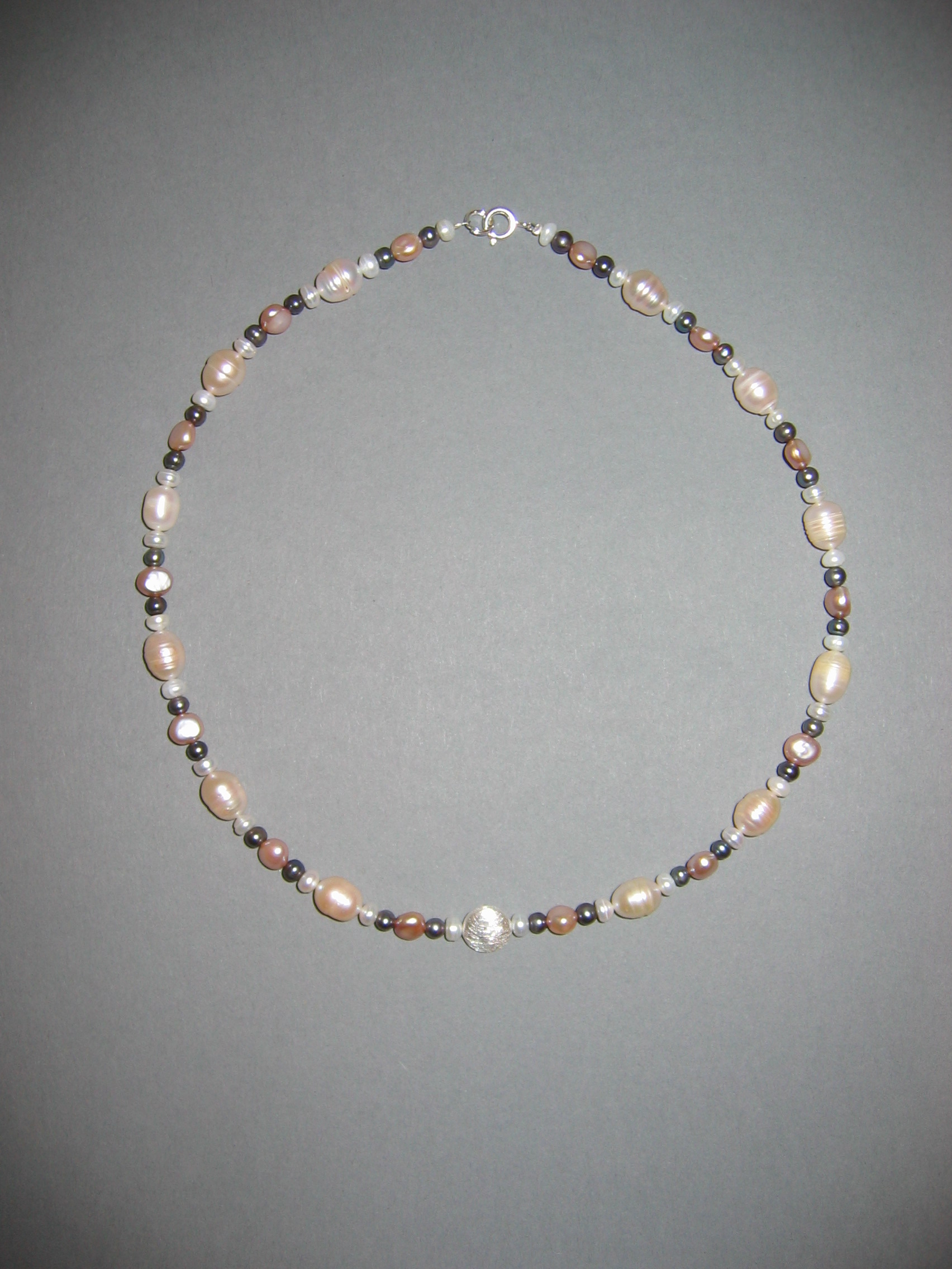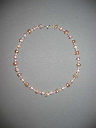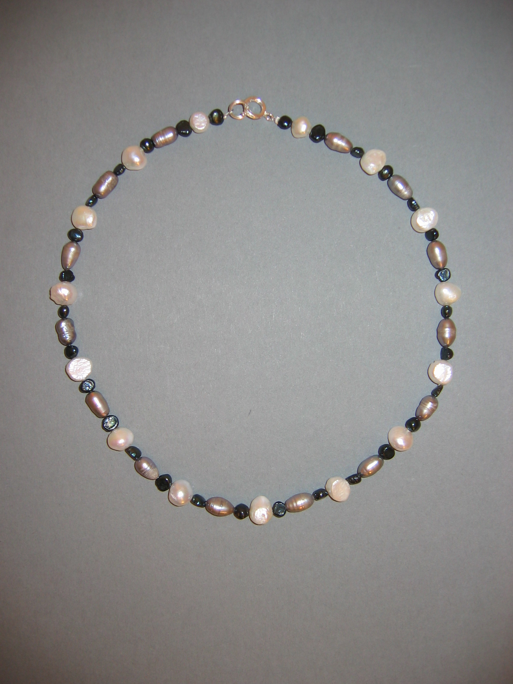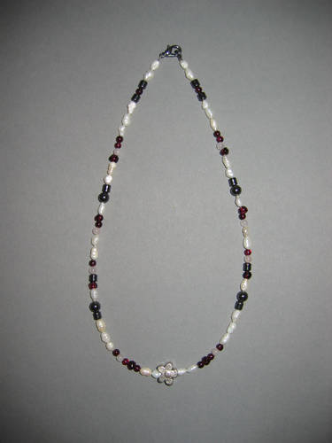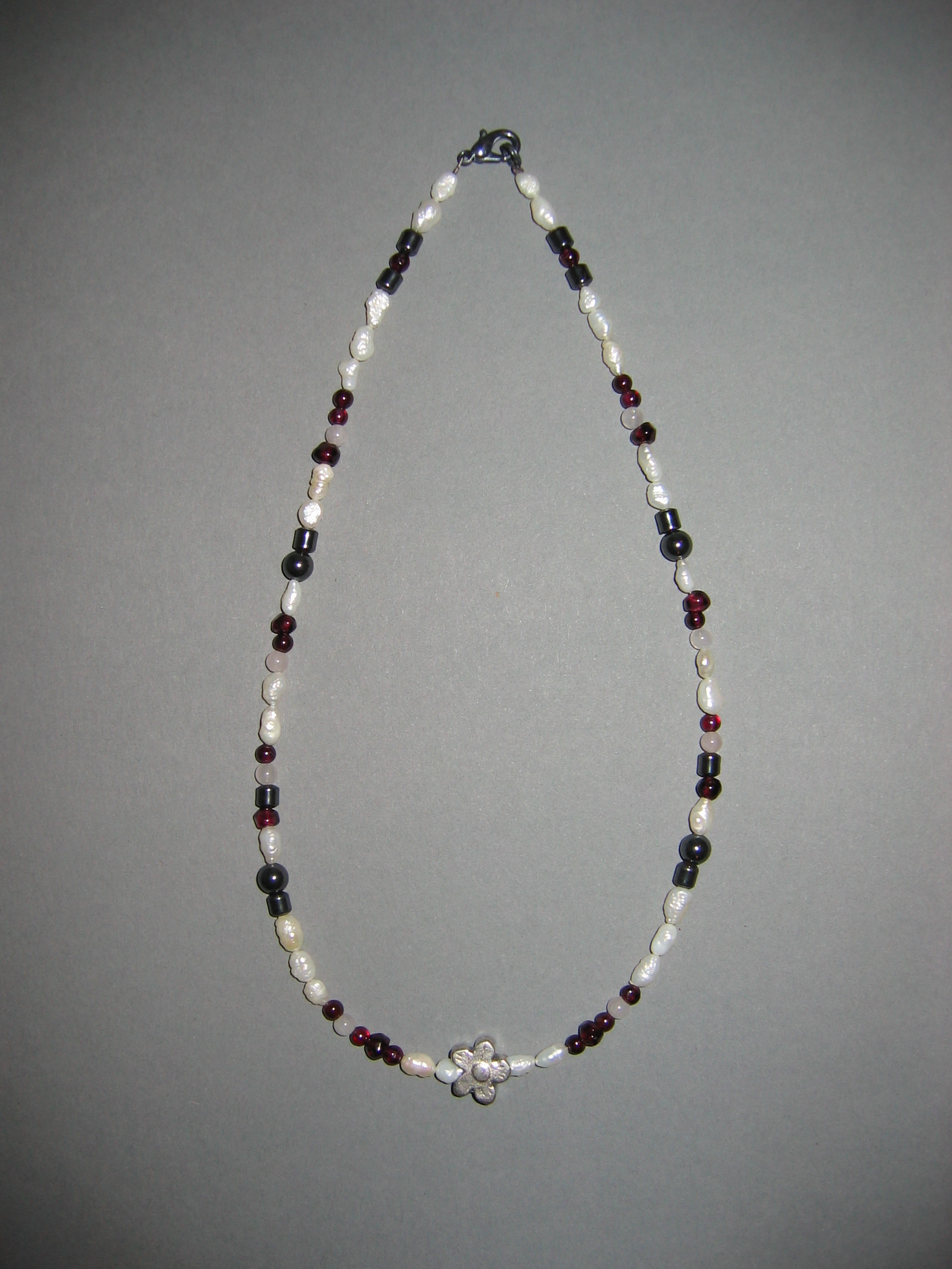 Süßwasserperlen, Granat, Rosenquarz, Hämatit, Metallblume | |