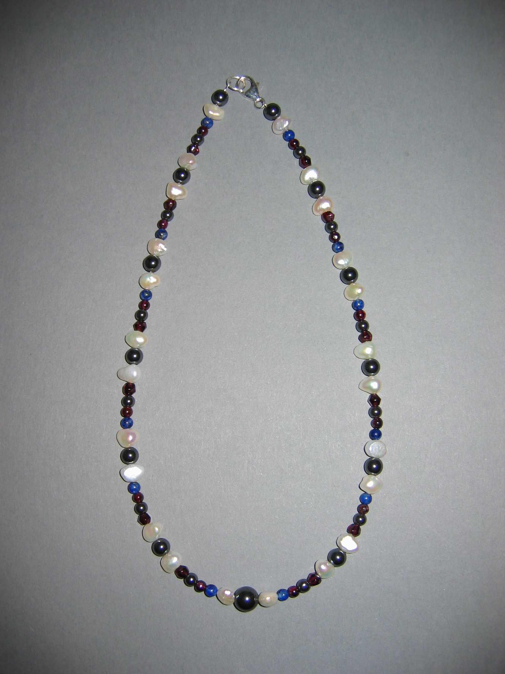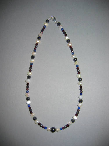 Hämatit, Süßwasserperlen, Granat, Lapislazuli | |