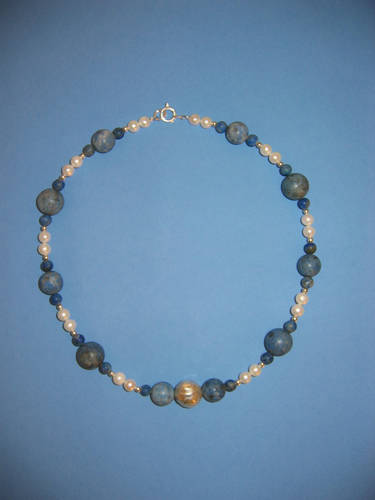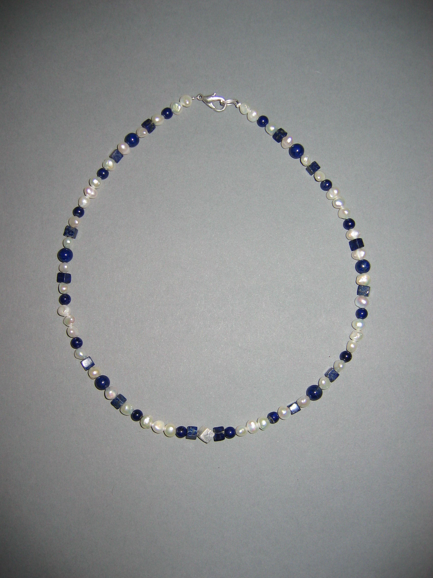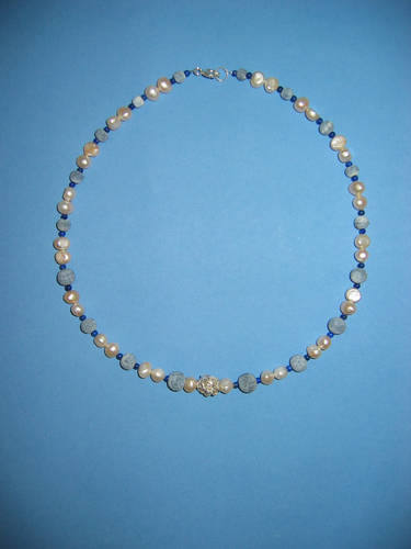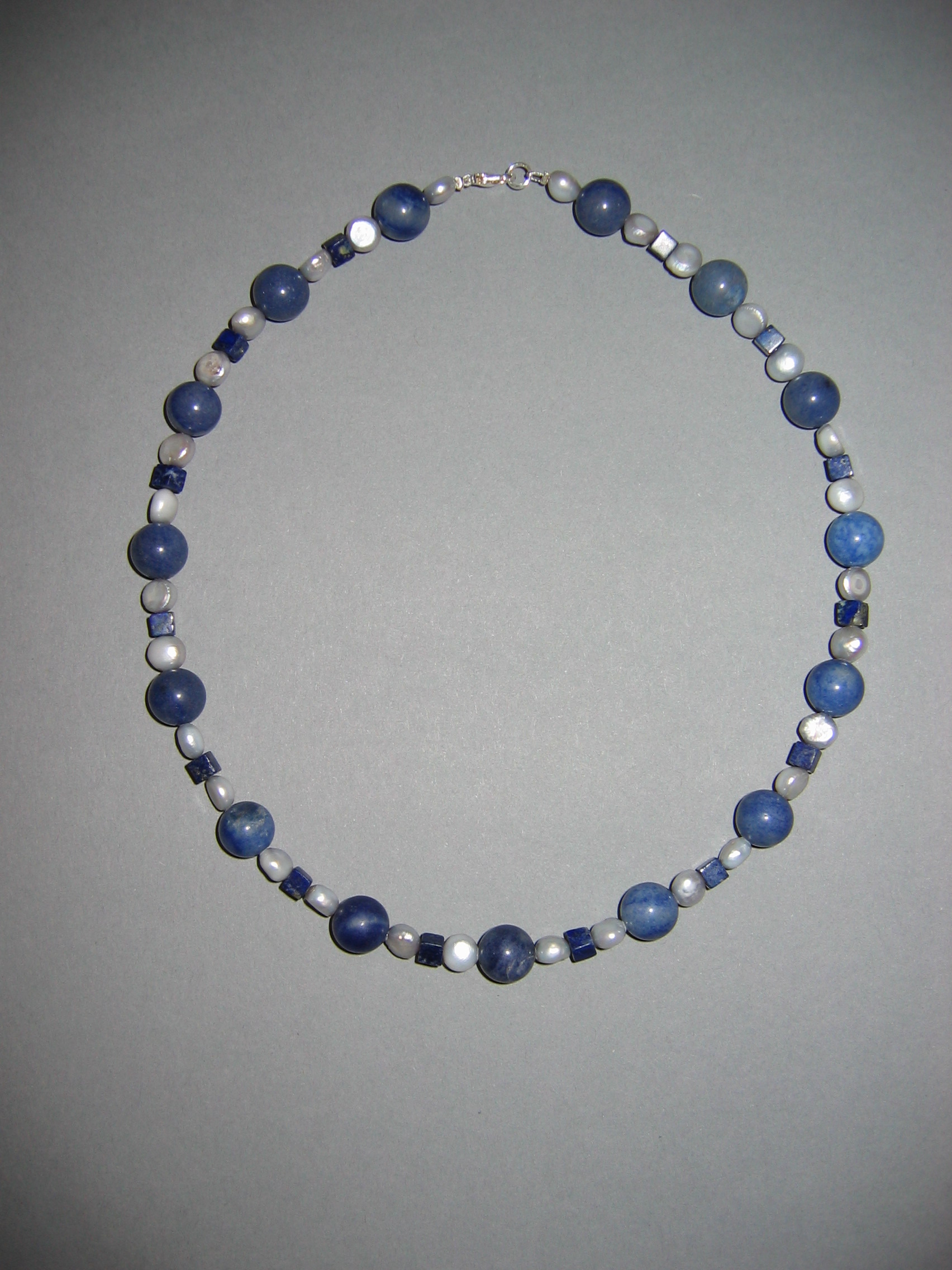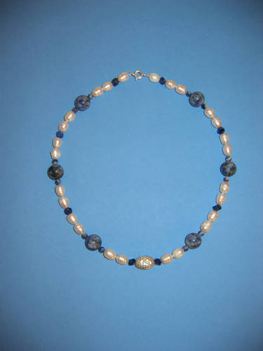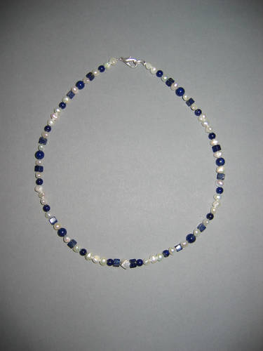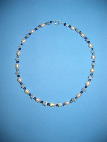 Süßwasserperlen hellgrau, Blauquarz, Lapislazuli | |