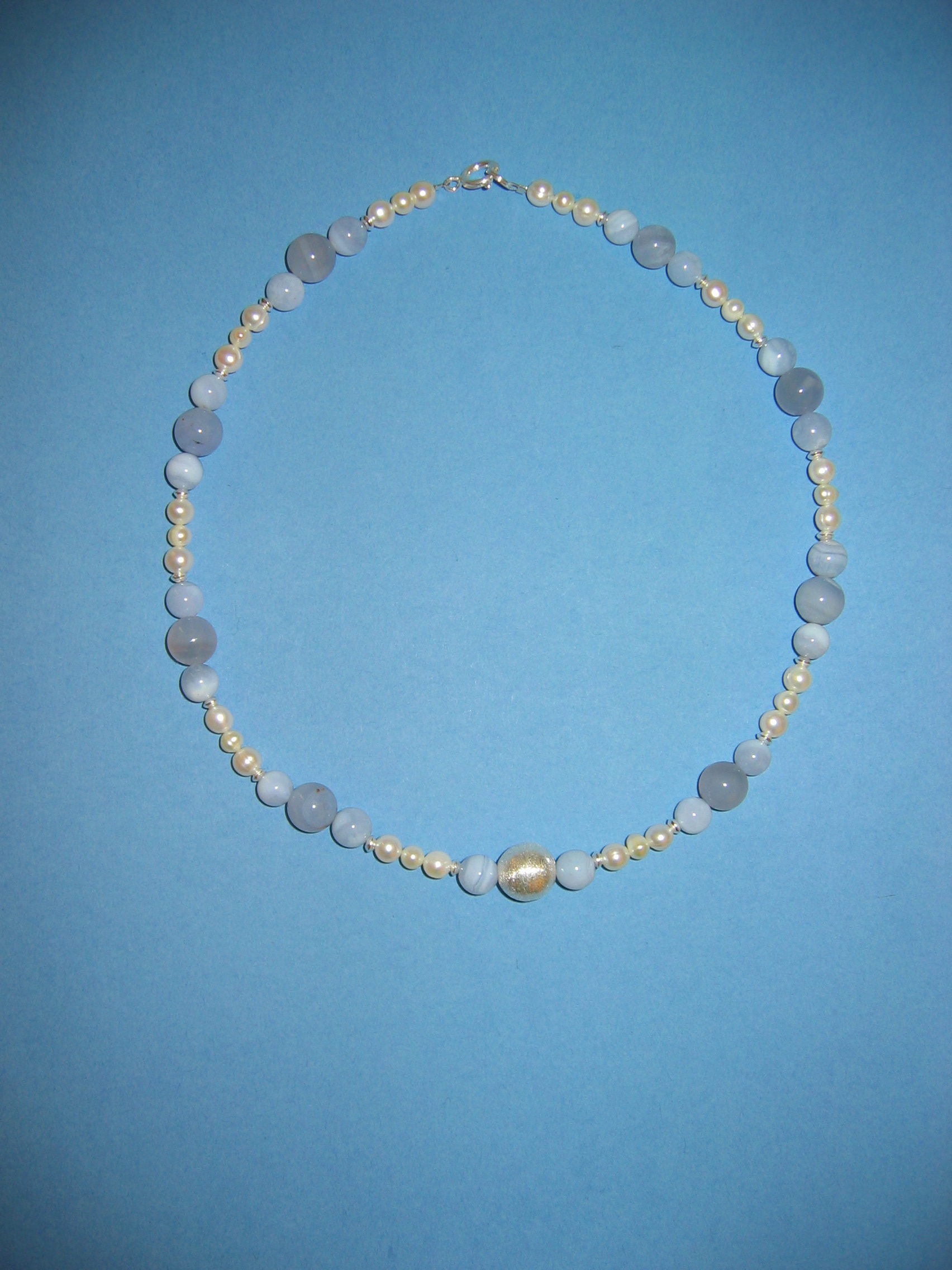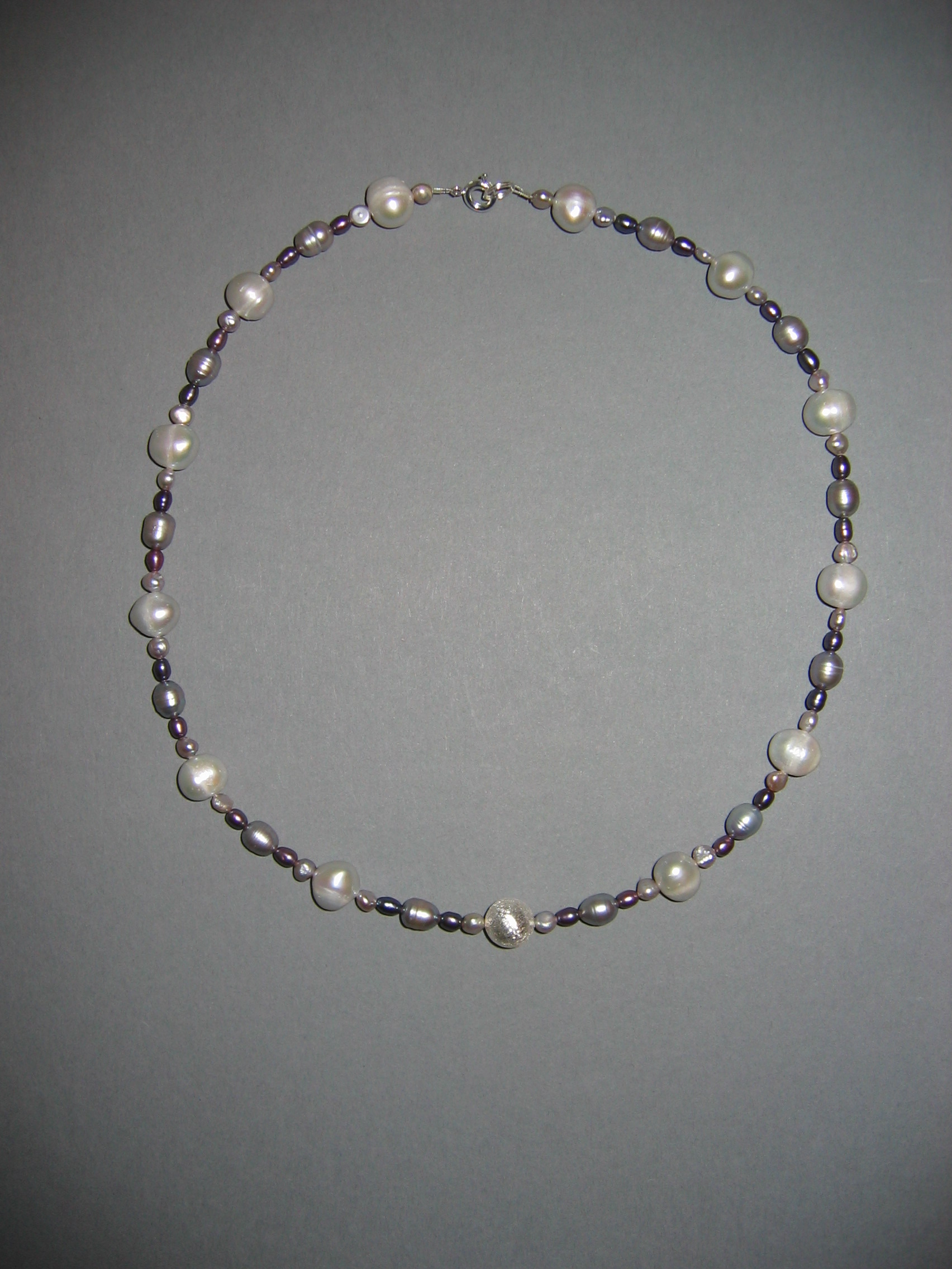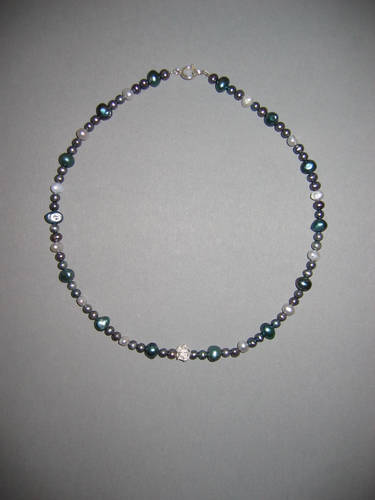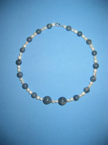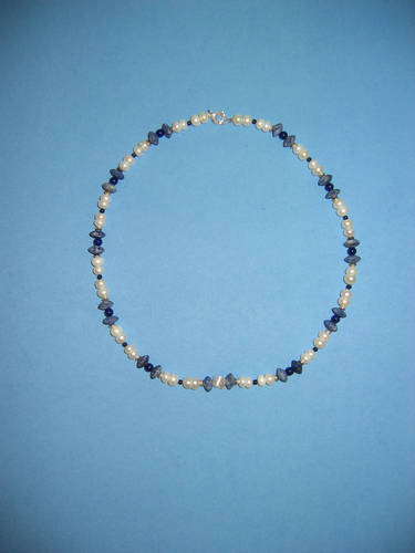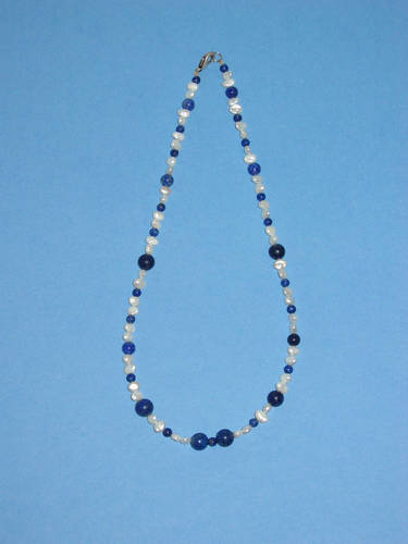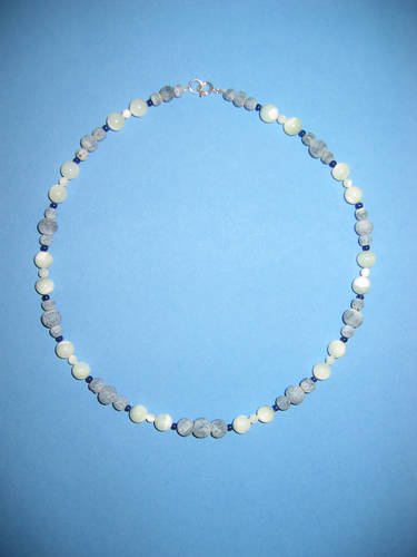 Süßwasserperlen hellgrau, Blauquarz, Lapislazuli | |