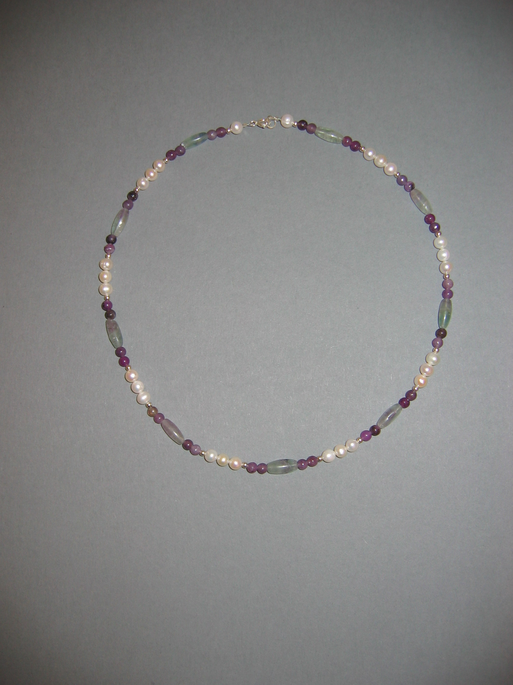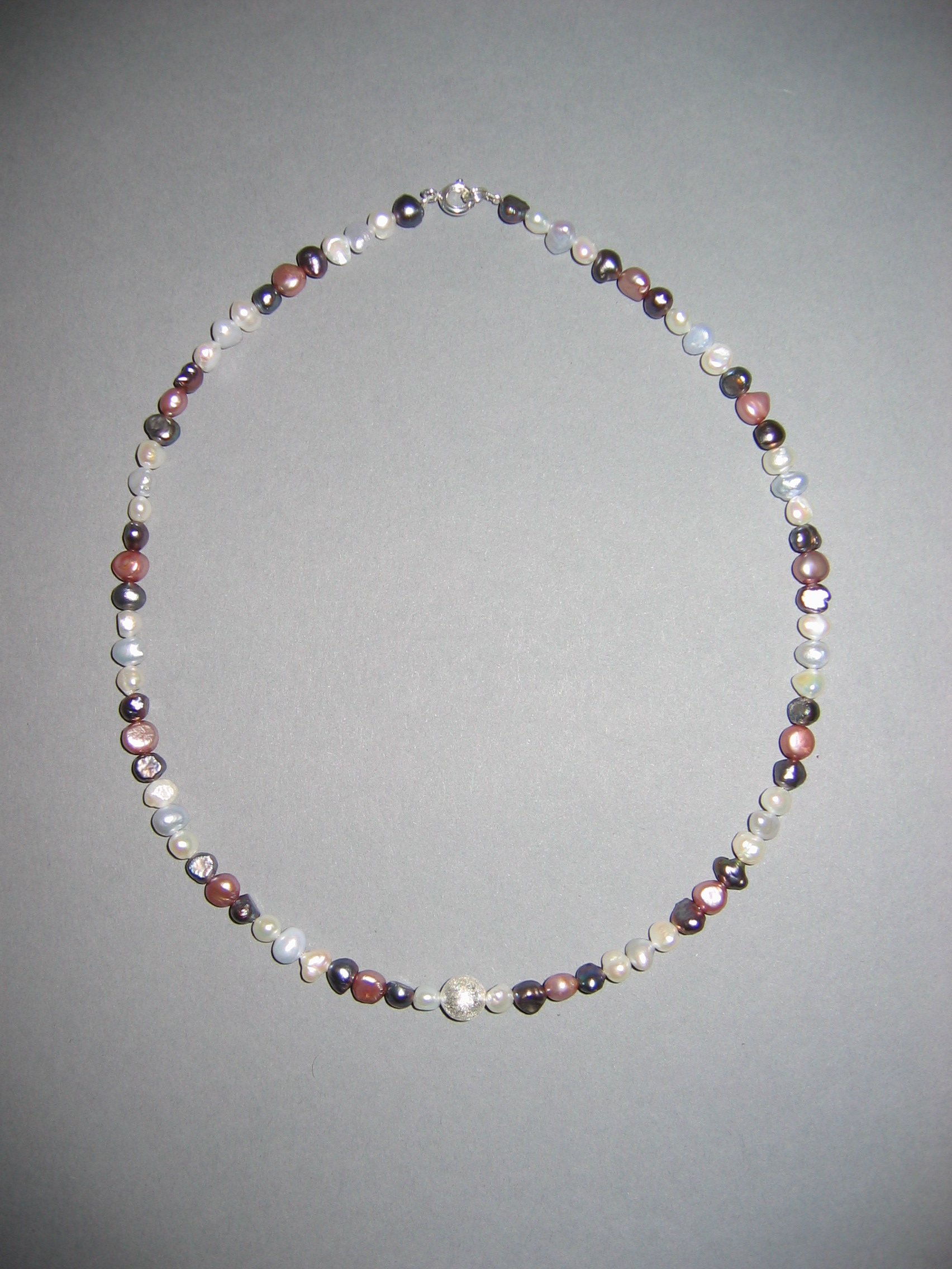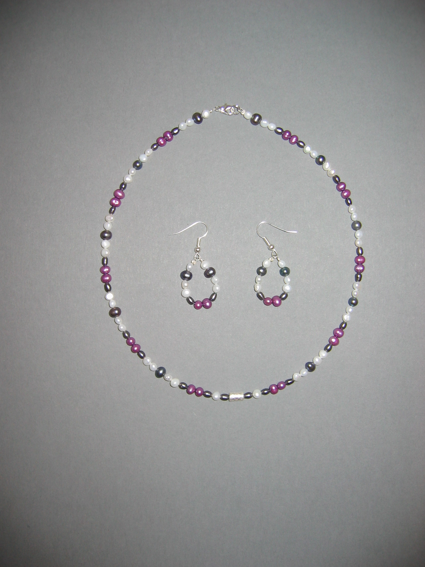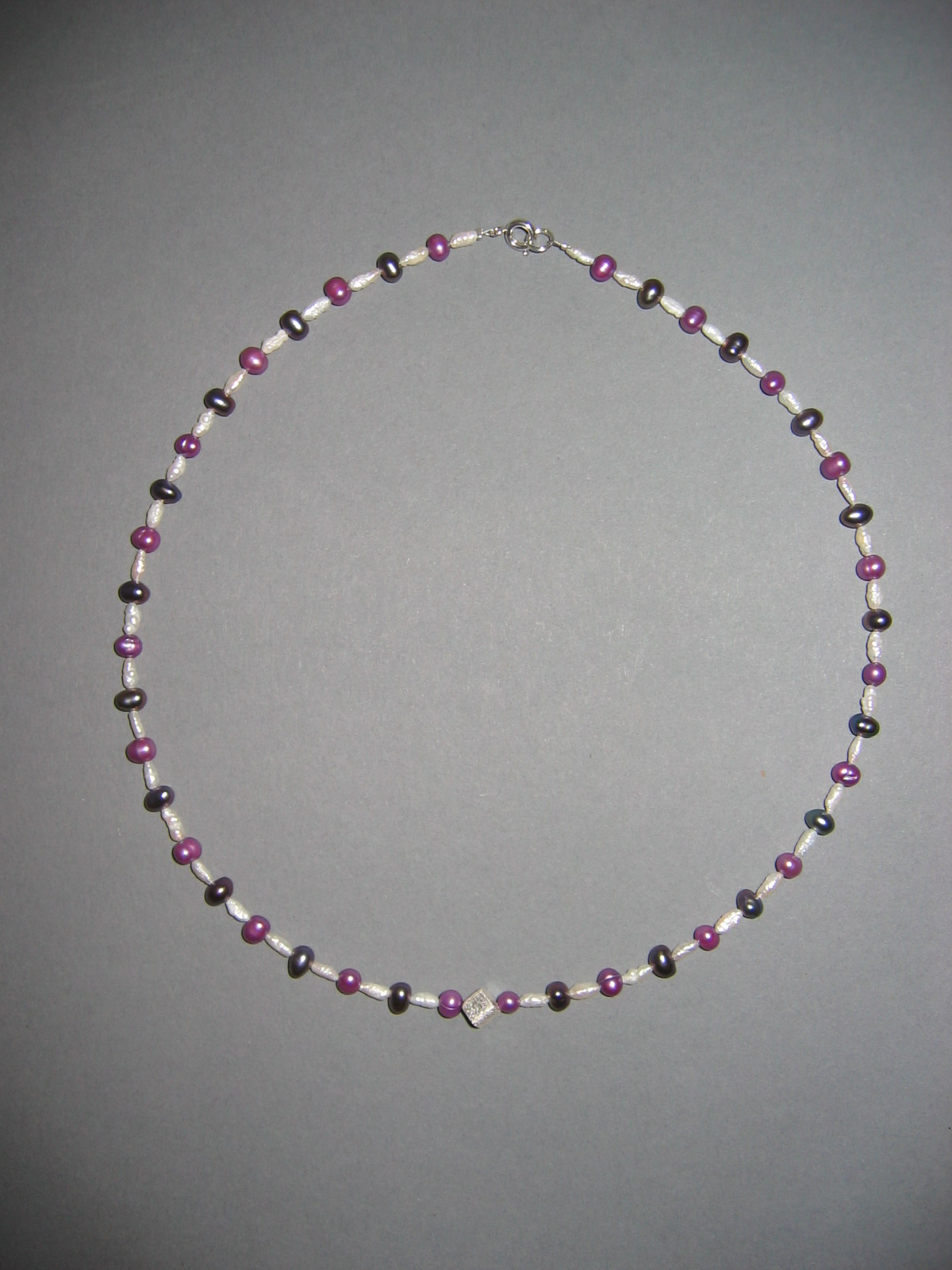 Süßwasserperlen, Goldfluß violett, Silberperle | |