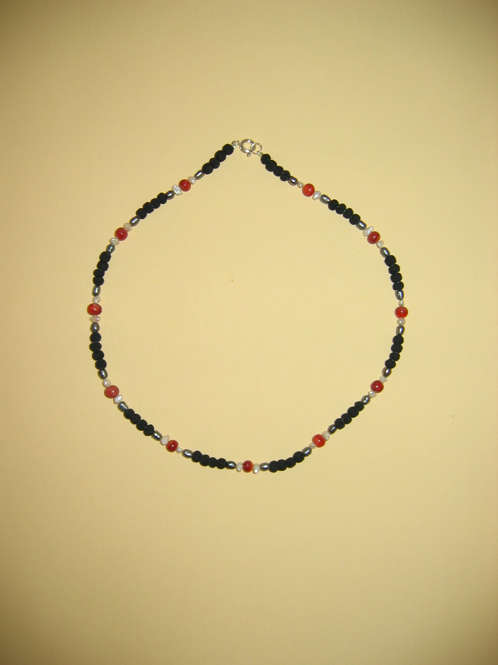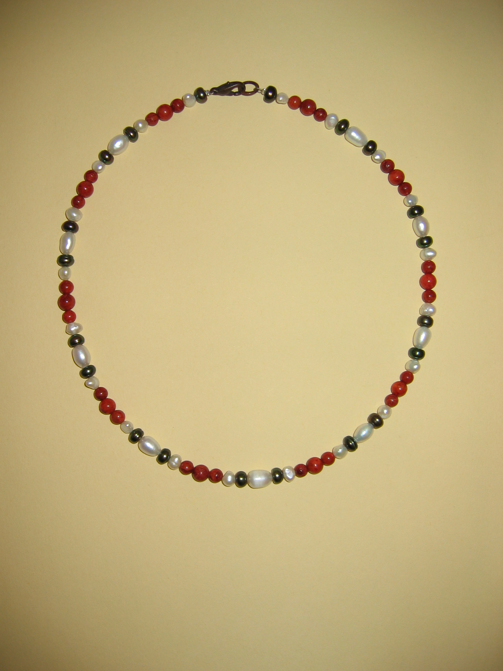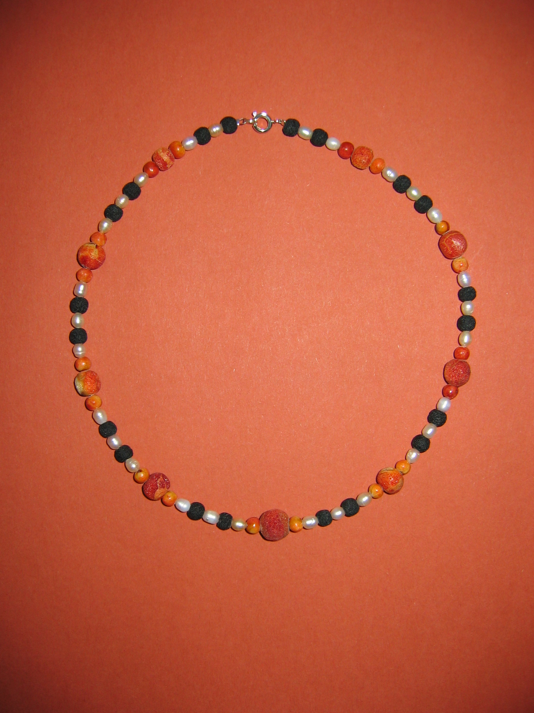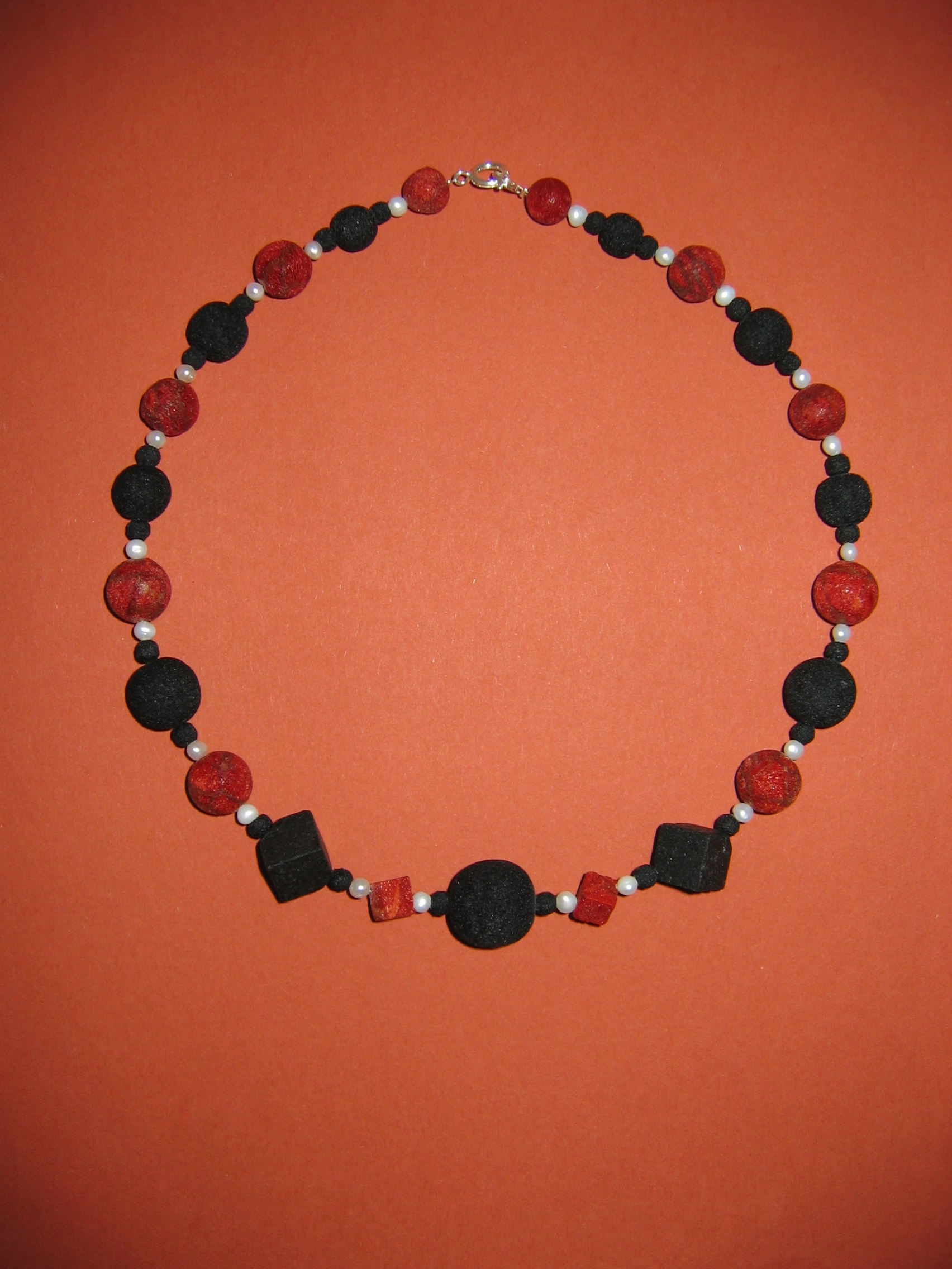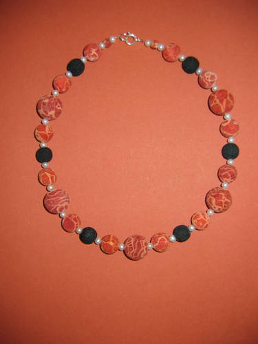 Schaumkoralle rot matt, Lava, Süßwasserperlen | |