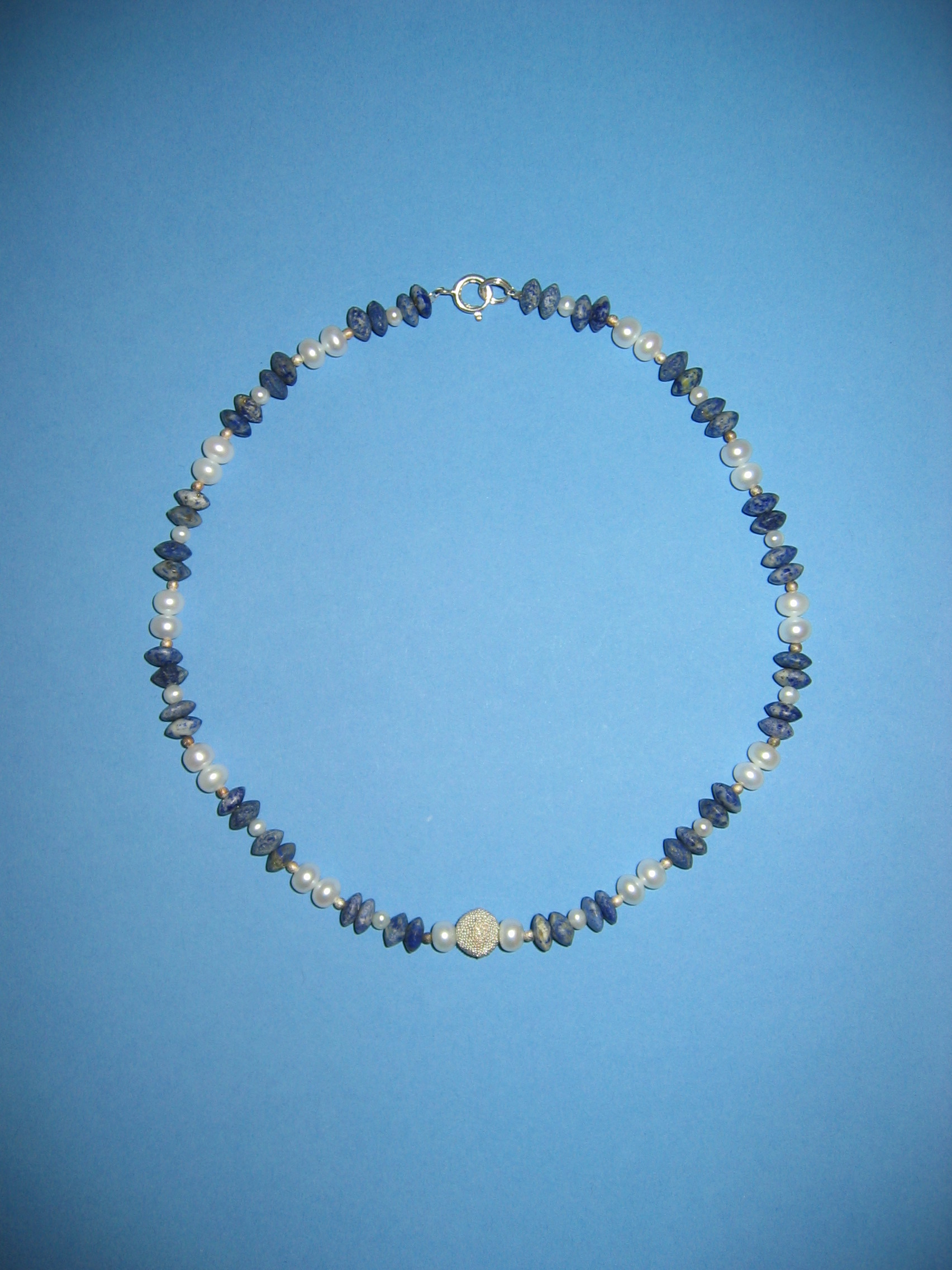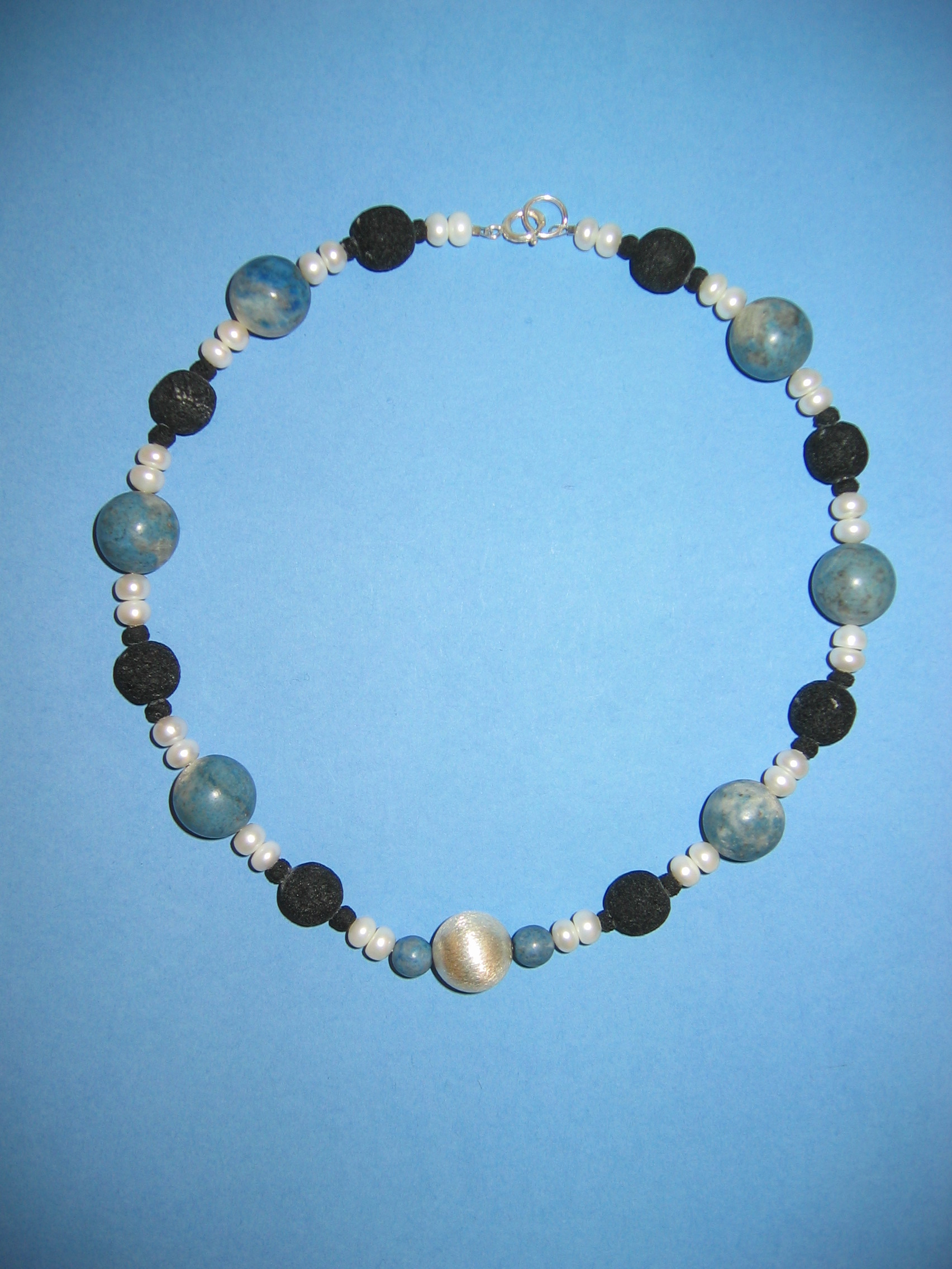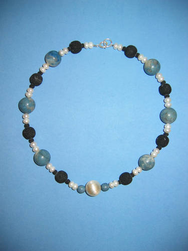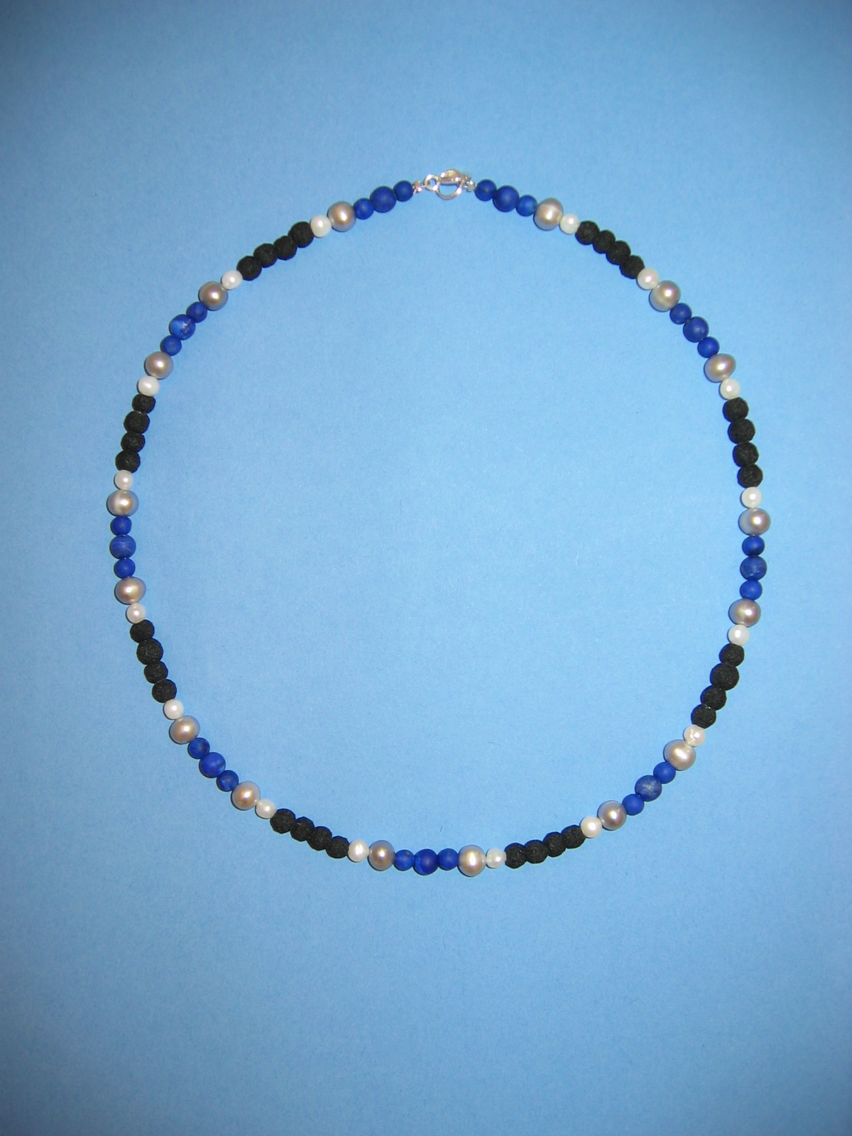 Lapislazuli, Lava, Süßwasserperlen, Silber | |