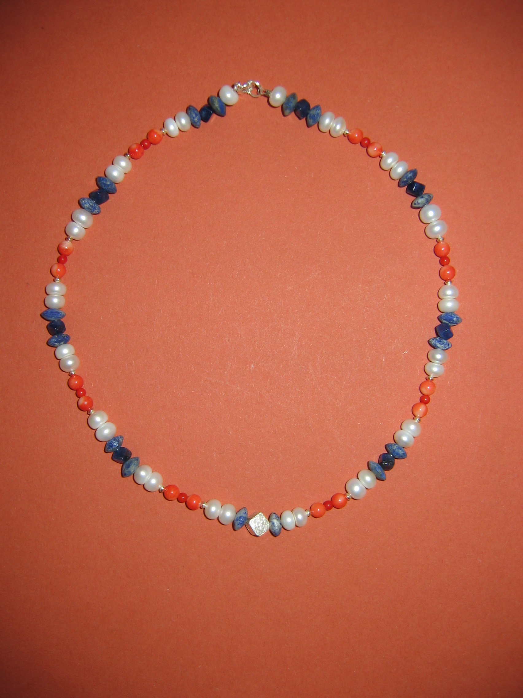 Lapislazuli, Koralle, Süßwasserperlen, Silber | |