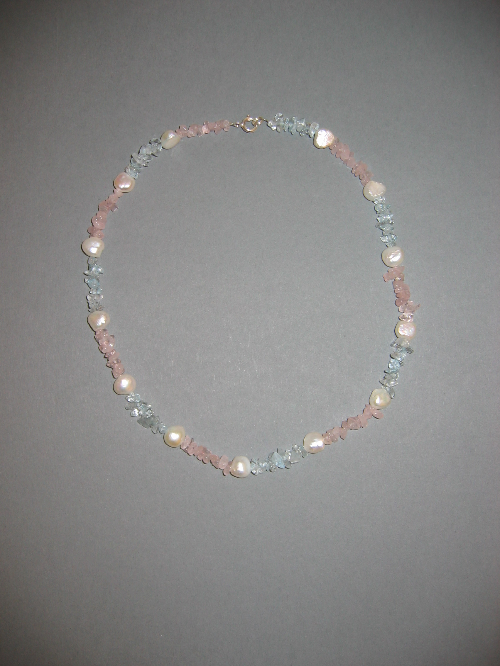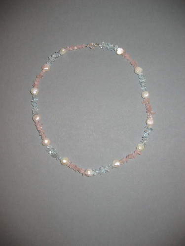 Aquamarin, Rosenquarz, Süßwasserperlen | |