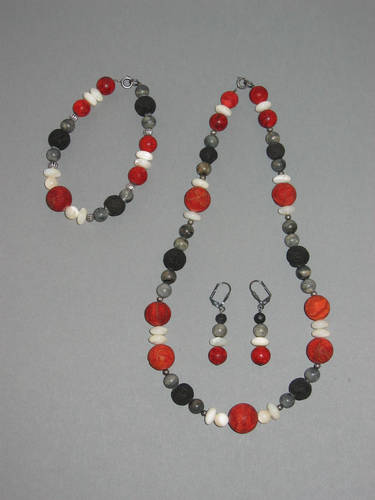 Lava, Howlith, Süßwasserperlen | |
