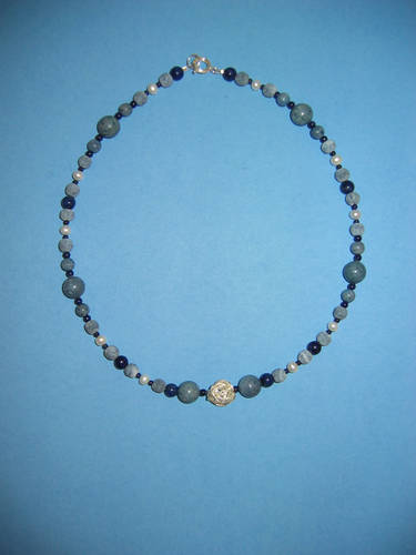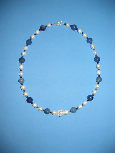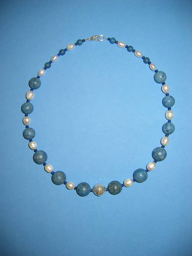 Süßwasserperlen, Blauquarz, Aventurin grün, Silber | |